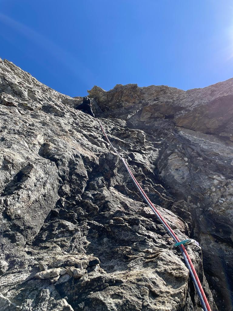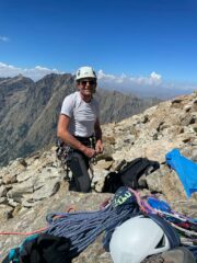 Con Elvio siamo partiti presto anche per evitare il caldo. Nella parte inferiore trovati più spit del previsto. La parte superiore ci ha impegnato parecchio e dalla sosta in comune abbiamo proseguito sulla Campia che comunque ha poco da invidiare. Usciti dalla via, Elvio in 45′ è andato e tornato dalla cima. Scesi con tre doppie alla cengia mediana abbiamo condiviso l’ultima parte di discesa con la cordata italo-cilena composta da Martino e Fernanda. Ottimo trattamento al rifugio Bozano dotato di WI-FI. Il gestore Marco è proprio bravo come dicono.Personalmente preferirei camerate più ampie,in compenso ho trovato straordinaria la prima parte di sentiero lastricato che conduce in direzione delle vie inferiori,un lavoro di lusso.