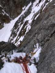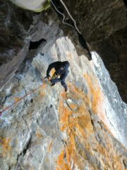 RItorno dopo 9 anni sul Diedro Rosso. Condizioni molto buone per la salita invernale con poca neve. Lourousa molto secco ma innevato con alcuni tratti in ghiaccio vivo. Riguardo al Diedro se avete modo di procurarvi un 7 non è una cattiva idea. Sul tiro prima del tetto c’è un tampone in meno. Il passaggio è sempre stato obbligato e pericoloso ma adesso senza il 7 è assolutamente vietato volare. Sul tetto ci sono solo due tamponi e due chiodi di cui uno non proprio bellissimo. Noi avevamo solo 2 friend del 6 e risultano sempre molto aperti. Consiglierei quindi una serie da 0,3 a 7 con 1-2 doppi. Chiodi solo per emergenze. Soste in ordine e sempre ben rinforzabili. Con Alice.