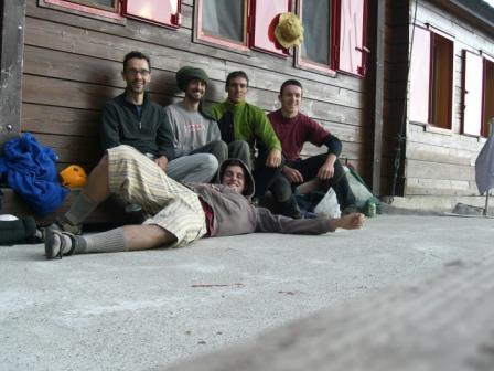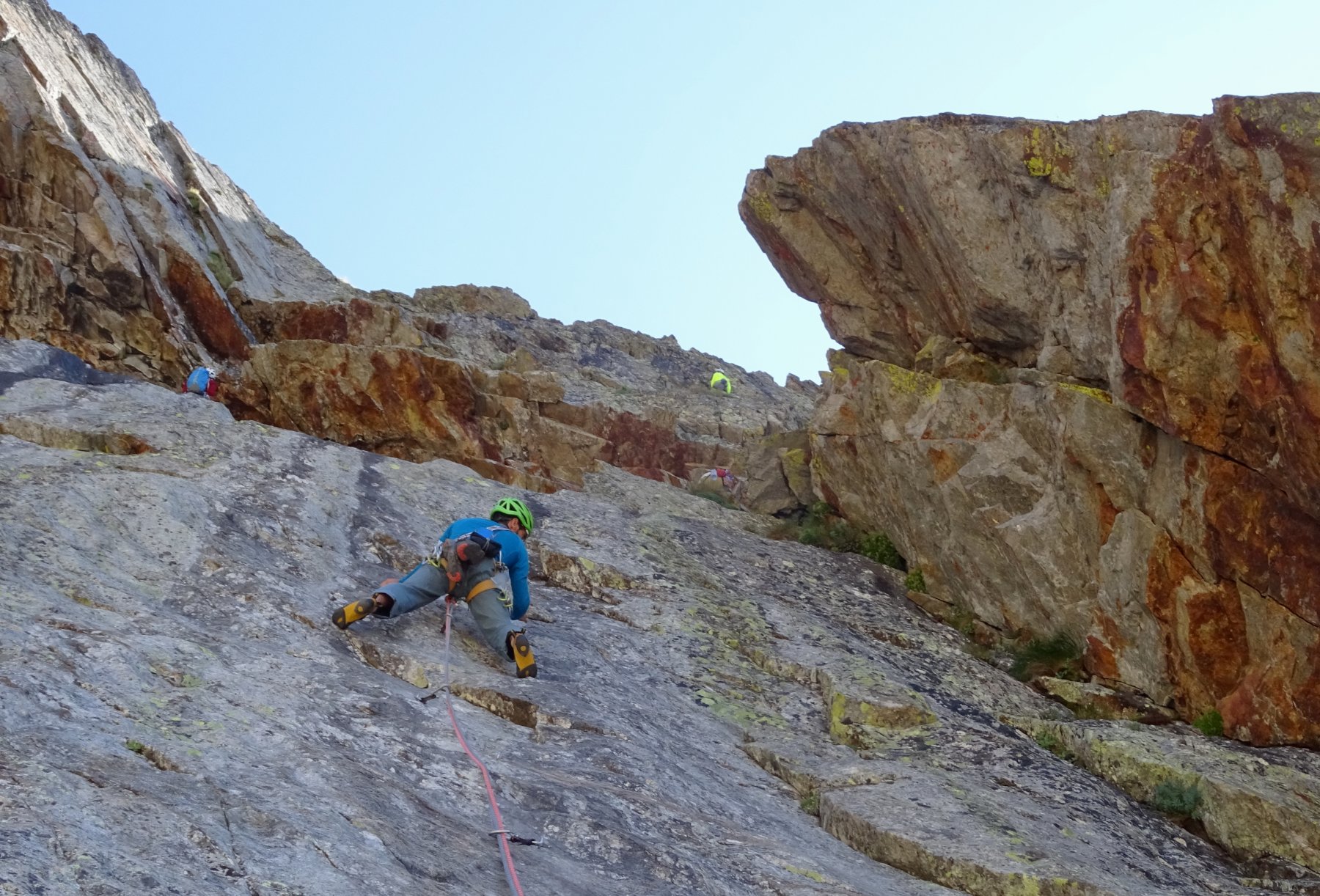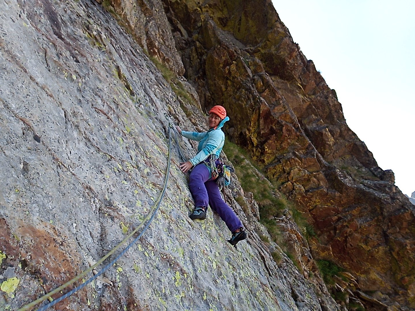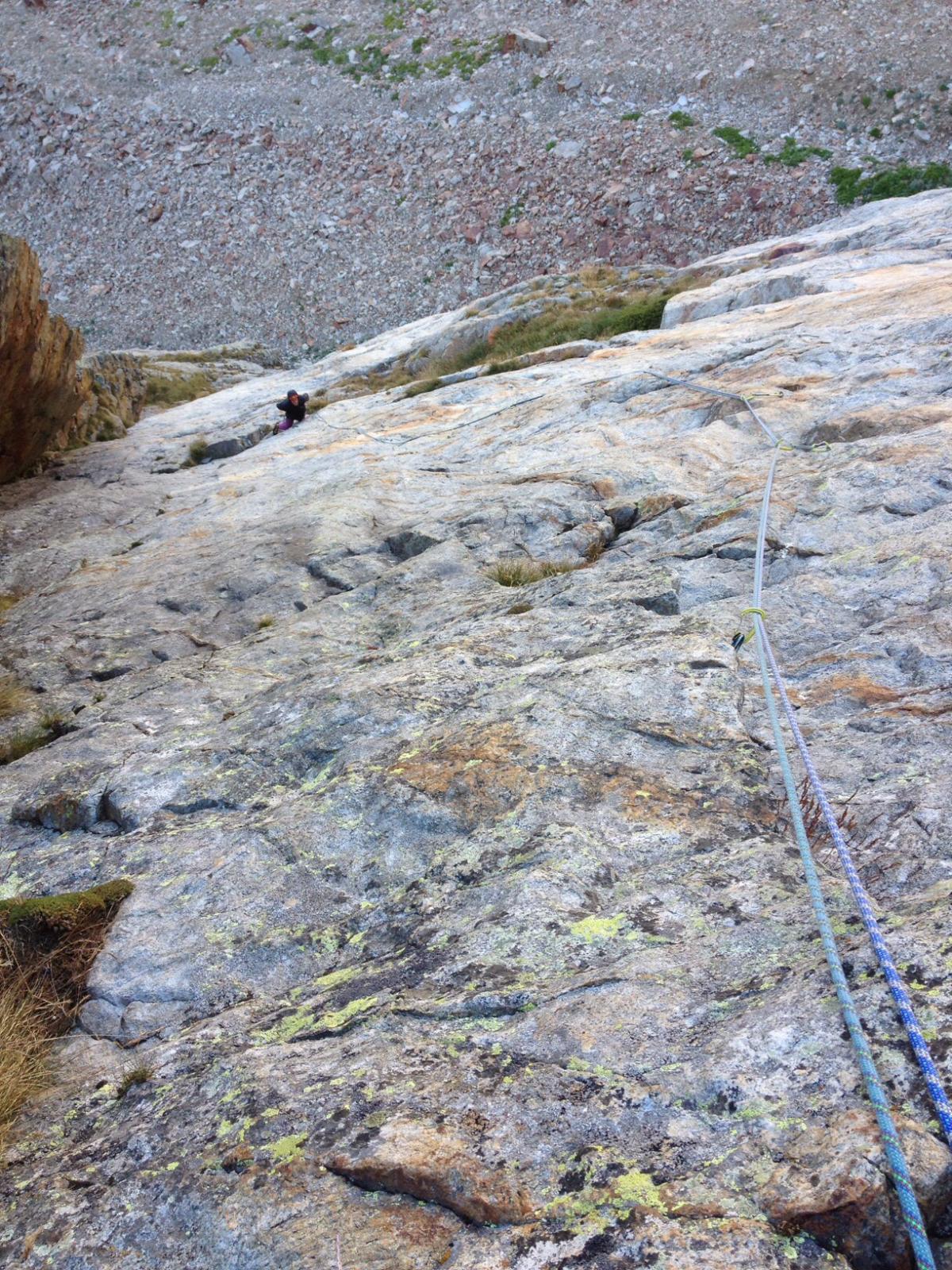 In doppia sulla via, o seguendo la cengia mediana del Corno Stella.