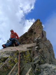 7. Proseguire sul filo della cresta III, fino alla vetta del Corno (meglio fare sosta), da cui per facile cresta in leggera discesa raggiungere la croce.