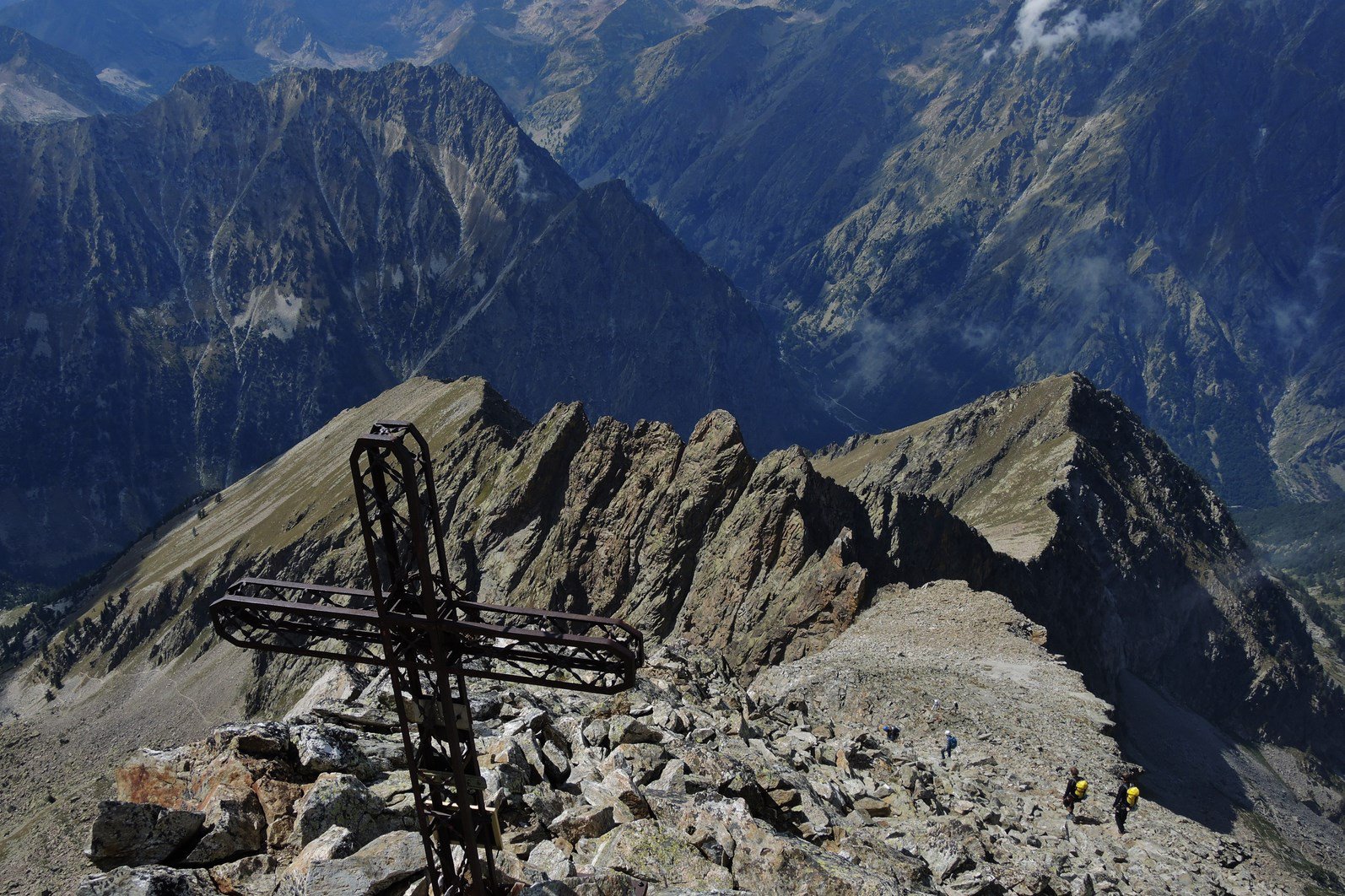 In 10 minuti si raggiunge la croce del Corno Stella. La vera vetta si raggiunge proseguendo brevemente su una crestina molto aerea (II).