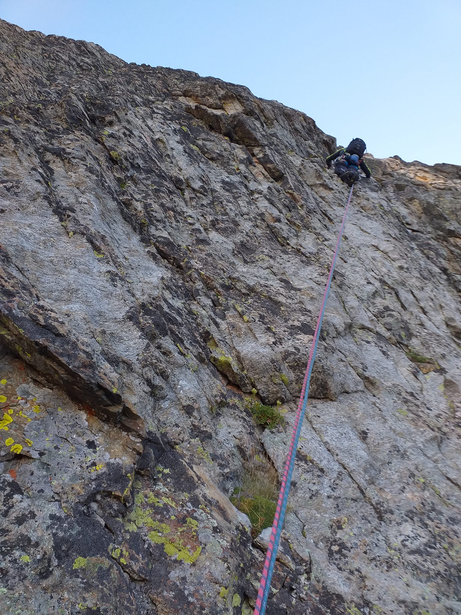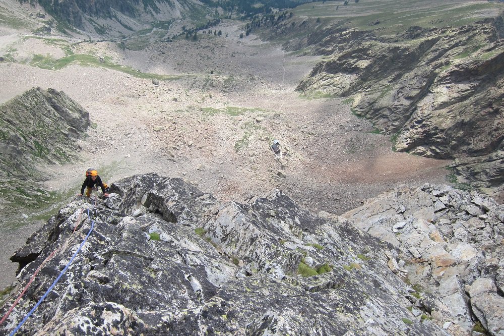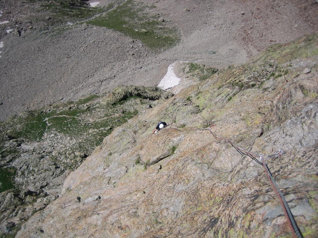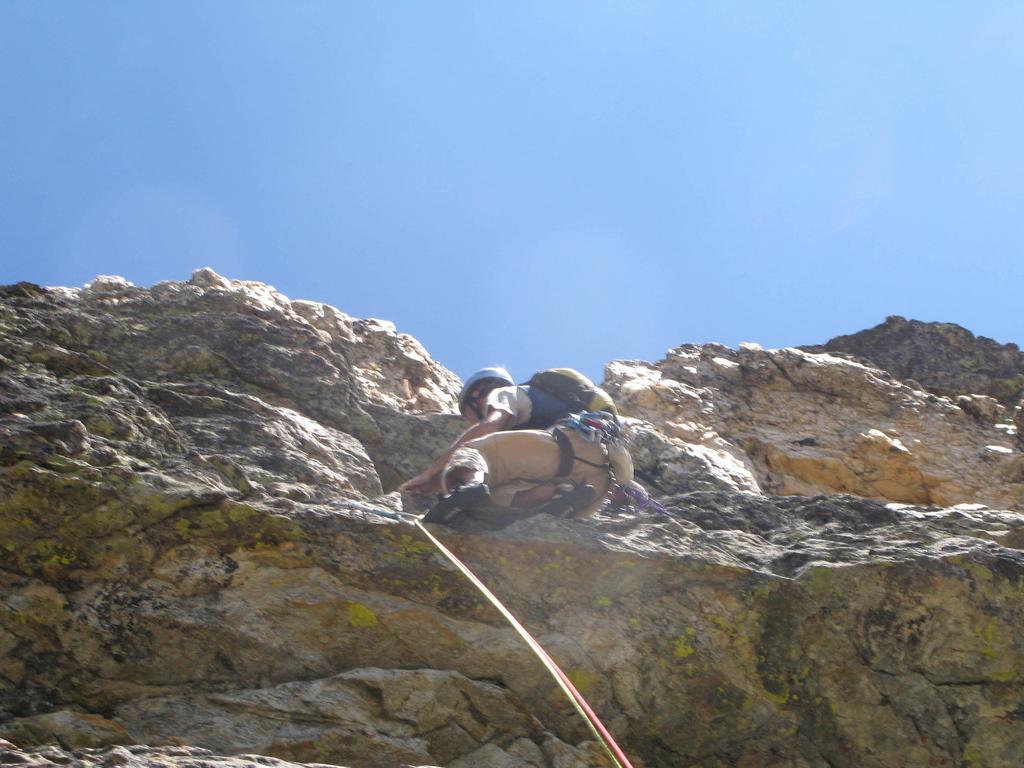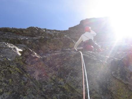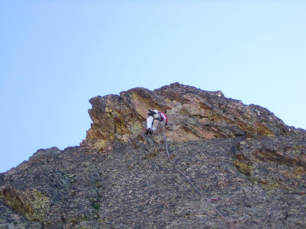 L7: si risale un pilastrino (6a), quindi si giunge sulla cresta sommitale.