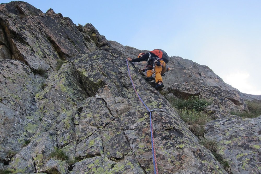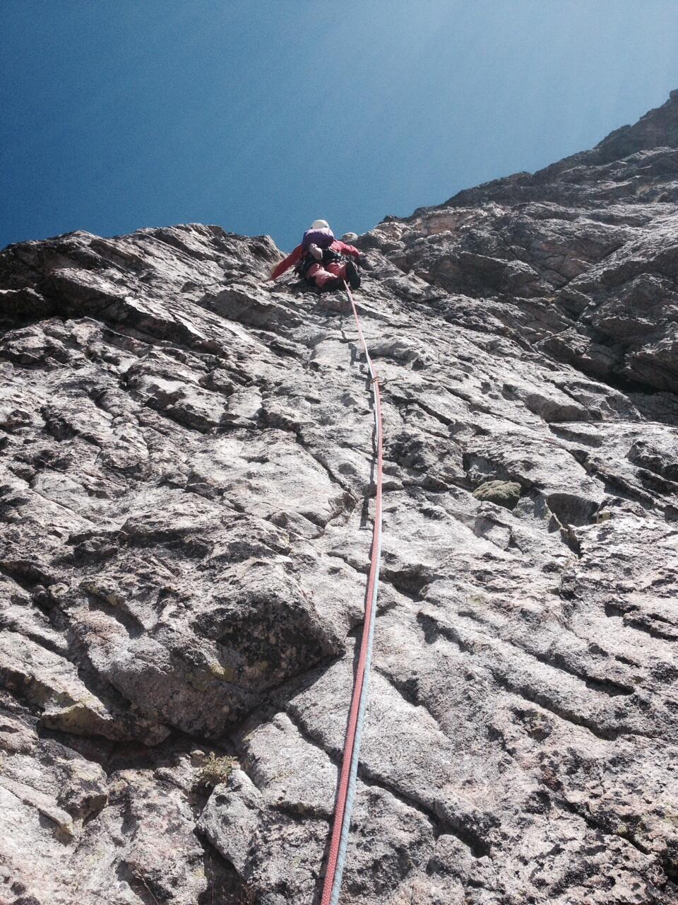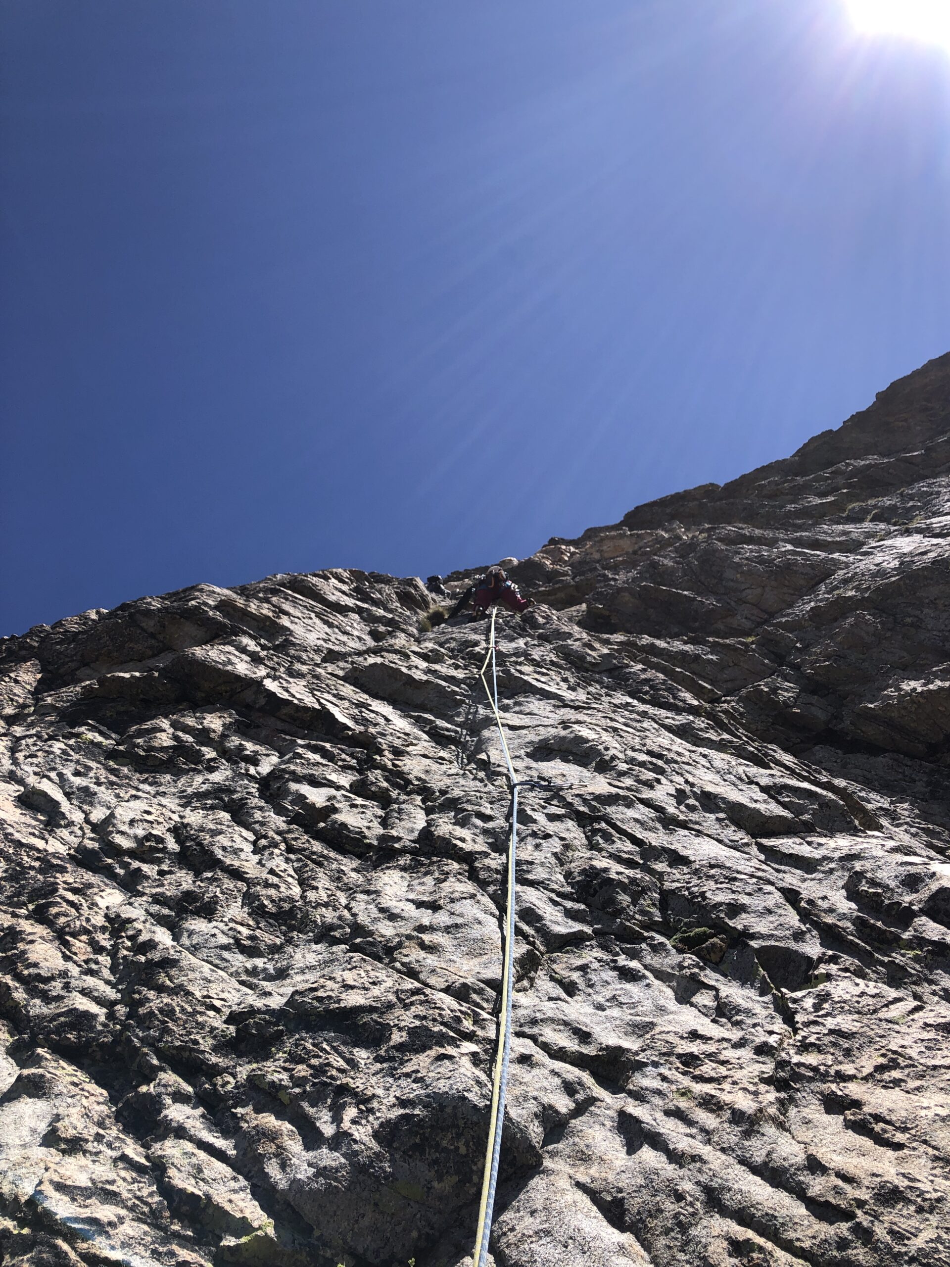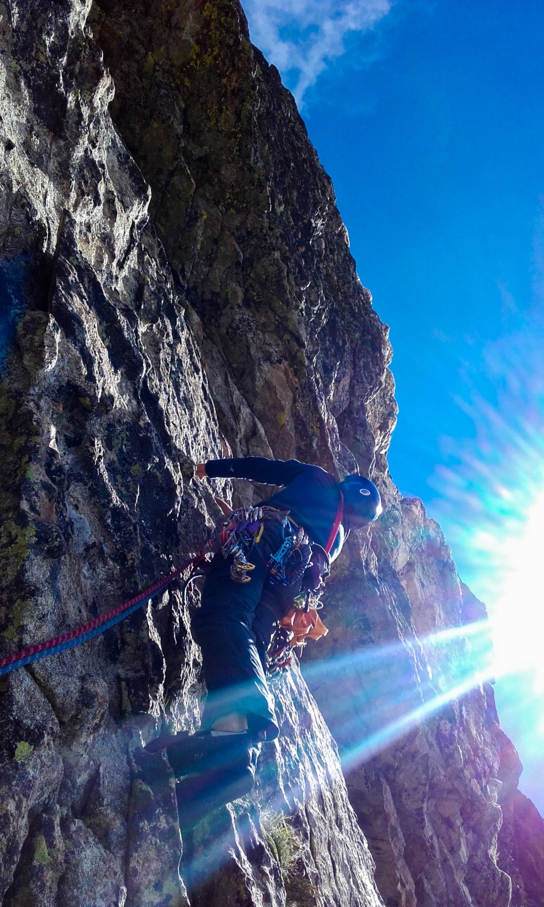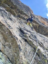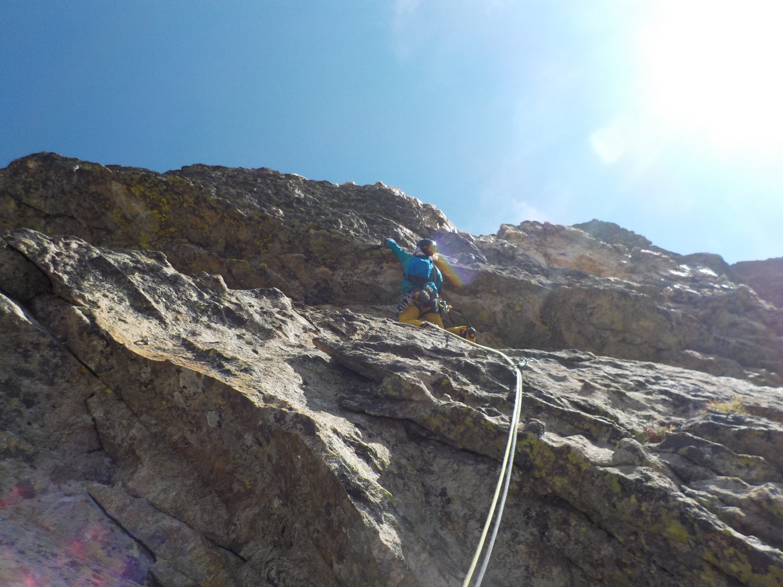 L7: si risale un pilastrino (6a), quindi si giunge sulla cresta sommitale.