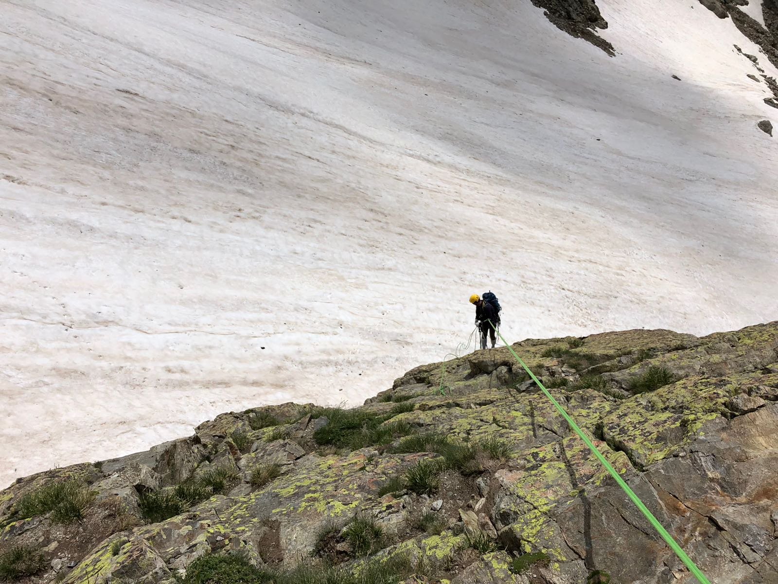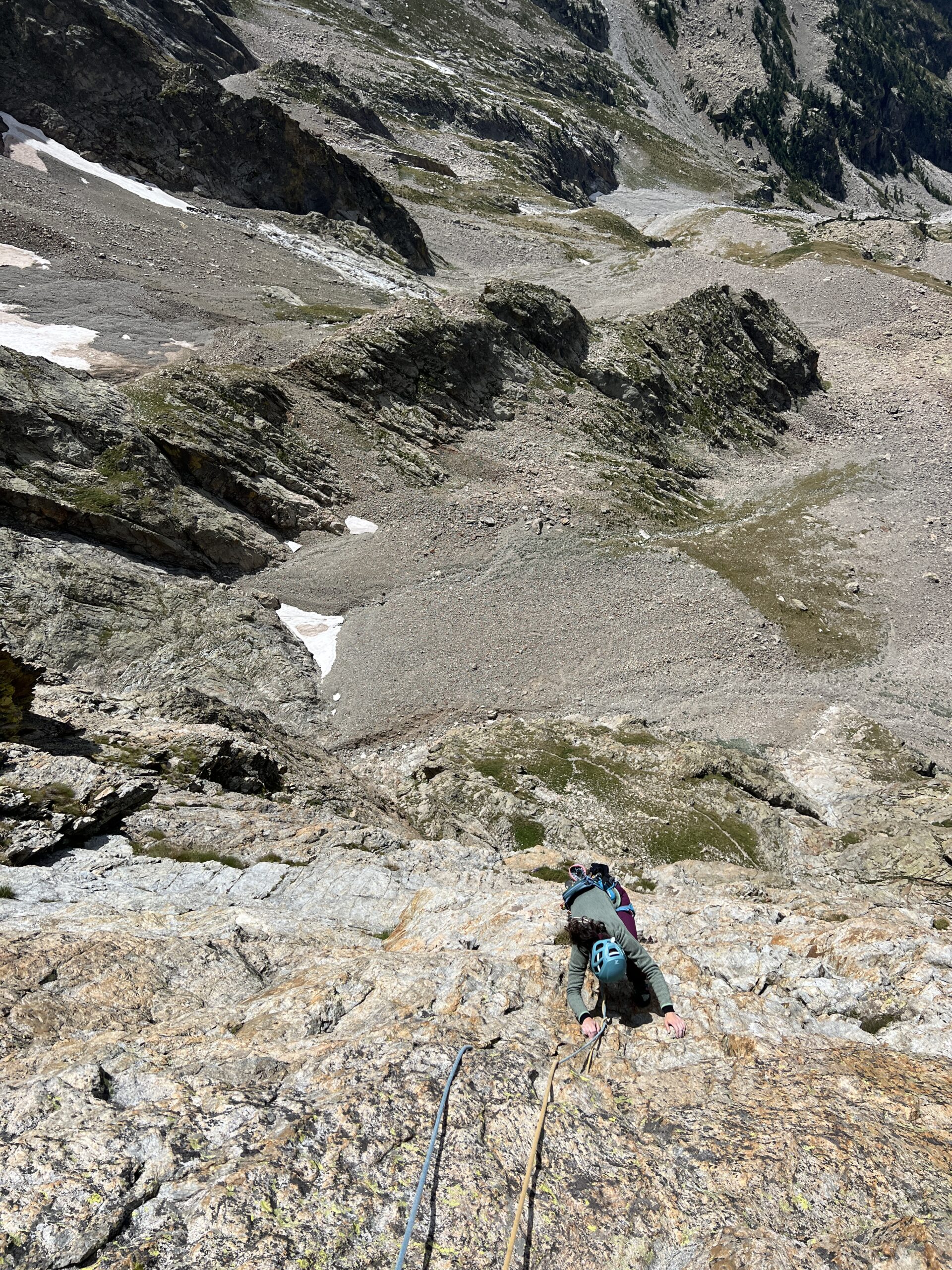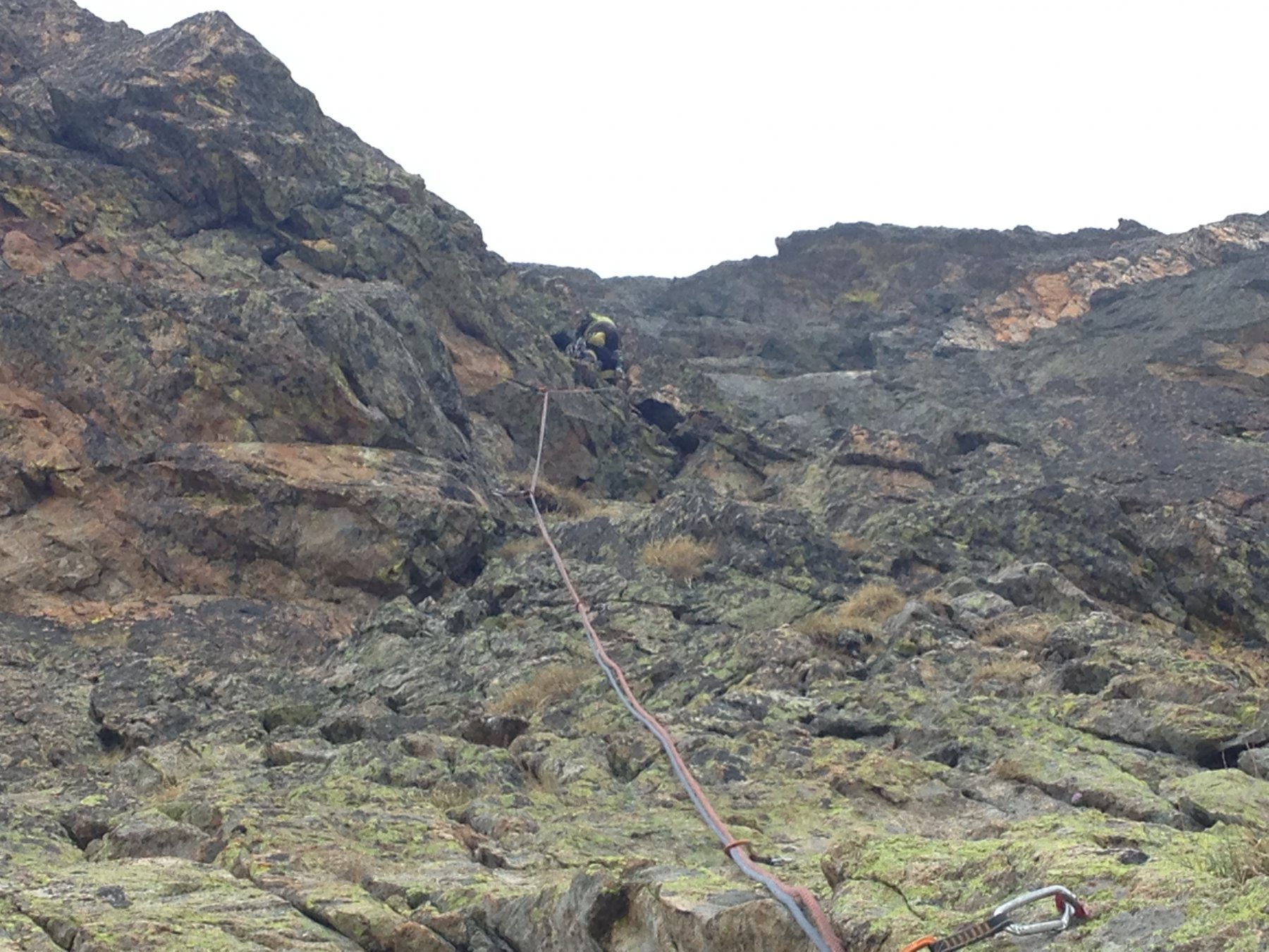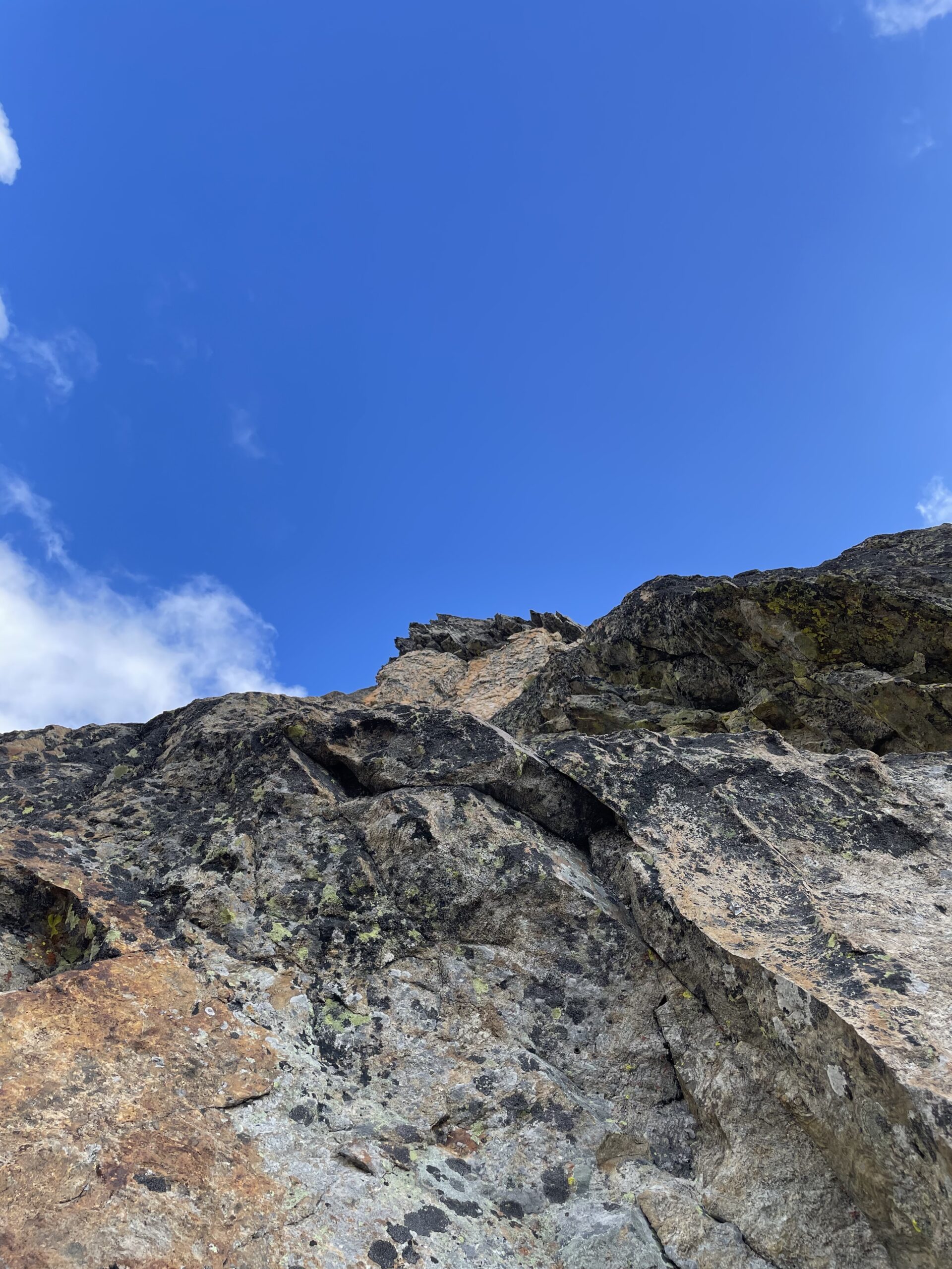 L7: si risale un pilastrino (6a), quindi si giunge sulla cresta sommitale.