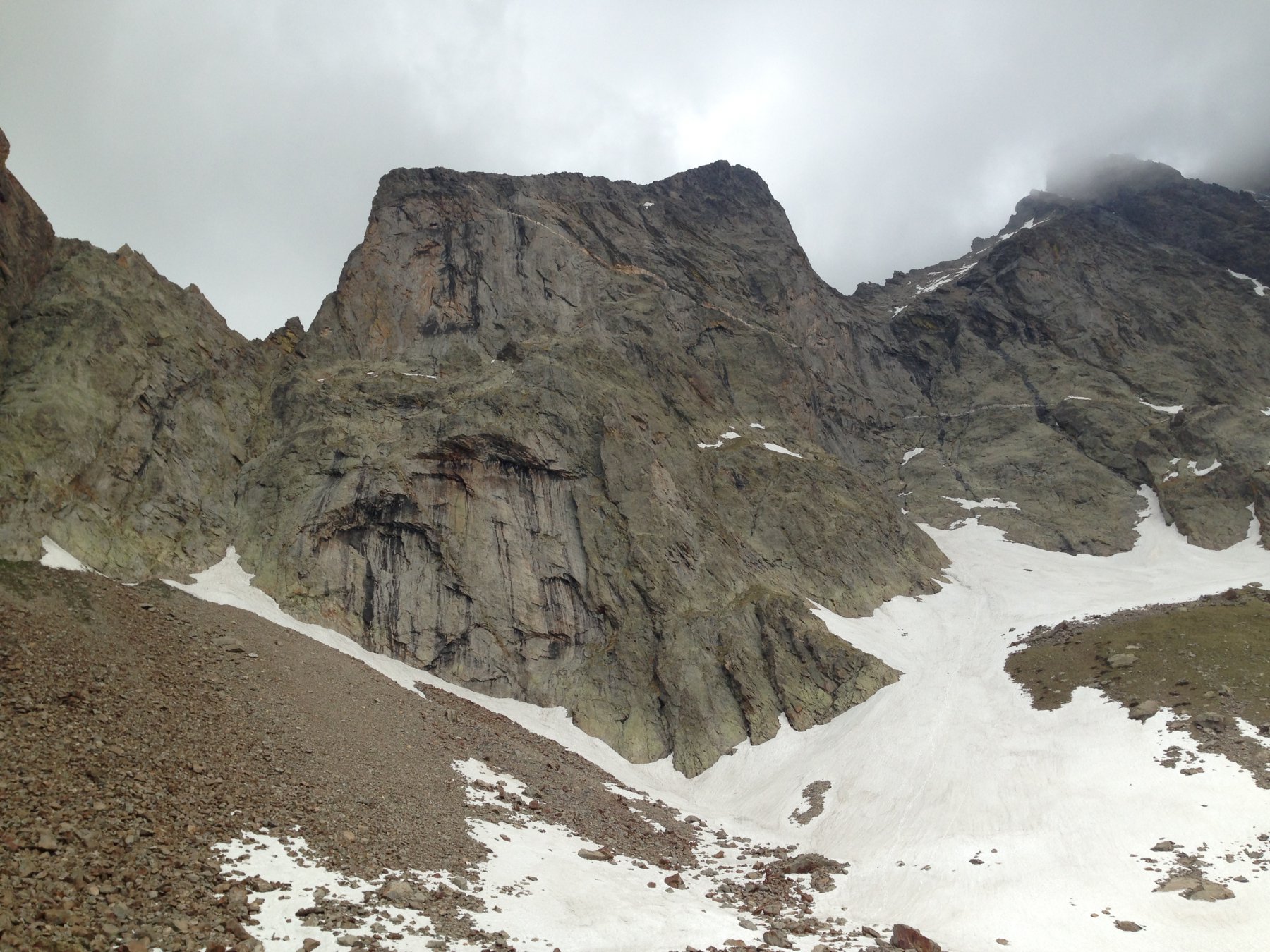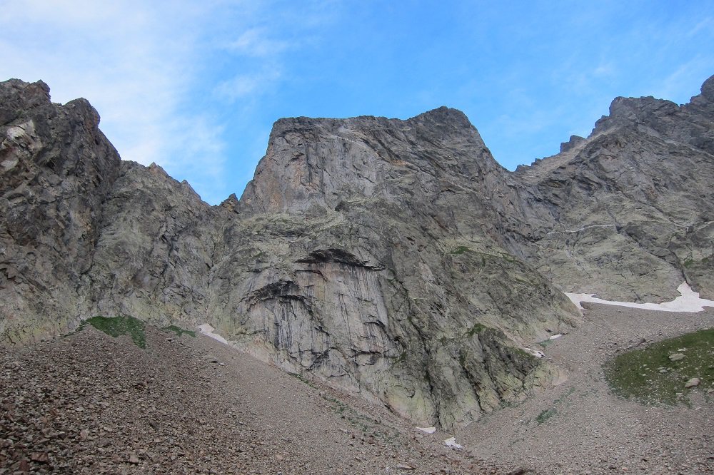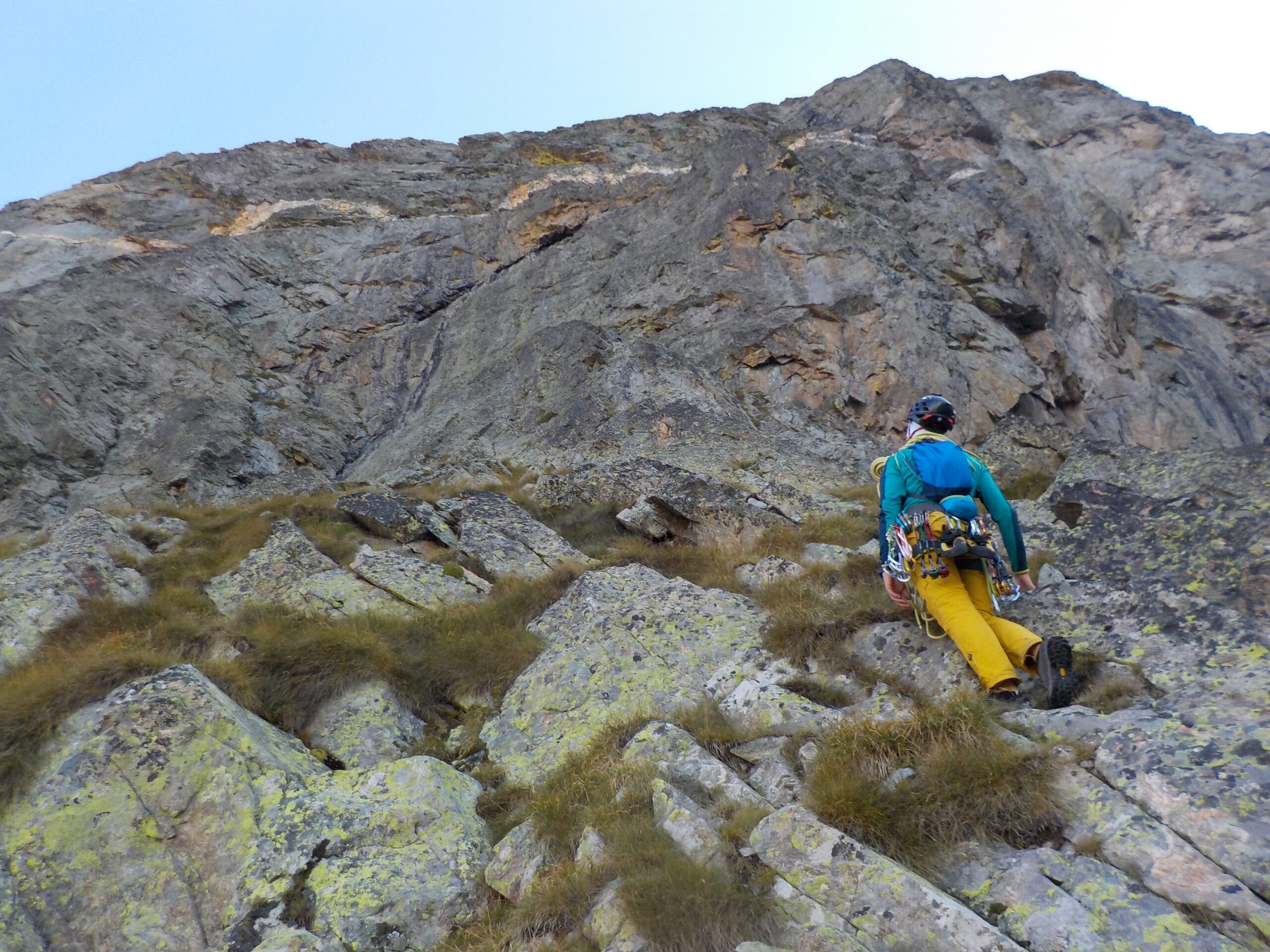 L3: placca e fessure, leggermente verso sinistra (6a, 45 m).