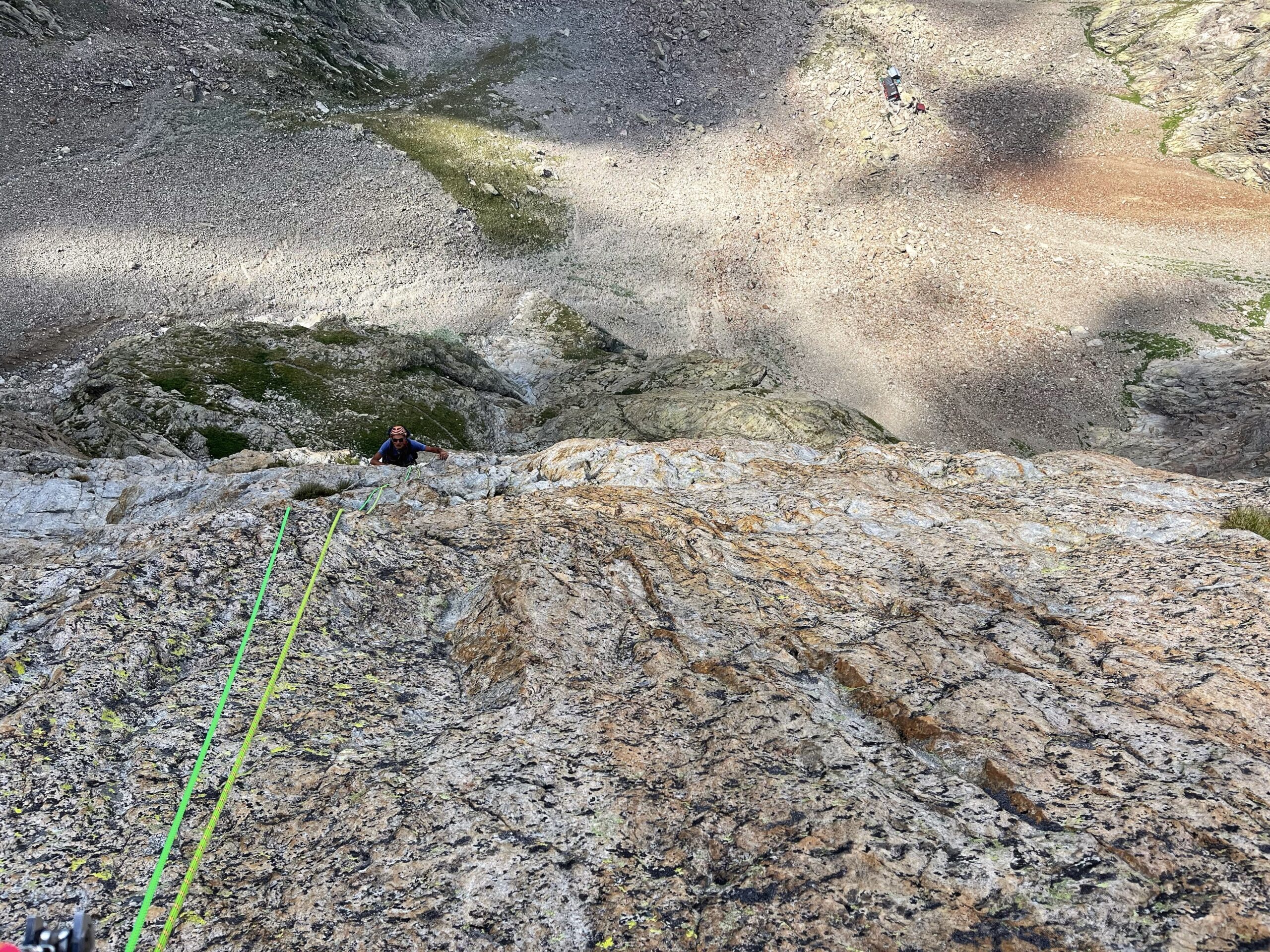 Posto e roccia mondiale! La via segue una linea davvero superba su una parete che non ha bisogno di presentazioni. Non vi sono tiri banali e per potersi divertire è richiesta una buona padronanza del grado. La chiodatura è allegra, ma con spit ben posizionati nei punti giusti. Le soste sono su due spit sempre da collegare. A mio giudizio sul passaggio di L4 (tettino sulla vena di quarzo) può starci un singolo di 6a+. Sugli altri tiri invece gradazioni sempre ok. Lungo tutta la via è difficile riuscire ad integrare; noi abbiamo utilizzato solo il friend 0.75 una volta su L3 e l’altra su L4, pertanto consiglio di portare solo 1/2 friends medio piccoli nel caso se ne avesse realmente bisogno. Rinvii ne bastano 8 di cui un paio meglio se lunghi.