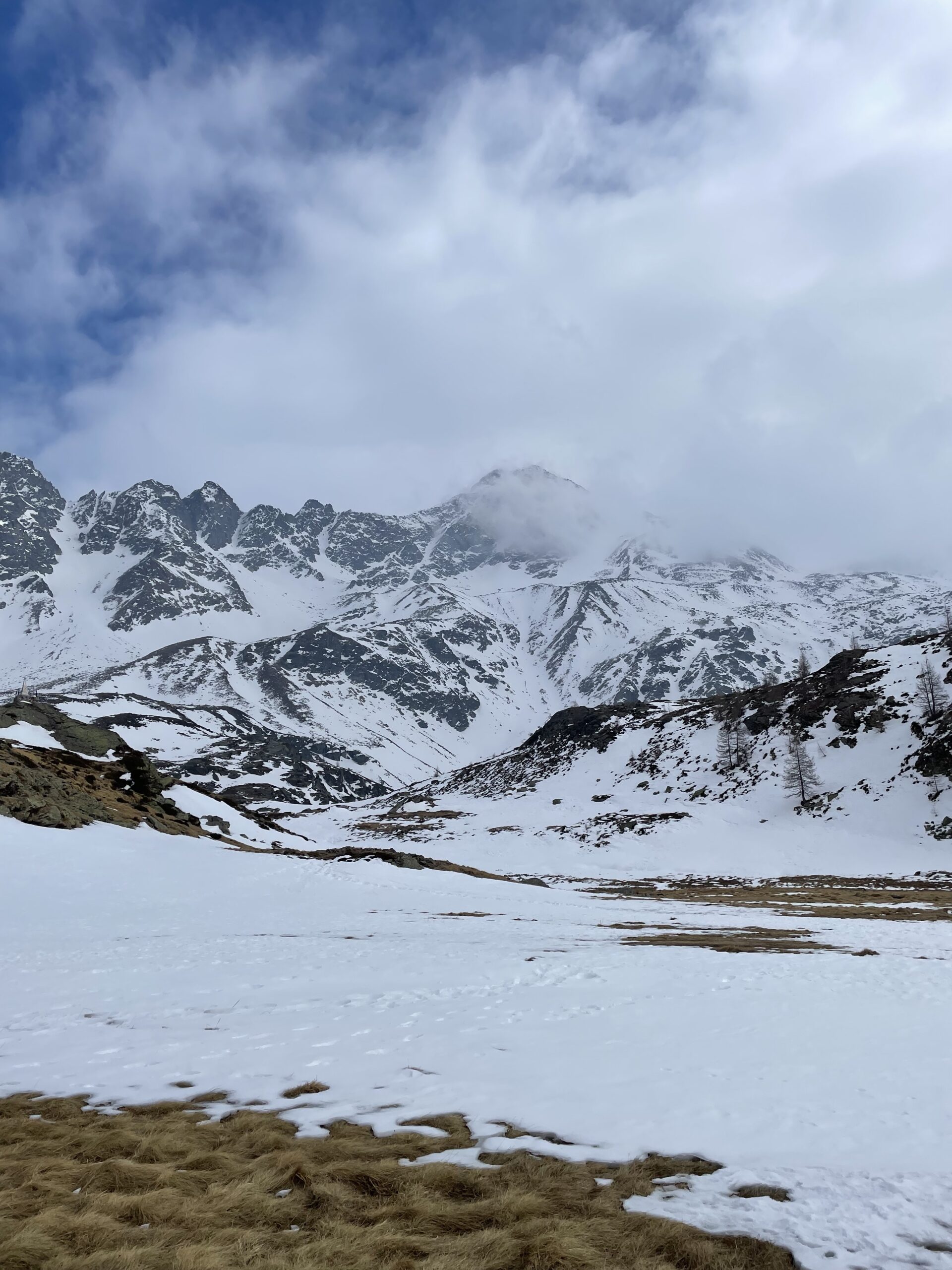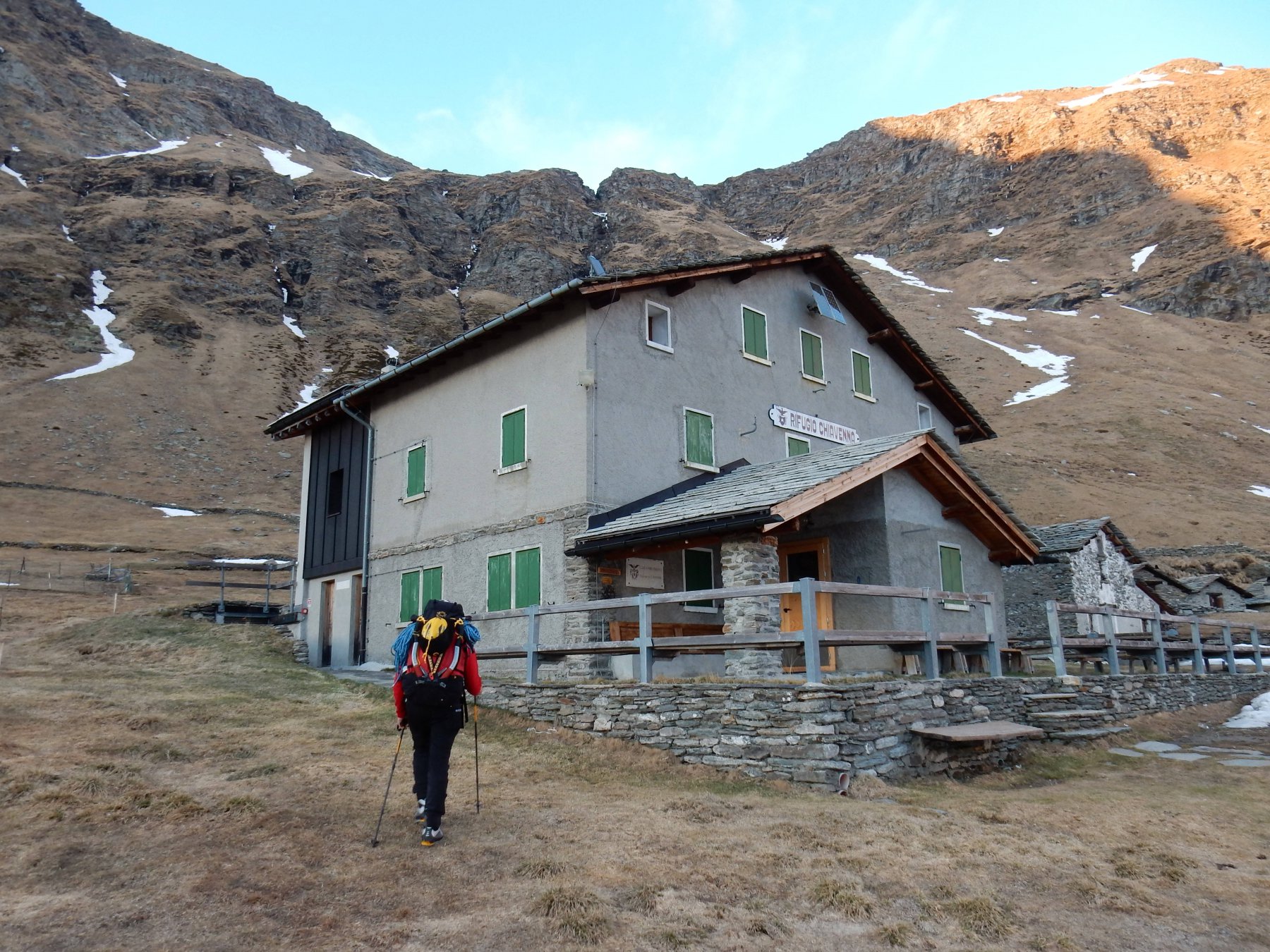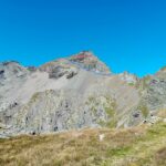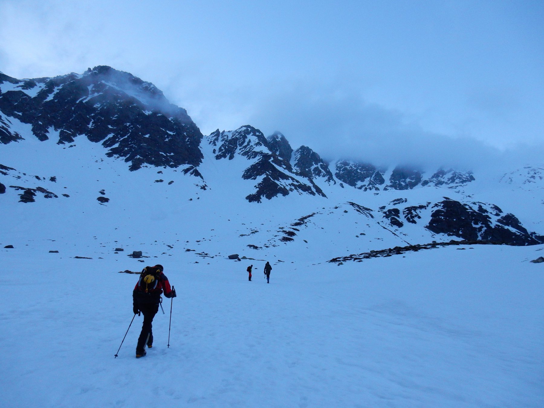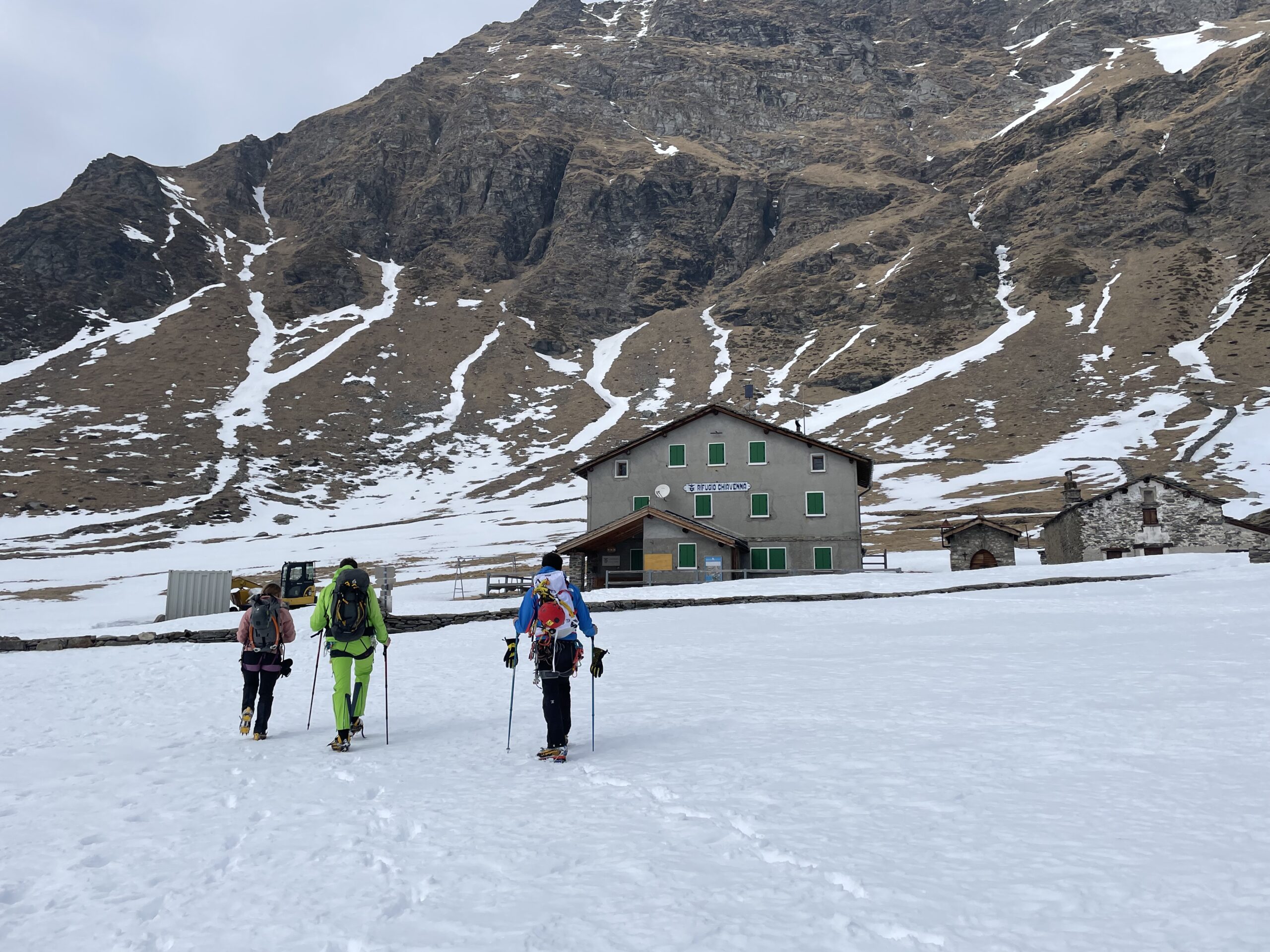 I pascoli lasciano via via il posto ai detriti sassosi e alla roccia, la salita resta comunque agevole e permette di raggiungere il ripiano morenico alla base della bella parete Nord-Ovest del Pizzo Stella, solcata dal grande canalone centrale di neve.