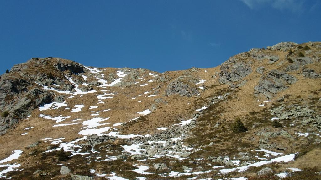 Aggirando un salto roccioso e risalendo un piccolo canalino si giunge in cima al Craper di Stracciola.