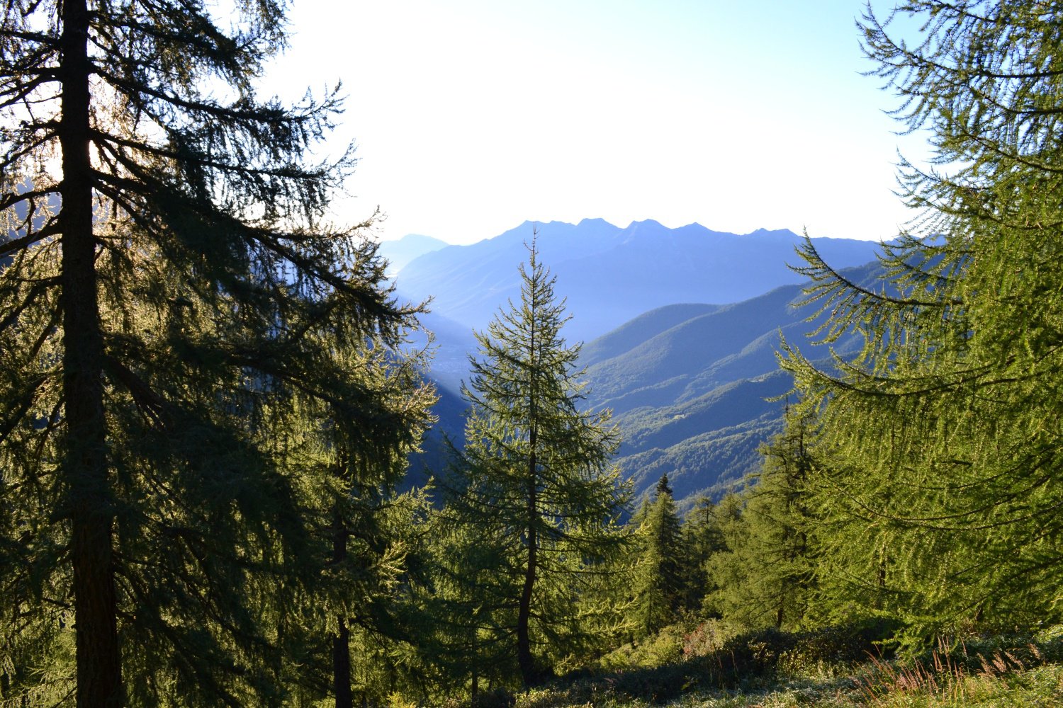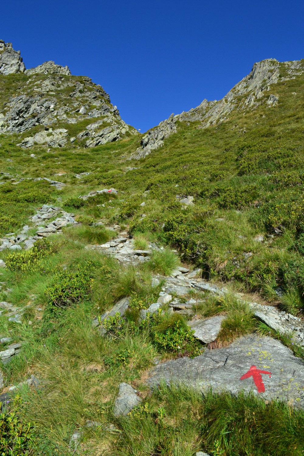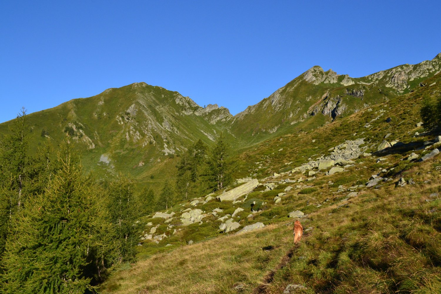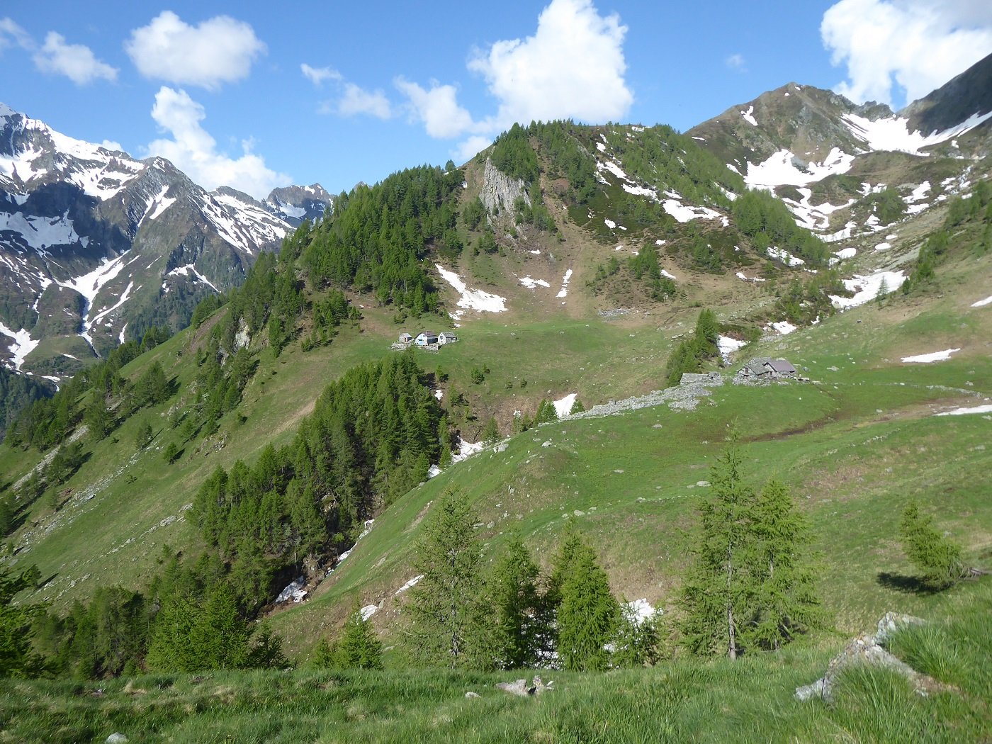 Giunti alla deviazione svoltare a sx attraversare più o meno in piano fino ad un torrente per poi ricominciare lievemente a salire sino a giungere all’alpe Oriaccia (m. 1.651). Passare davanti alle baite dell’alpeggio, poco dopo oltrepassare un altro torrente e sempre in diagonale salire l’ultimo tratto fino ad arrivare su un dosso panoramico con una grossa croce situato sul margine destro della conca del Vallaro. Il sentiero percorre lungamente ed il leggera salita il fianco destro dell’alta valle del Vallaro fino ad arrivare al rifugio Alpe il Laghetto.