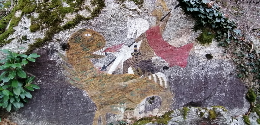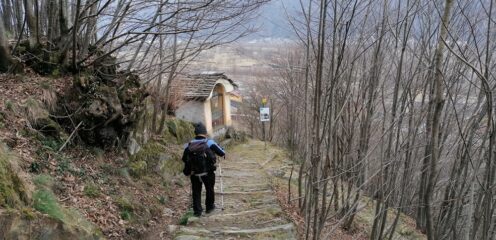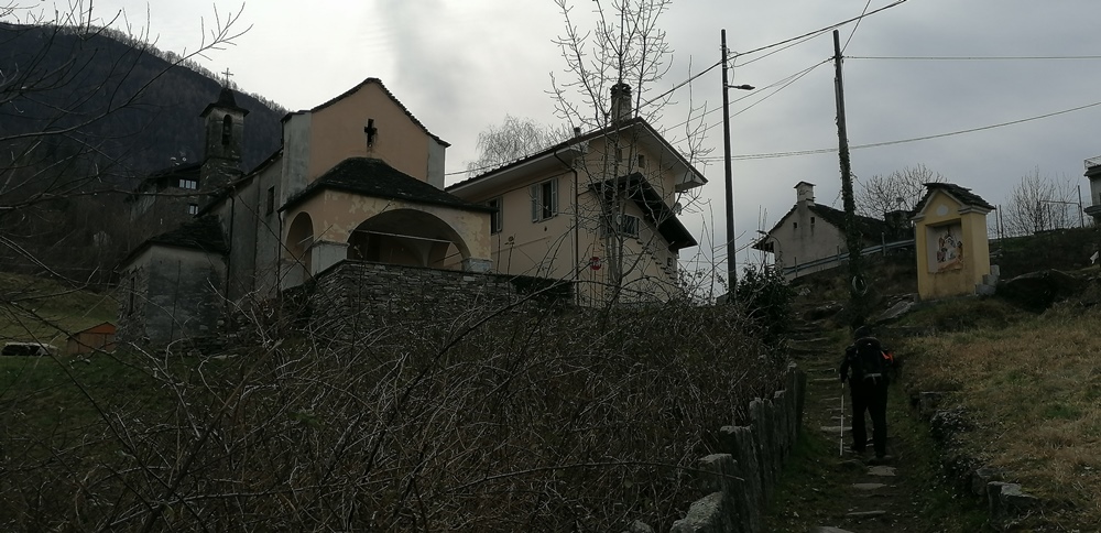 da Cuzzego risaliamo via Cavour dove un cartello indica l’inizio del sentiero. Il primo tratto costeggia un rio poi arrivati a dei caseggiati svolta a sinistra e prosegue sulla vecchia via, passando su grosse lastre di pietra fino a superare la cava del Crucitò. Continuando il cammino incontriamo grossi massi sui quali sono raffigurate le immagini di San Antonio, Patrono di Cardezza e di San Giorgio patrono di Beura. Il sentiero prosegue in piano costeggiando una fila di reti paramassi e arriva ad incrociare la strada asfaltata per Cardezza. Seguendo i cartelli si sale lungo la vecchia mulattiera e si arriva alla parrocchia di S. Antonio Abate. Conviene proseguire ancora un tratto seguendo la via Crucis fino all’oratorio di S. Antonio da Padova da cui si può annirare dall’alto Cardezza. Ritornati alla parrocchia si prende la strada asfaltata passando vicino alla Capela dul Preu e al parco giochi. Qui inizia la mulattiera in ottimo stato che scende a Cuzzego completando il bel anello.