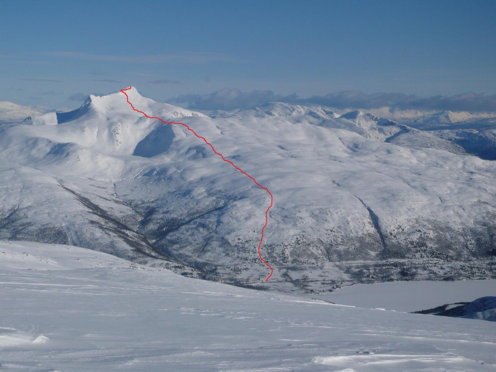 Partendo dalla piazzola risalire la rada boschina in direzione ovest. Verso quota 300 m si esce dalla boschina e ci si deve tenere leggermente sulla sinistra per evitare di salire e scendere i numerosi dossi. Un lungo tratto di falso piano, durante il quale risulta ben visibile la vetta (vedi foto), porta fino a quota 700 m. Arrivati alla base della parete ovest si passa a destra delle poche rocce affioranti e poi si tende verso sinistra all’evidente intaglio. Da qui in vetta per cresta che può rivelarsi più o meno difficile a seconda del rimaneggiamento dovuto ai forti venti spesso presenti in queste zone.