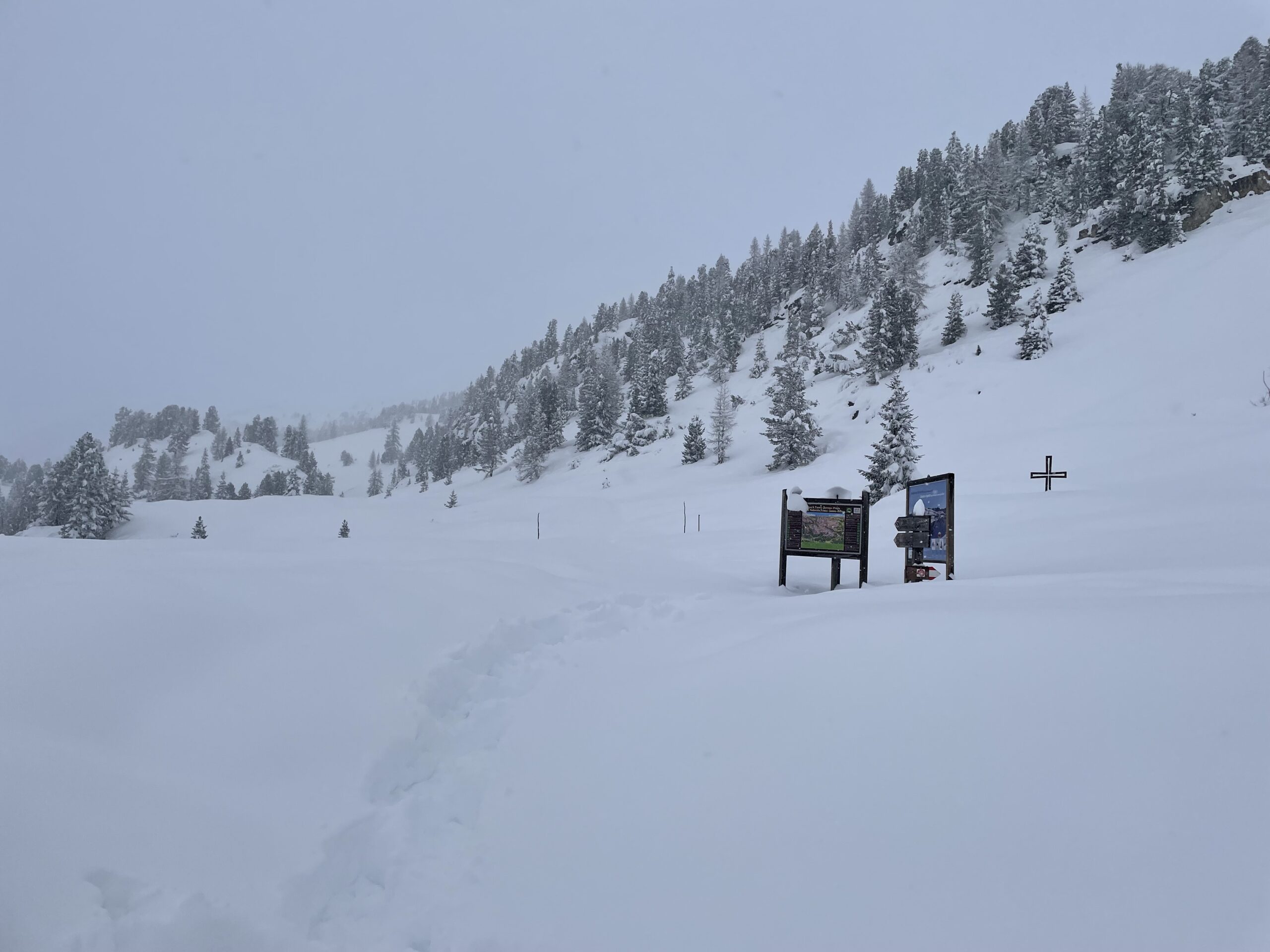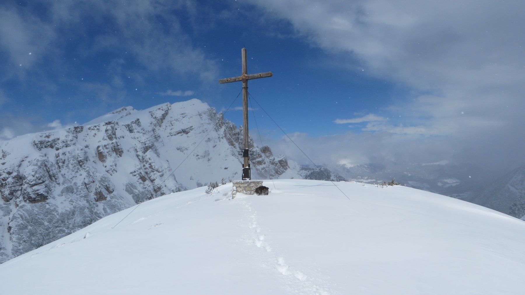 Si segue il sentiero per il rifugio Vallandro a Prato Piazza che si segue fedelmente. Dal rifugio si sale seguendo i segnali prima verso Nord poi SE fino allo StrudelkopsSattel e poi ancora verso Nord all’evidente croce.