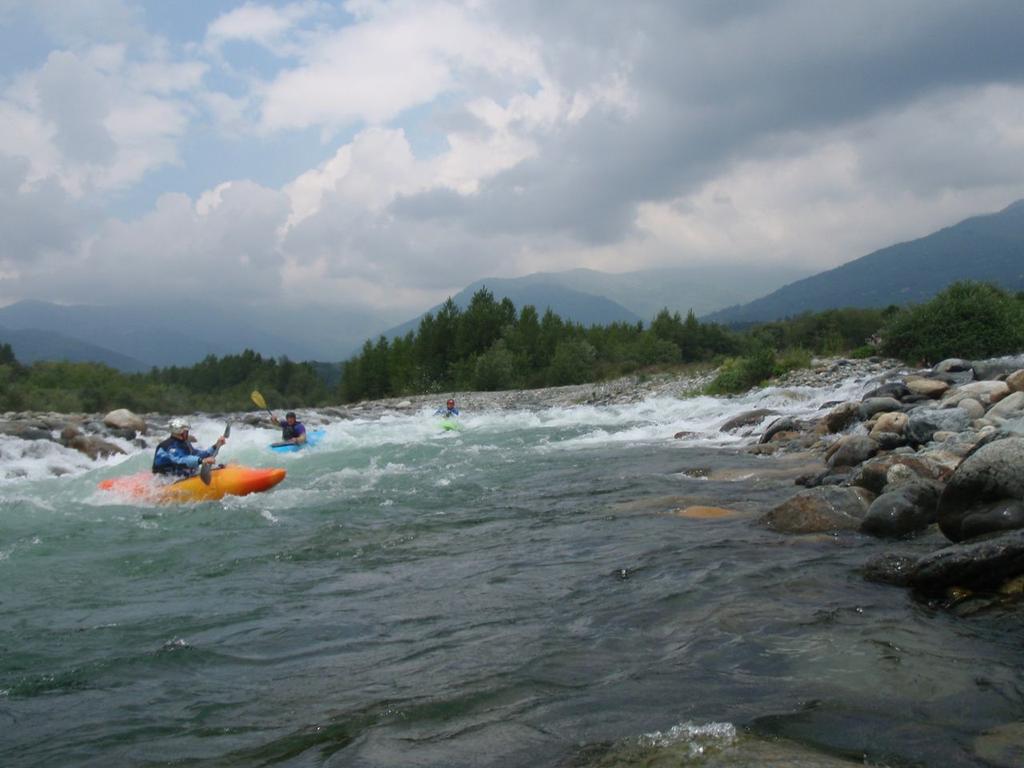 Il livello determina la difficoltà, in questi giorni i fiumi sono gonfi e questo tratto presenta un susseguirsi di belle rapide di acqua bianca con bei buchi e onde alte, dopo il ponte di Traves il fiume diventa più facile, ma c’è ancora uno sbarramento da trasbordo a destra. L arrivo è al ponte del diavolo, dopo le pareti di arrampicata prima dello sbarramento a destra c’è uno sbarco fluviale, con bar annesso