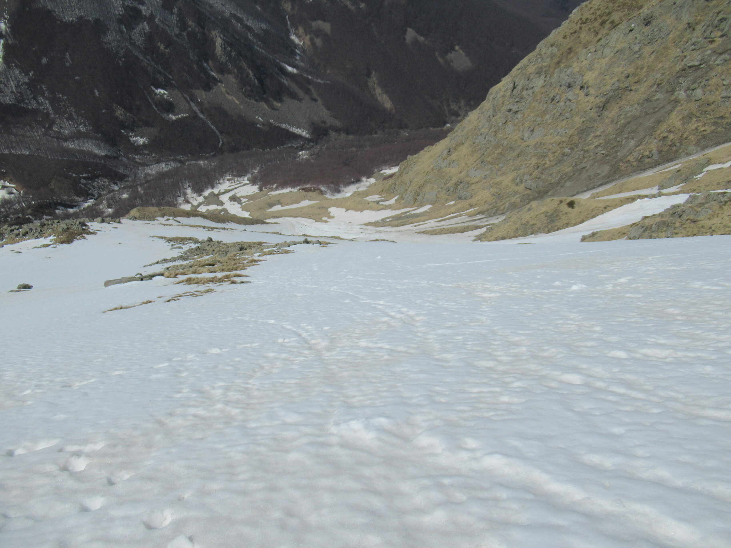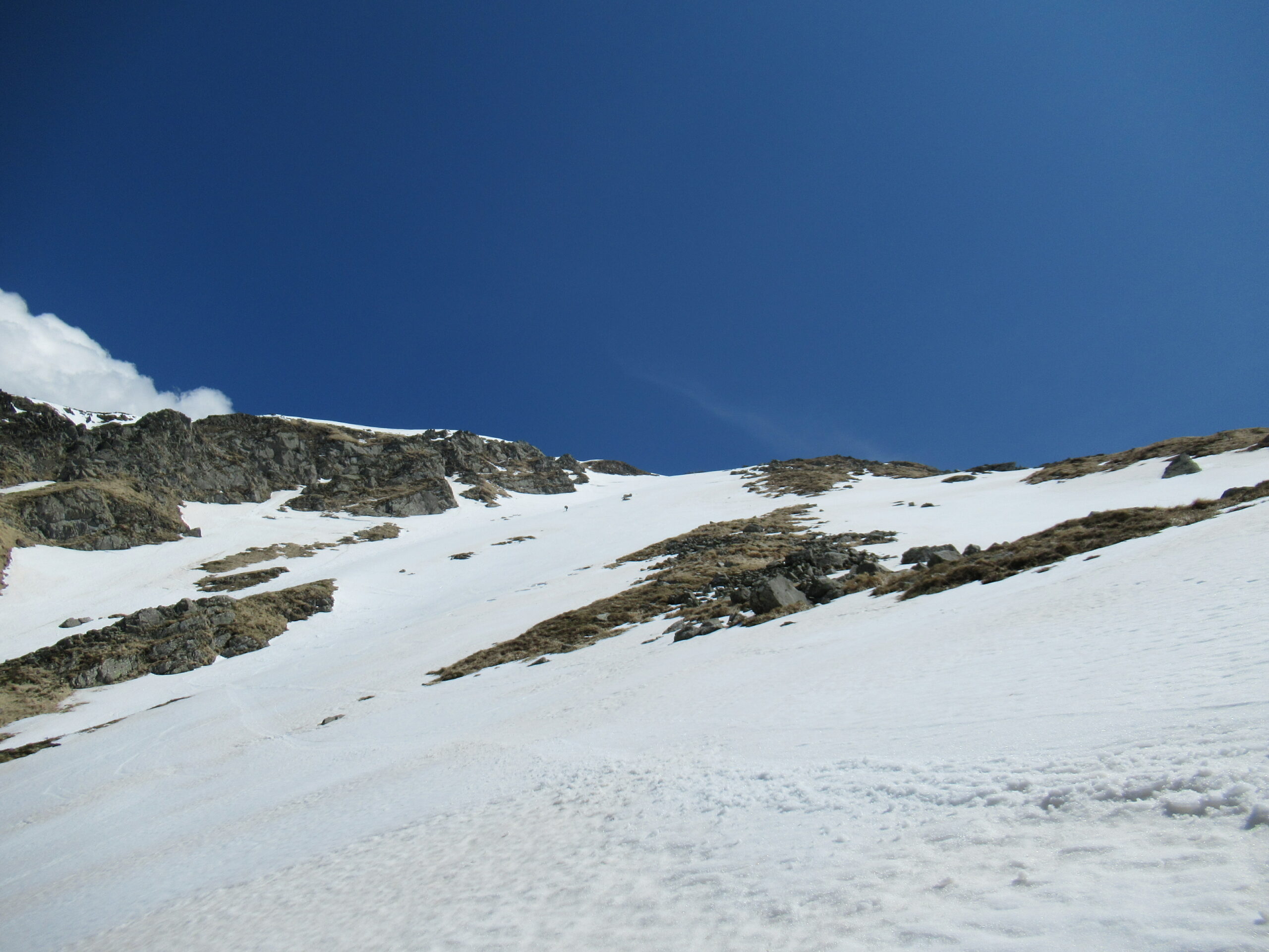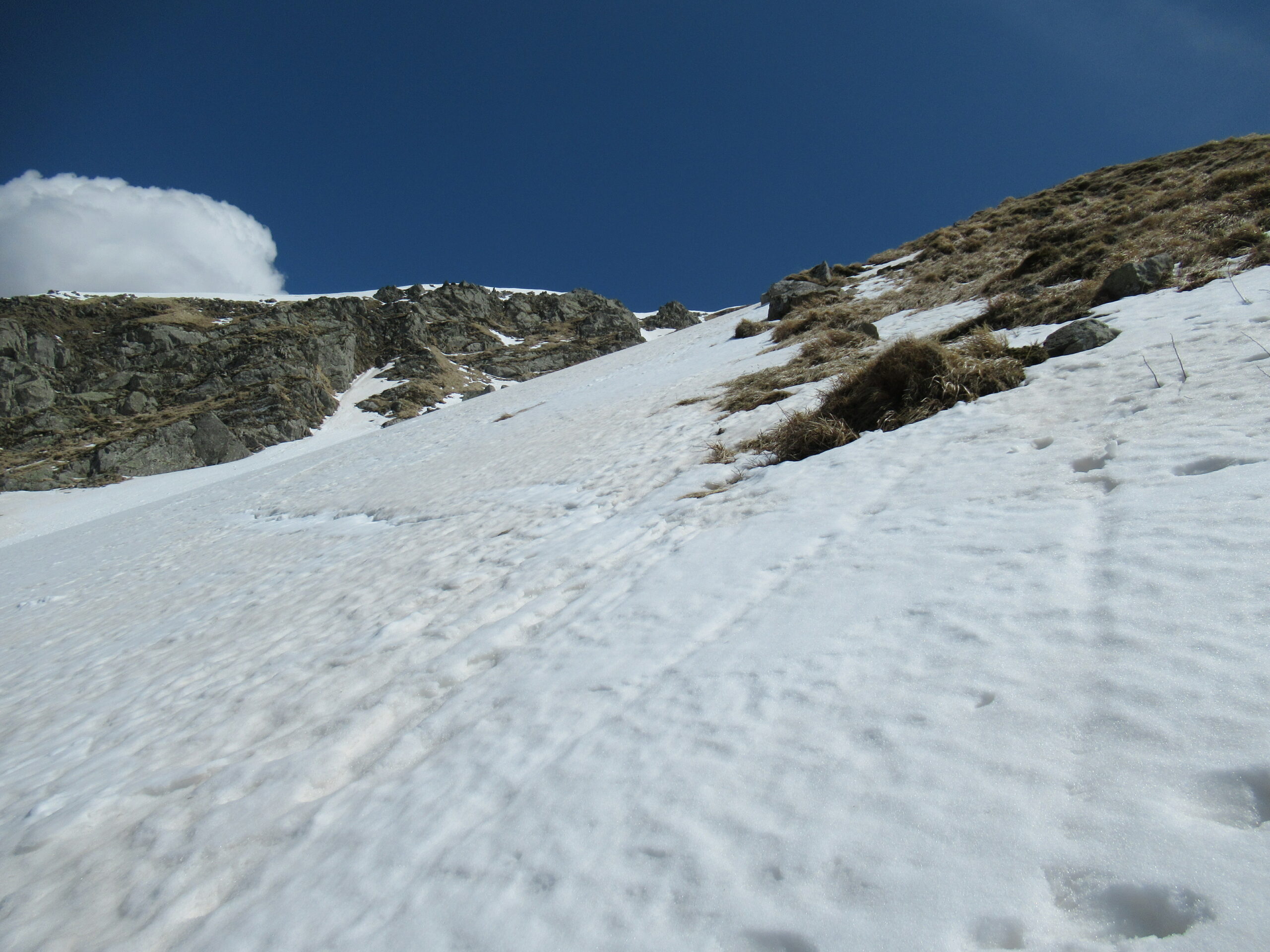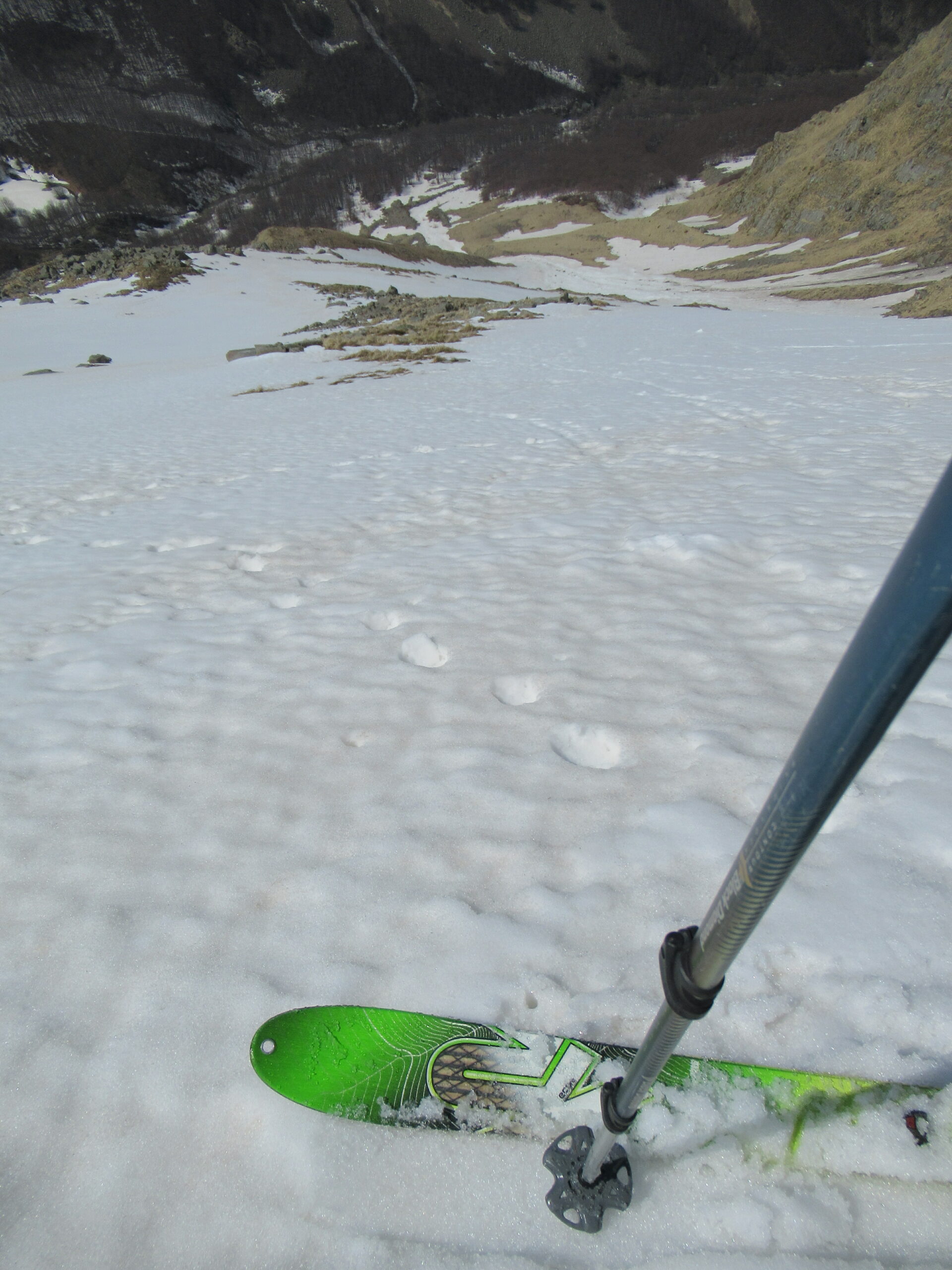 Abbiamo aspettato le 14.00 prima di affrontare la discesa del canale ovest, dopo aver fatto il Casarola, con discesa del canale nord-ovest e ripellato fino alla sella. Neve primaverile trasformata, dura sotto. Non sono ammessi errori!