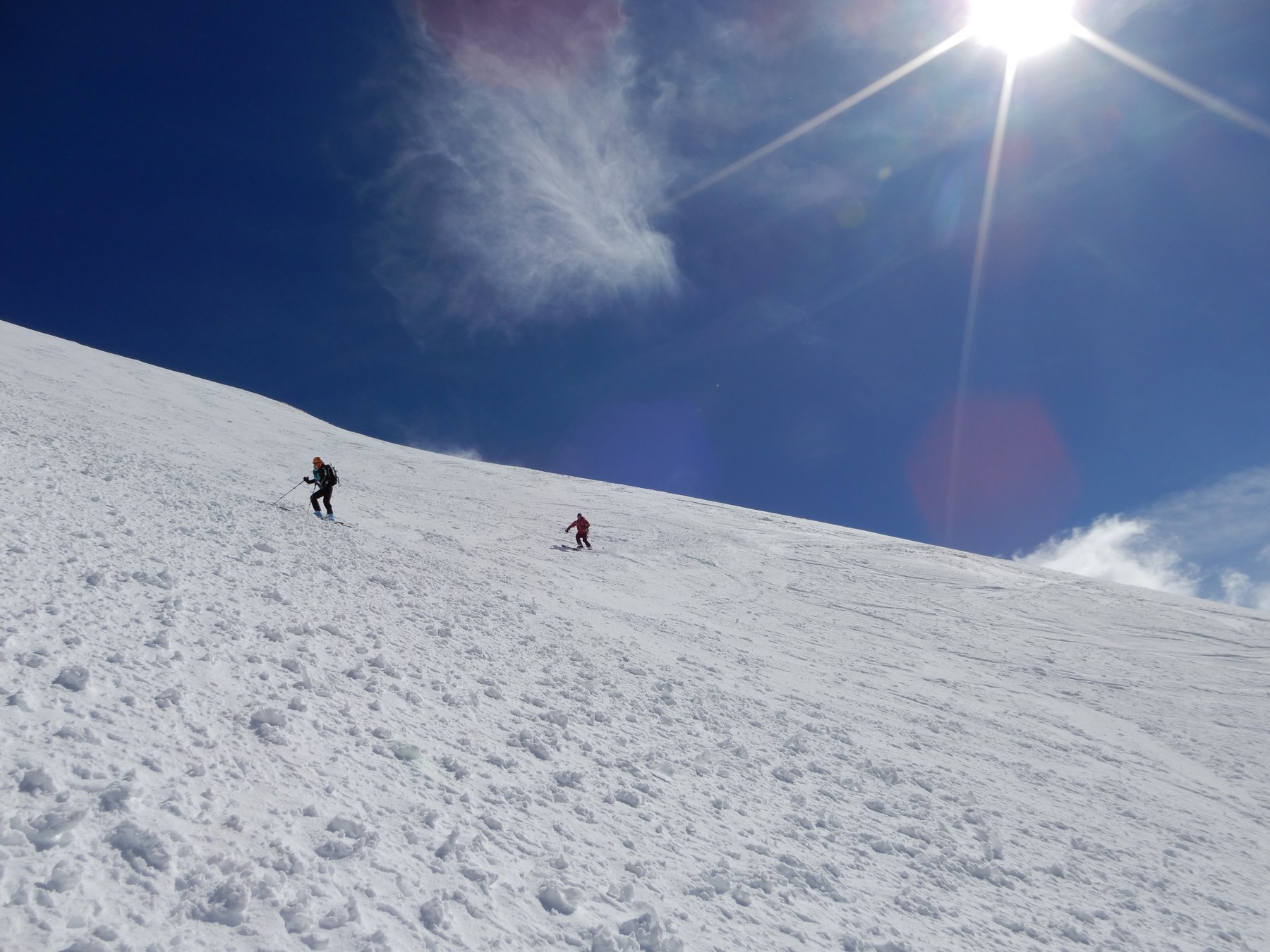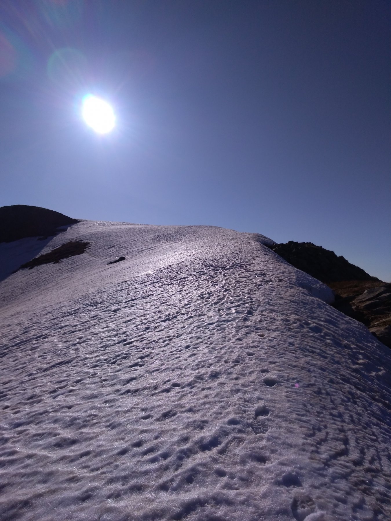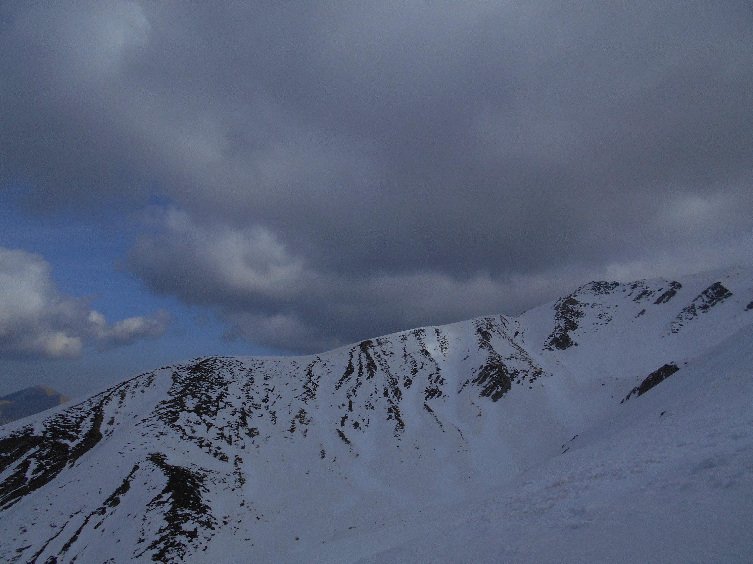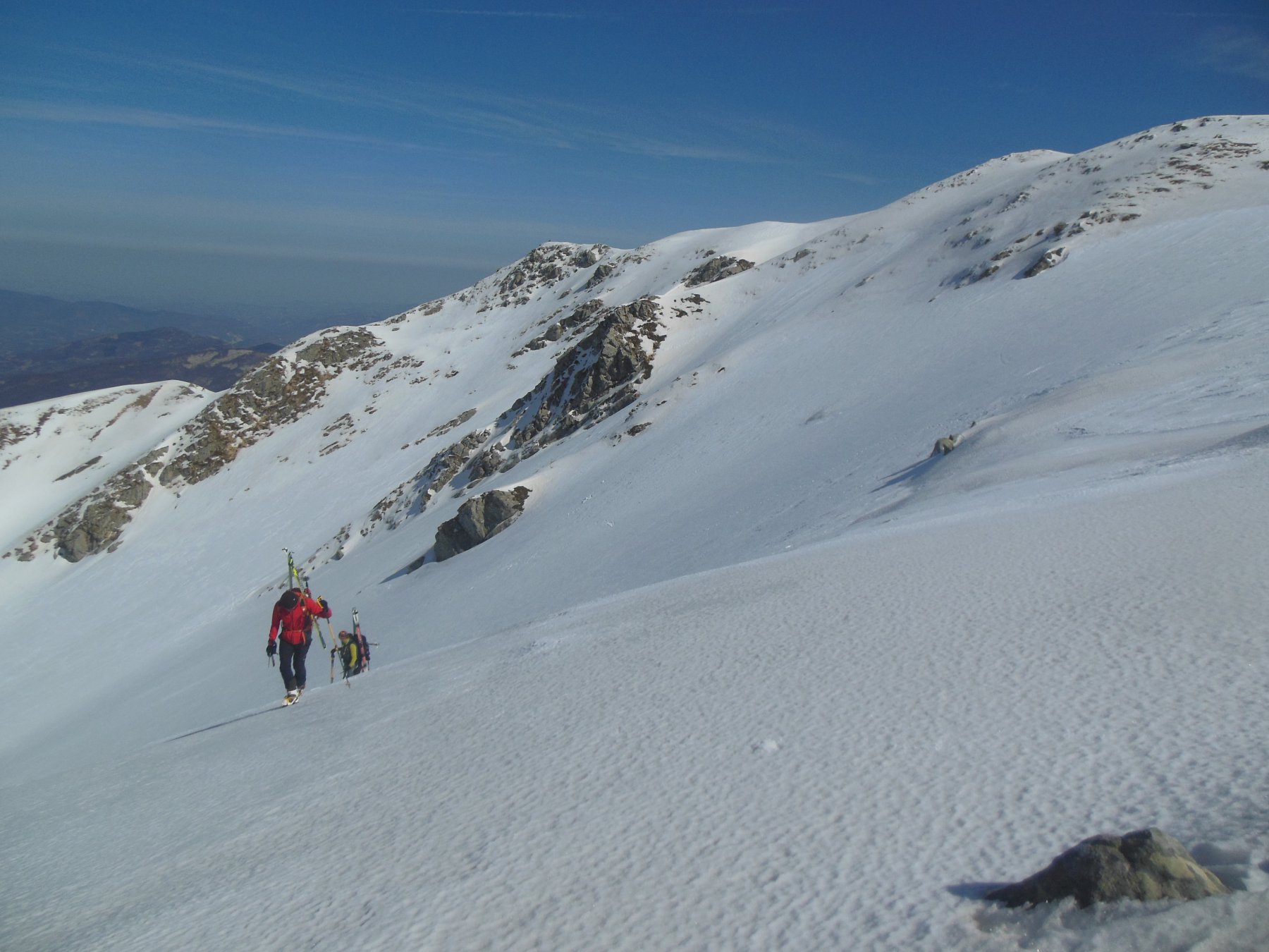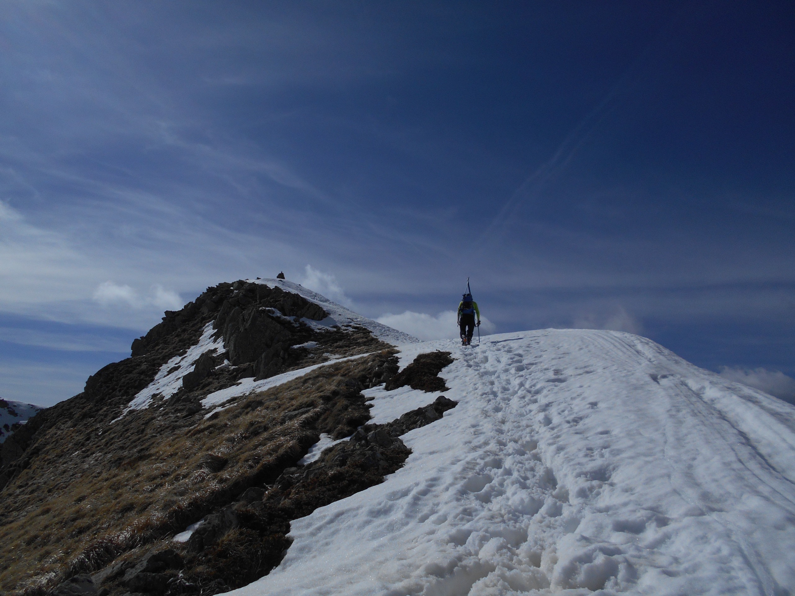 si devia nel canale di sinistra fino alla sella del casarola (vetta gemella dell alpe di succiso) 1950m circa si prende la cresta a dx fino in vetta 2017m. attenzione a ghiaccio e cornici