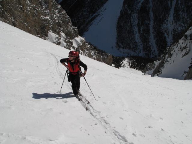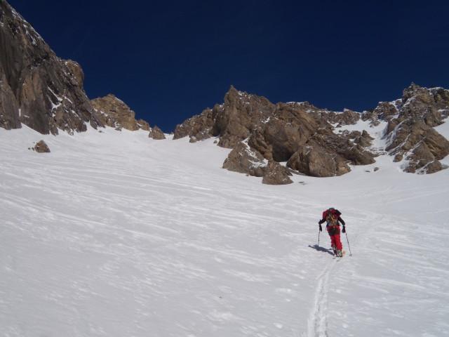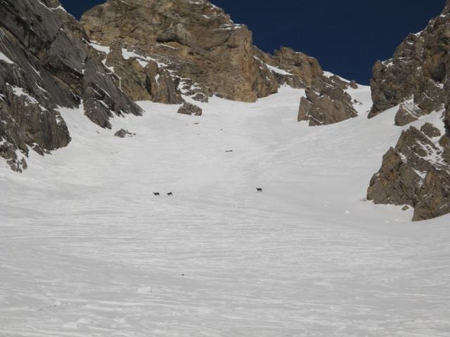 Credevamo di trovare non una bellissima neve, ma almeno discreta, siamo partiti alle 9.30 con meno15° la stradina è ben innevata, purtroppo il canale è in fase di trasformazione, nella parte iniziale faceva addiritura caldo, poi si è alzato un vento gelido che ci ha fatto fare un tocca e fuggi dalla vetta, nel rientro come già detto da meteo france le nuvole avevano quasi ricoperto la valle, qualche bella curva siamo riusciti farla da oltre metà canale, appuntamento alla prox un saluto al mio socio.