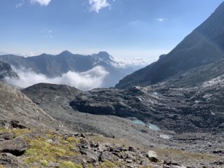 Il percorso è sempre abbastanza evidente, segnalo l’importanza del bivio a quota 2800 in cui lasciarlo per attraversare il torrente ed il lago in secca in modo da portarsi verso la salita del col Sulè; qui a fine del lago in secca non ho visto subito i segni biancorossi del sentiero ma basta salire di qualche decina di metri e lo si incrocia e si arriva al colle senza problemi.
