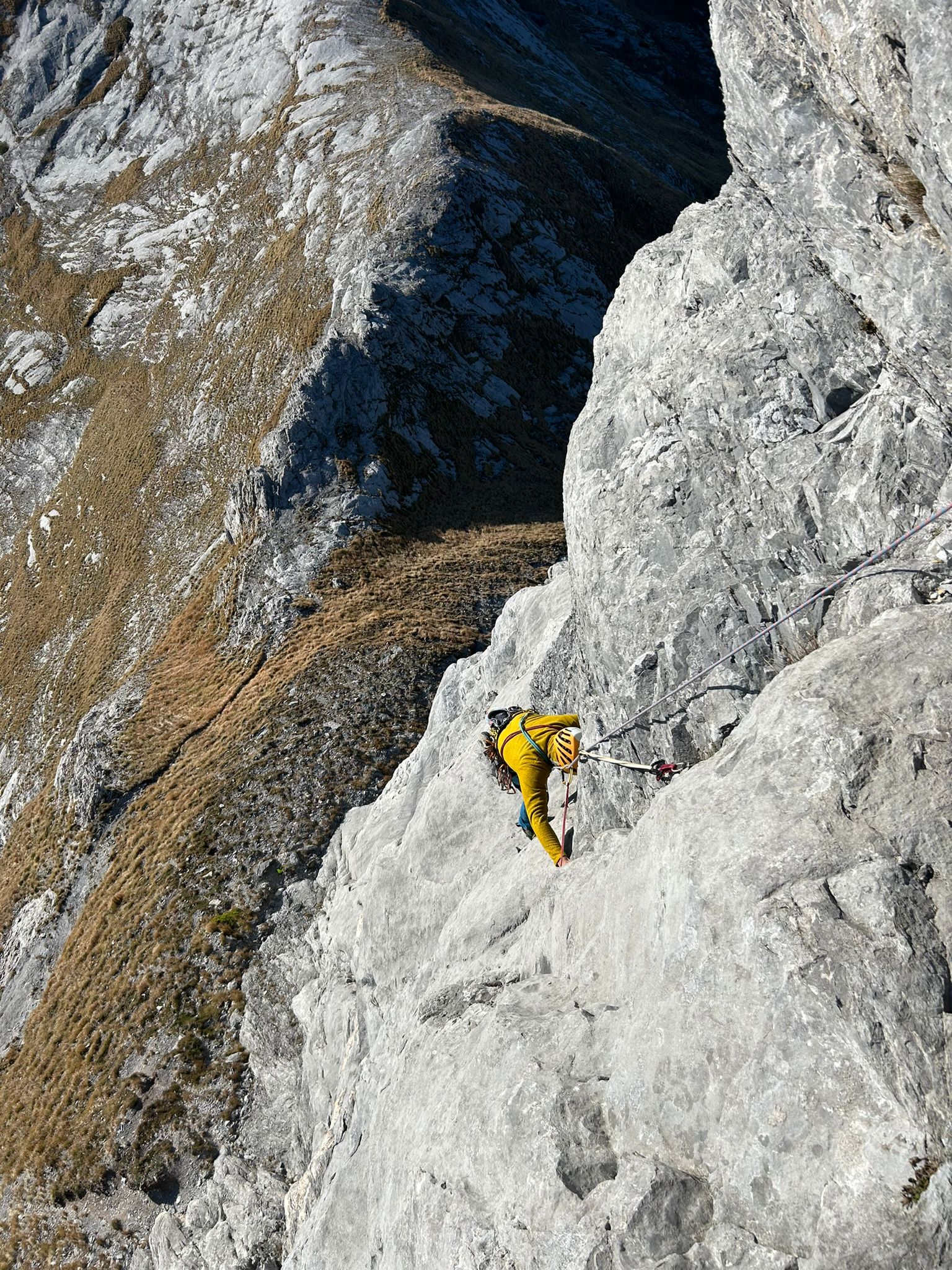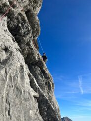 L2-4c (alla sosta 2 giunge dal basso una variante diretta con difficoltà di 6a+)