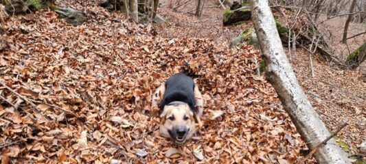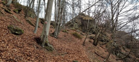 Moltissime foglie nel tratto traverso da Monti fino alla Cappella di Giardino, che rendono scivoloso il sentiero, soprattutto oggi che piovigginava.