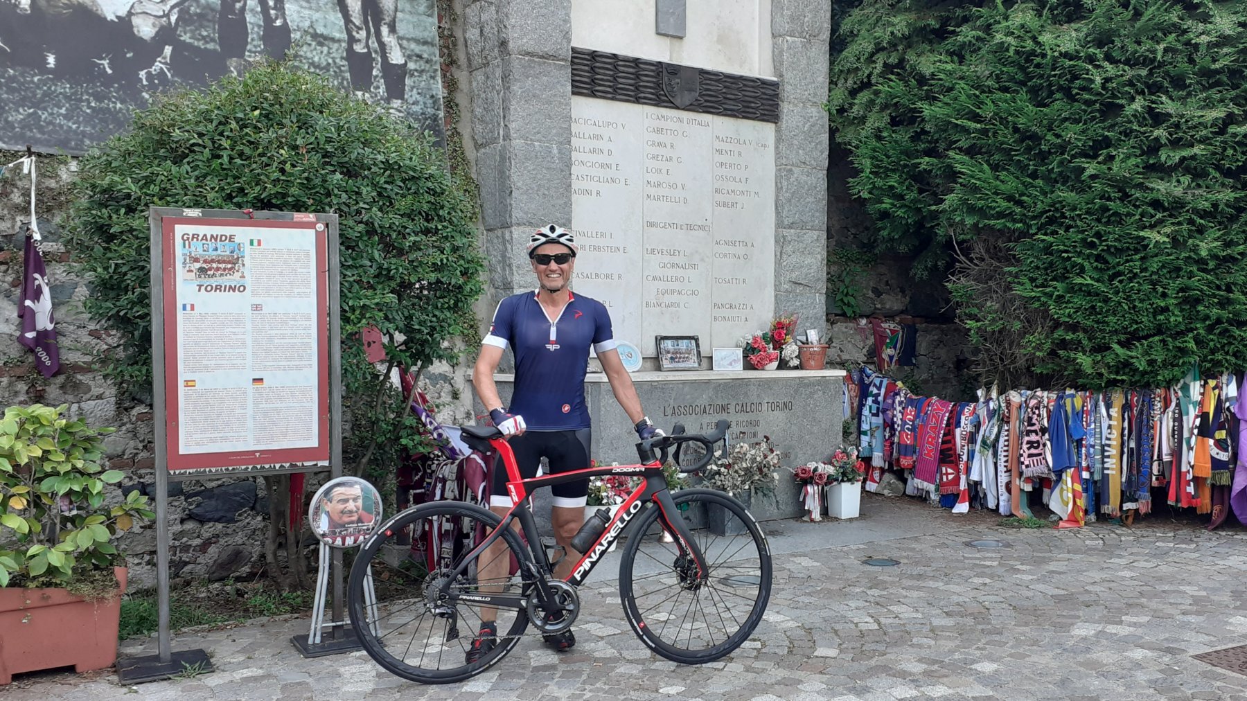 Giornata molto calda per un giro pomeridiano di 91 km e 1.150 metri sulle colline torinesi e artigiane con partenza e arrivo da Brandizzo. Salita a Superga da Sassi con discesa dalla panoramica su Pino Torinese. Fare attenzione per un tratto di alcuni metri privo di asfalto che in velocità può essere pericoloso. Da qui il tour è proseguito verso Chieri, Colle don Bosco, Casalborgone e con un’altra salita a Castagneto Po e nuova discesa verso Chivasso. Con Pina 2.