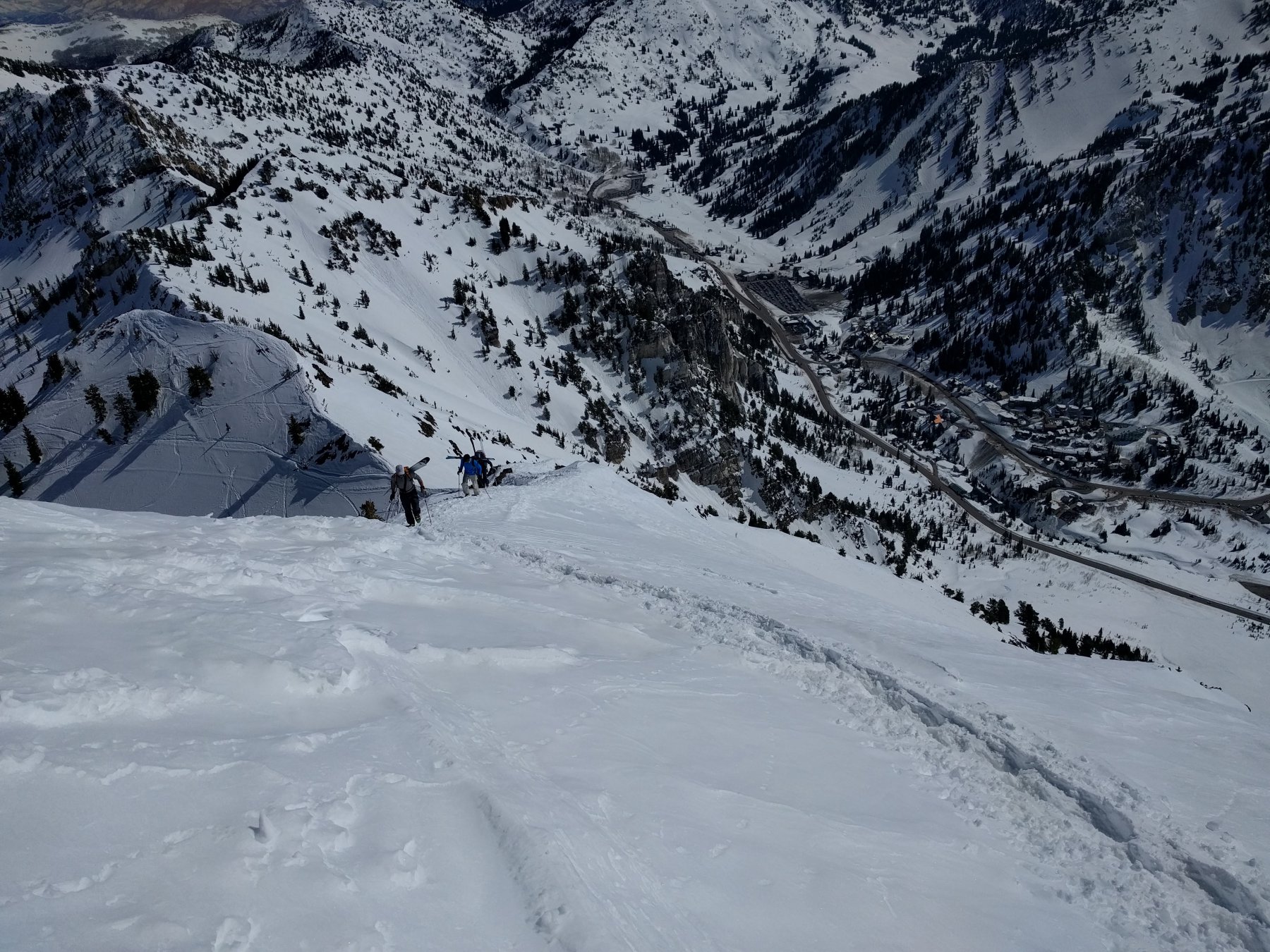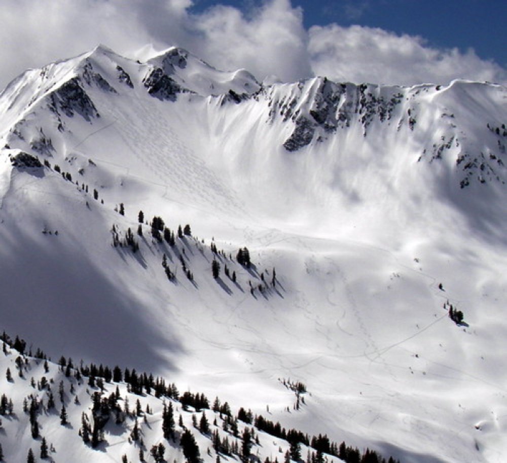 Qui si propone una combinazione interessante che permette di farsi qualche centinaio di metri su un versante Nord bello e selvaggio, con il rientro sui bei pendii del versante sud che sovrastano la stazione di Snowbird.