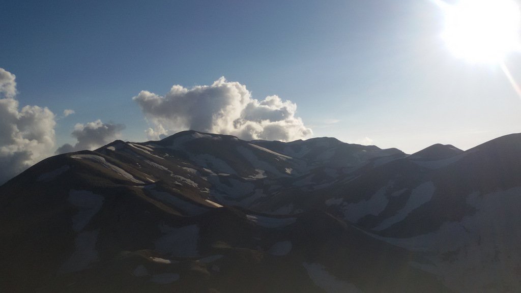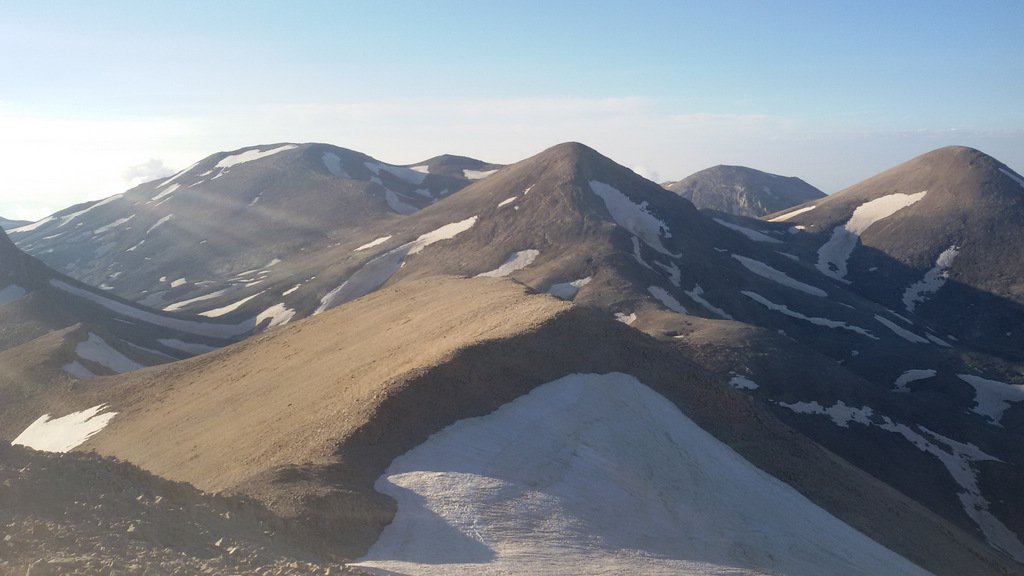 Ci si abbassa quindi in direzione SE mirando al ben visibile sentiero per Roussies oltrepassato in salita e lo si segue sin quasi al colletto fra Zouridhia e Bournelos lasciandolo a q. 2100 circa per volgere a sx e toccare in breve la vetta dello Zouridhia (q. 2250 circa). Si affronta ora l’ultima parte del percorso che culmina in punta alle Sternes (q. 2335): si prosegue per cresta in direzione SO aggirando due modeste elevazioni sul versante O per andare a reperire la lunga dorsale in falso piano dalla quale si accede alla cima. Per il rientro si può o scendere lungo la dorsale O a Roussies e da qui proseguire per sentiero e poi sterrata oppure continuare in direzione S e poi SE andando ad intercettare la sterrata, già individuabile dalla vetta, a q. 1900 circa. Non resta che seguirla per circa 4 Km fino all’auto.