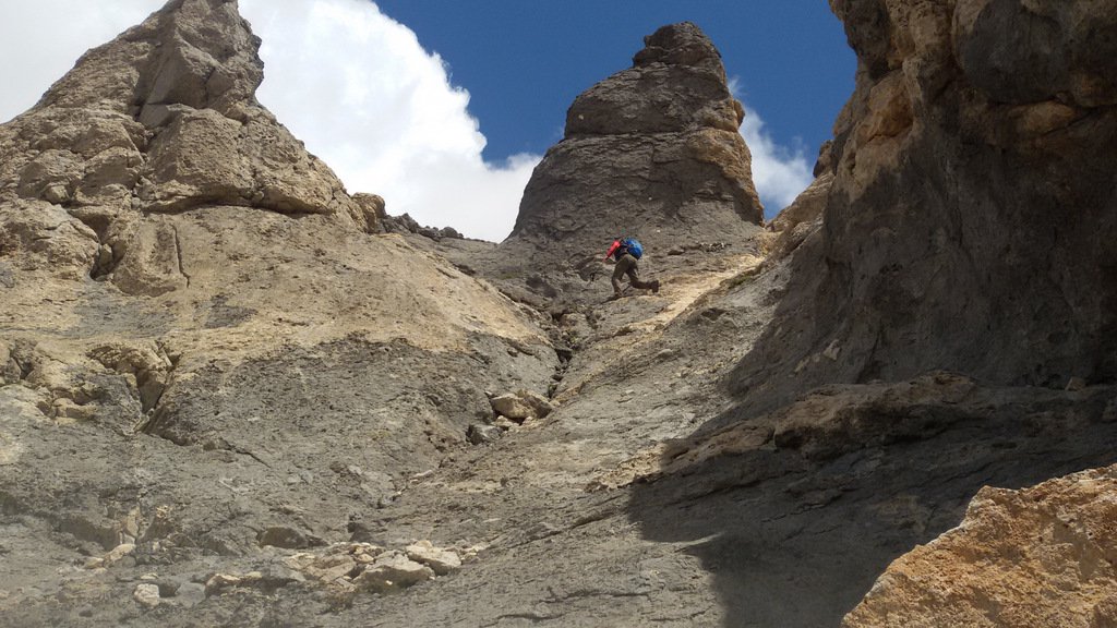 L’ambiente è desertico e privo di punti di riferimento distintivi, necessarie quindi capacità di orientamento e buona conoscenza della zona. Lo sviluppo della gita è di 20 km abbondanti e il tempo di percorrenza di circa 11-12 ore. Le quote indicate sono tratte dalla cartina Anavasi.