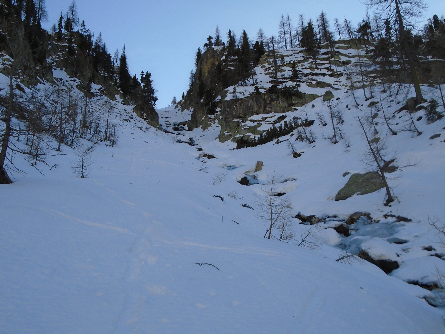 A quota 2169 si imbocca la mulattiera che piega a ovest per il Rif. Questa, fino a raggiungere il vallone dei Prefouns, da dove si diparte il canalone (se si vuole pernottare al rifugio, salirvi direttamente dal piano del Valasco e quindi scendere verso il vallone dei Prefouns).