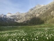 Si segue la strada che entra nel vallone del Valasco, fino al piano omonimo (scorciatoie). Alla fine della conca, attraversato il rio, si imbocca la mulattiera con risalendo la Val Morta porta al Colletto del Valasco.