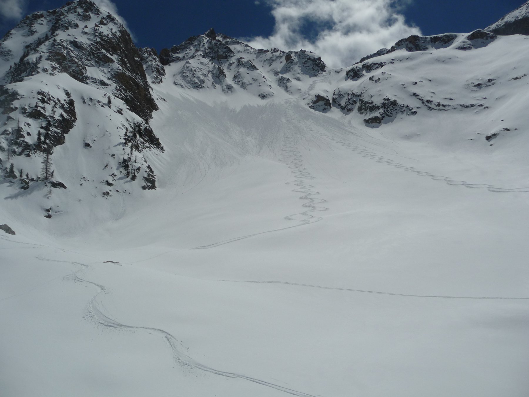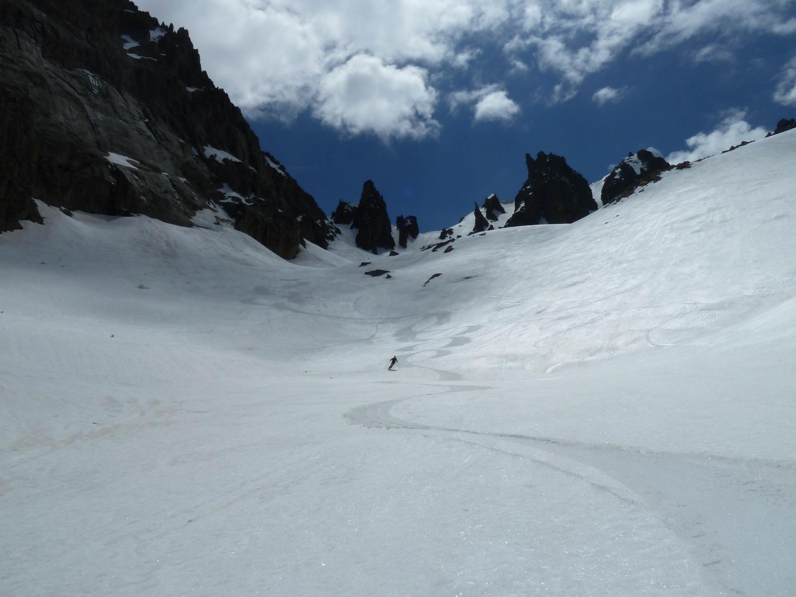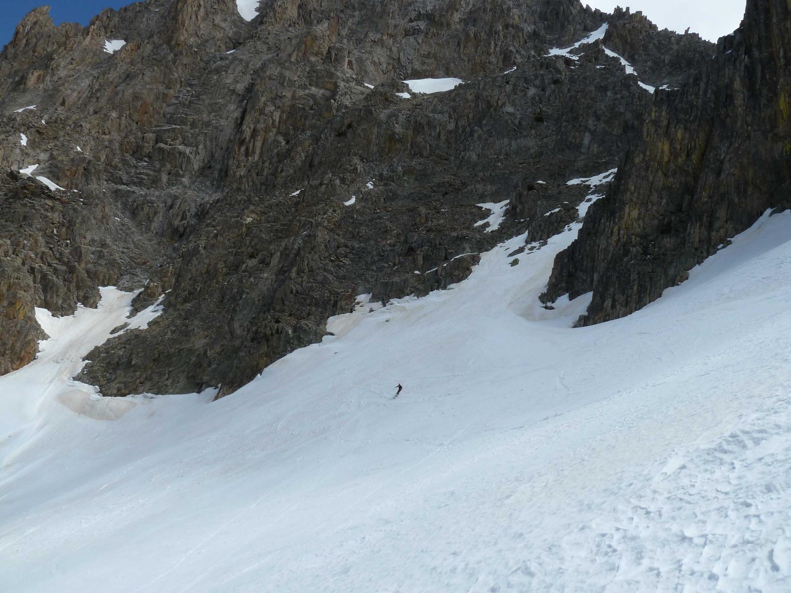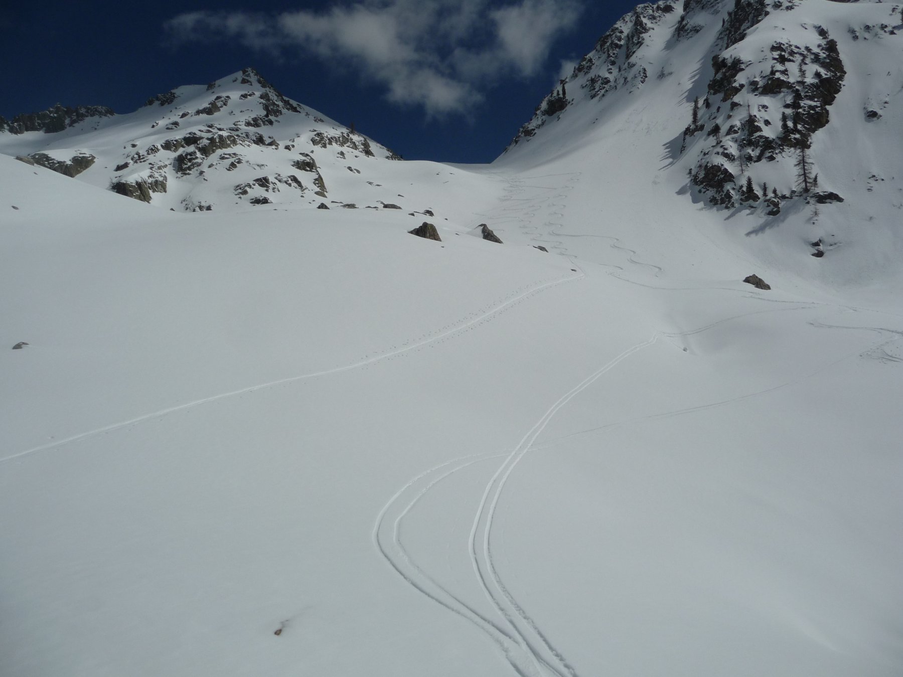 Scendere direttamente dalla vetta con gli sci in direzione del colle del Prefouns, che si raggiunge con una breve risalita di 80m circa di dislivello. Dal colle affrontare la stupenda discesa fino al piano del Valasco.