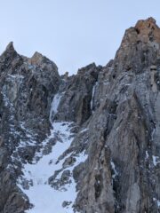 Salita in ottime condizioni. Terminale ok, canale salito in conserva, goulotte ben rifornita di ghiaccio salita in tre lunghi tiri, bellissima. Usate 6 viti e un friend.