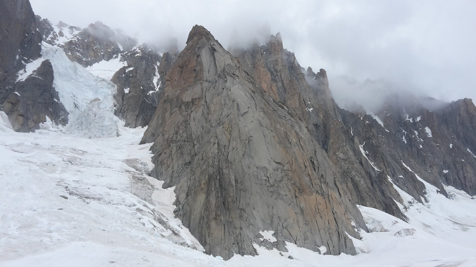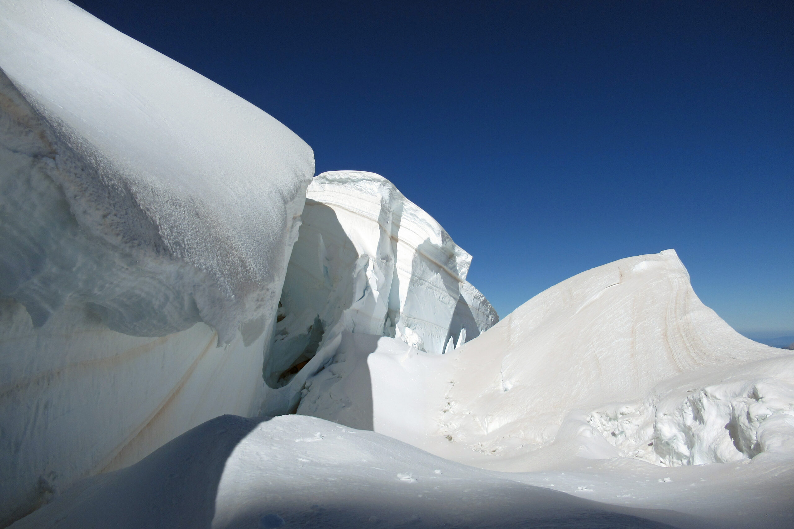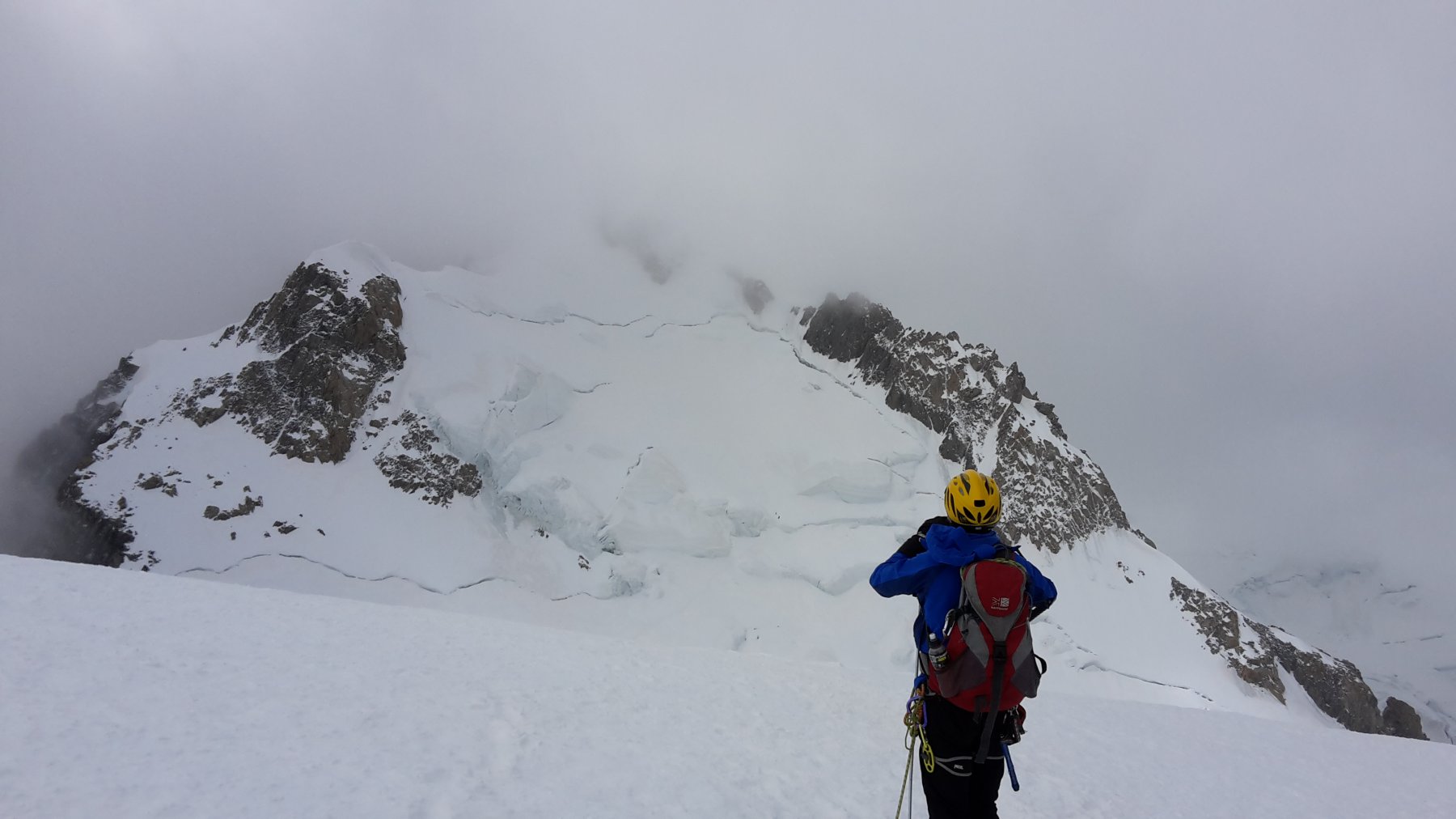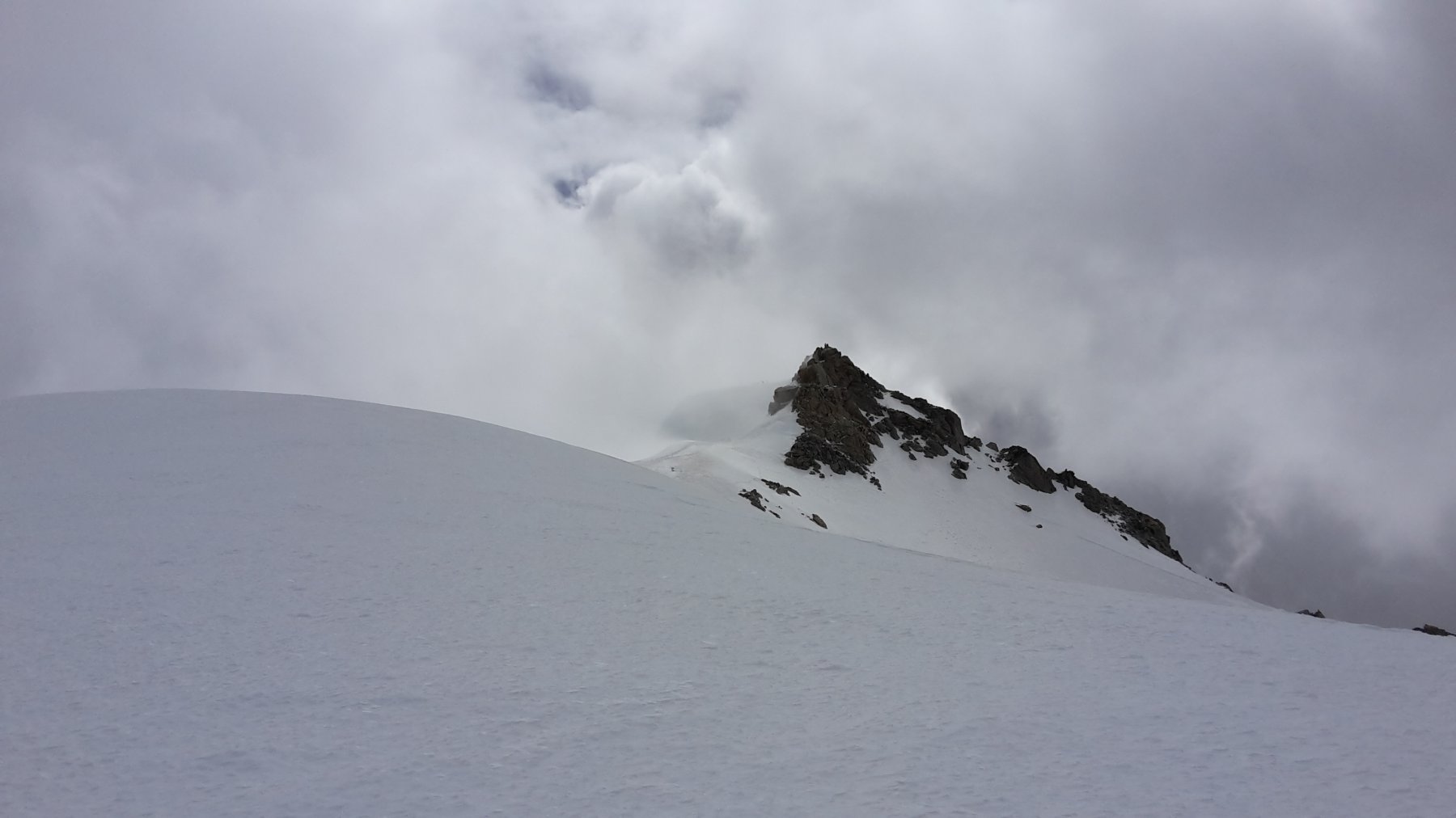 Di qui si risale interamente il pendio di fronte a voi cercando il modo migliore per superare i seracchi pensili ed i crepacci, fino a raggiungre la spalla nord che si segue facilmente fino in vetta.
