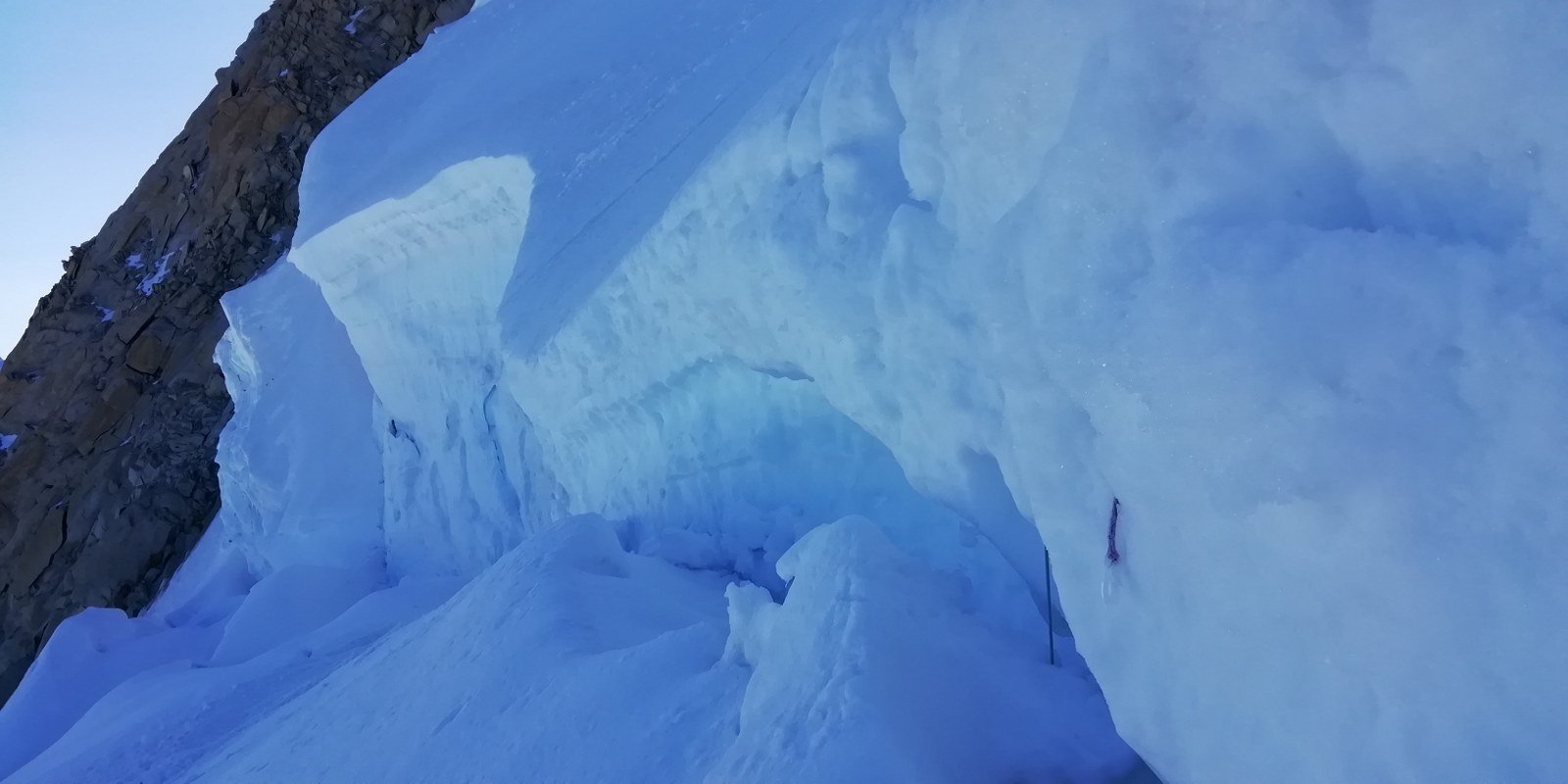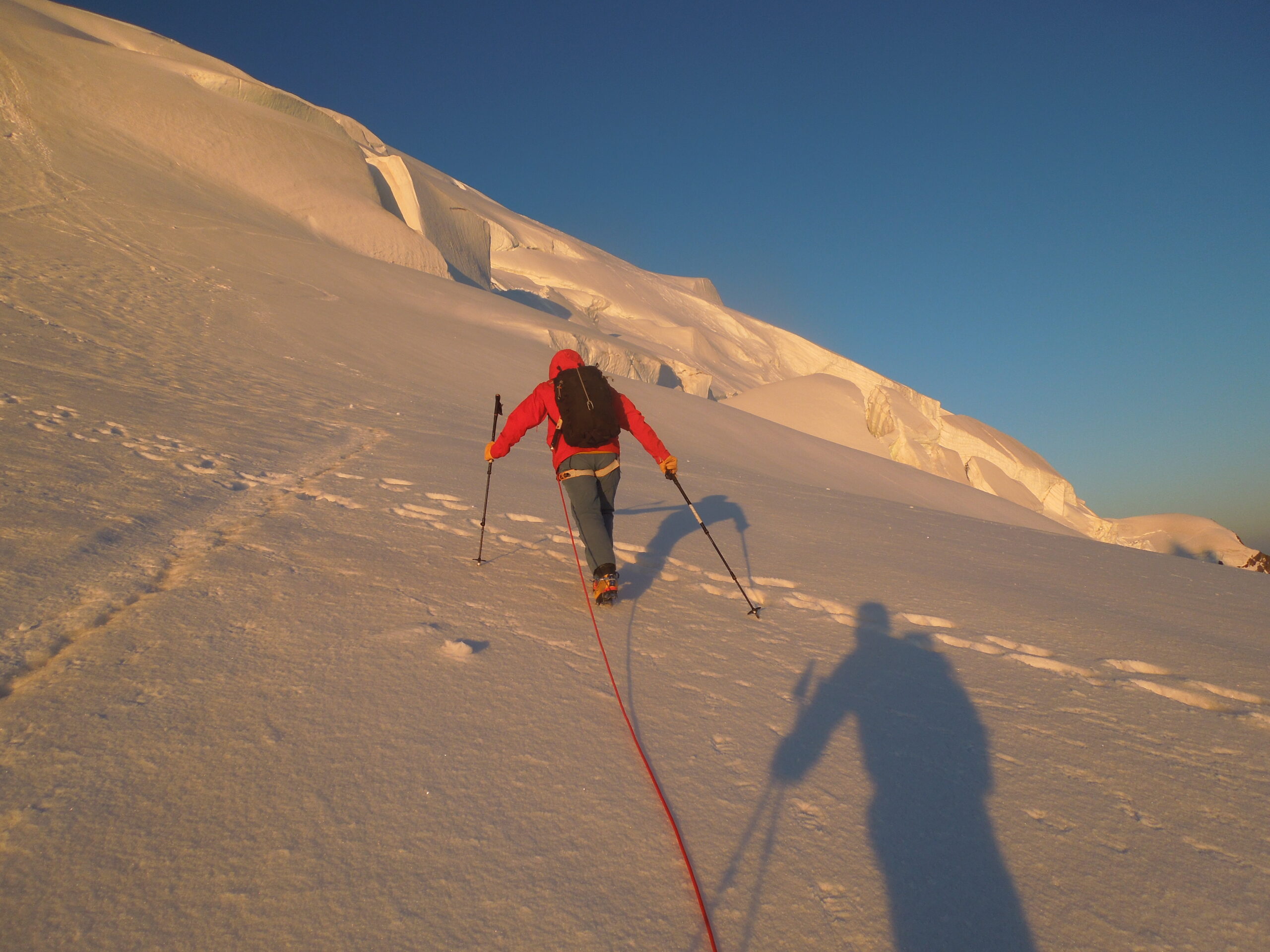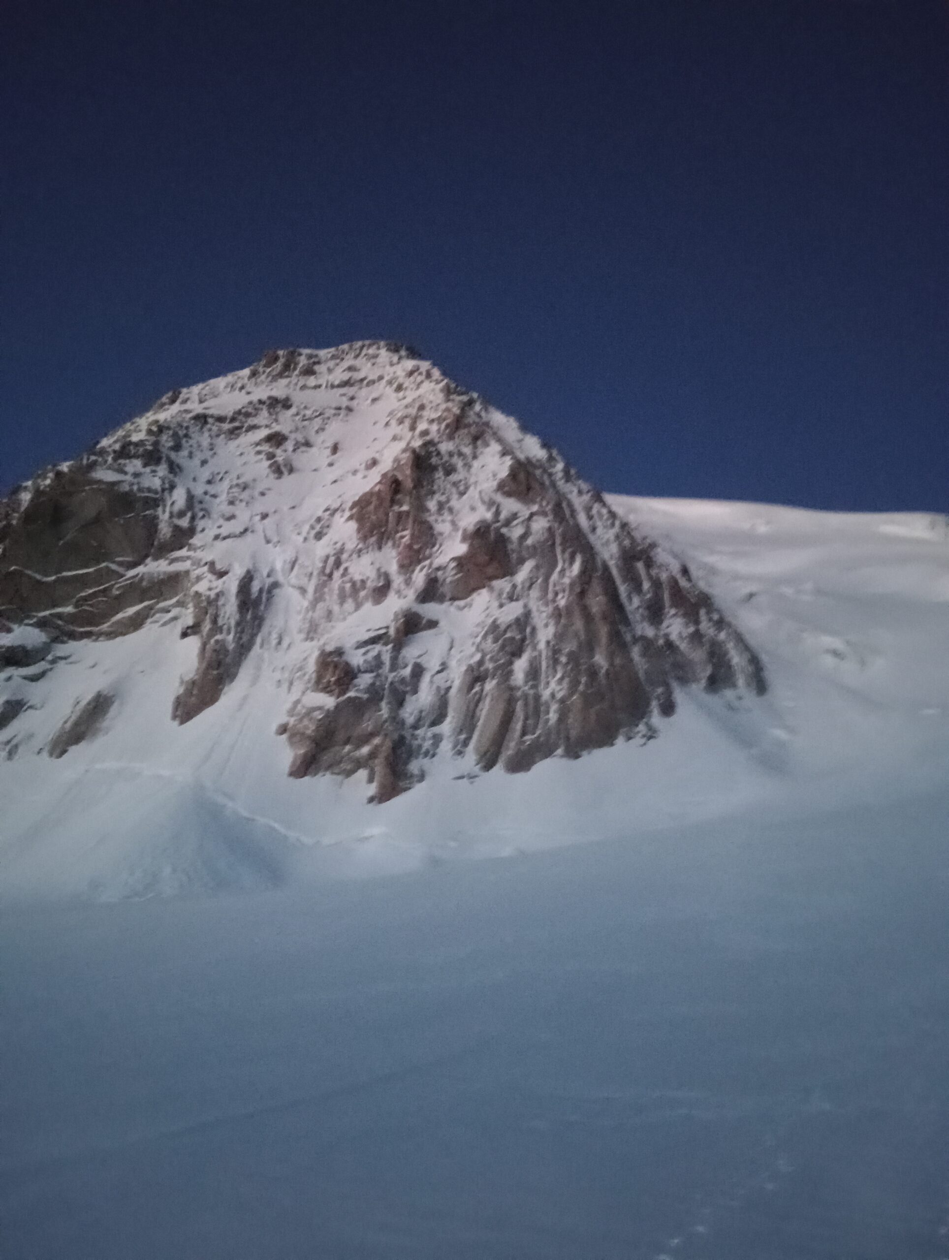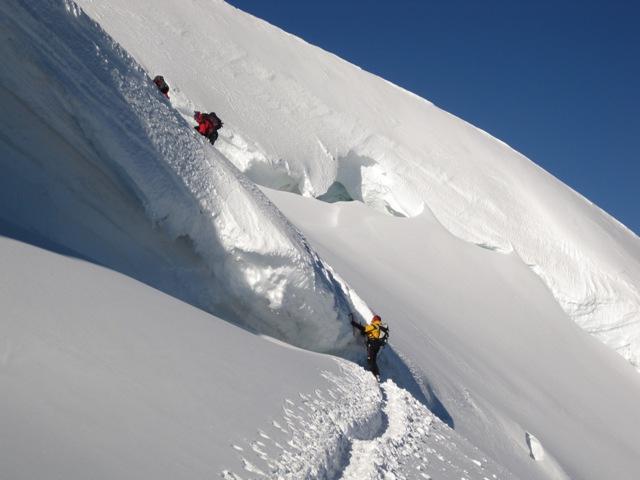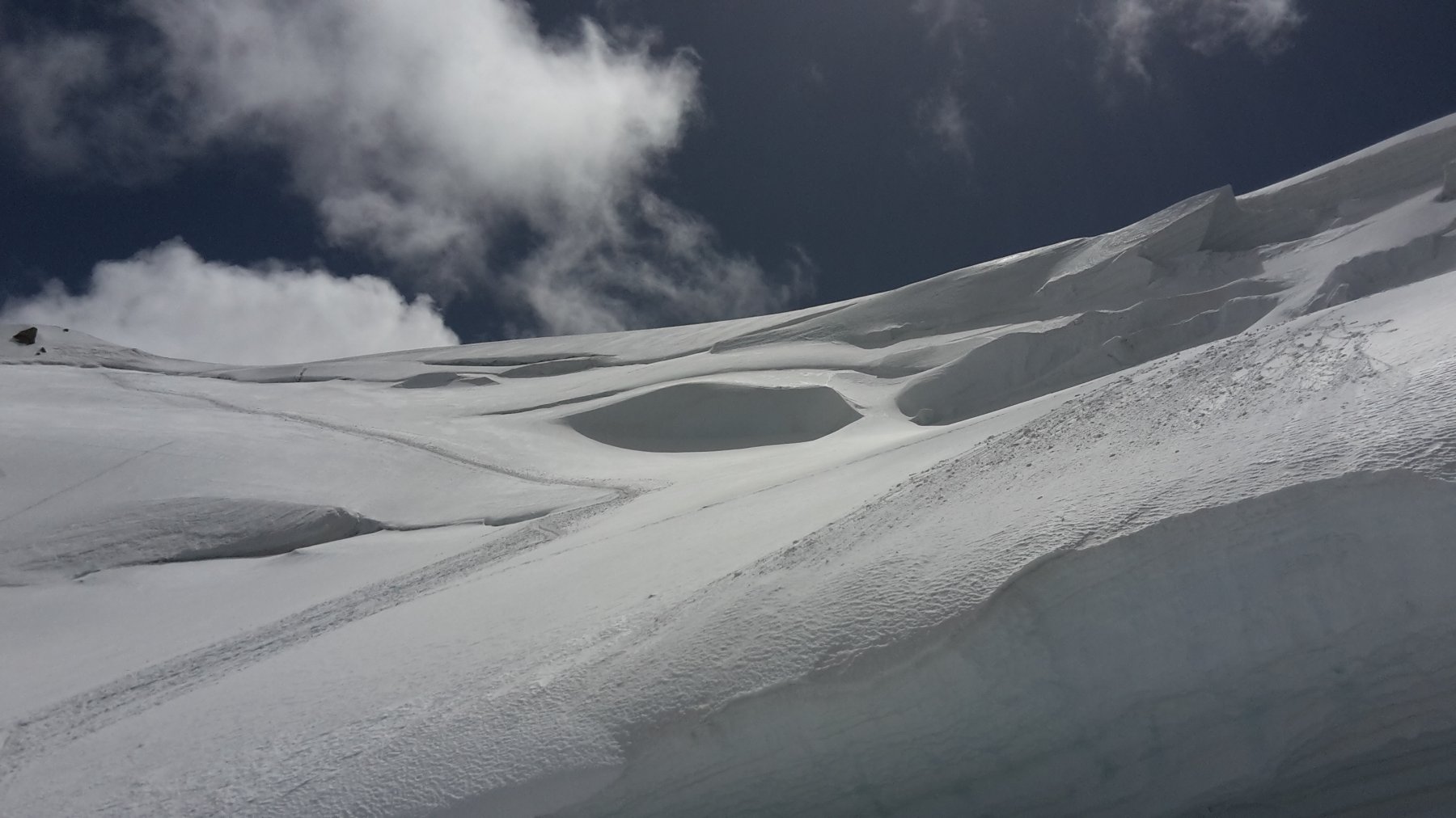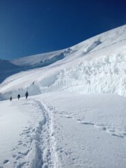 E’ sempre presente una traccia, essendo una via ripetuta spesso ed in tutte le stagioni. Valutate bene lo stato della neve e dei seracchi, il pendio è molto pericoloso anche con accumulo solo discreto.