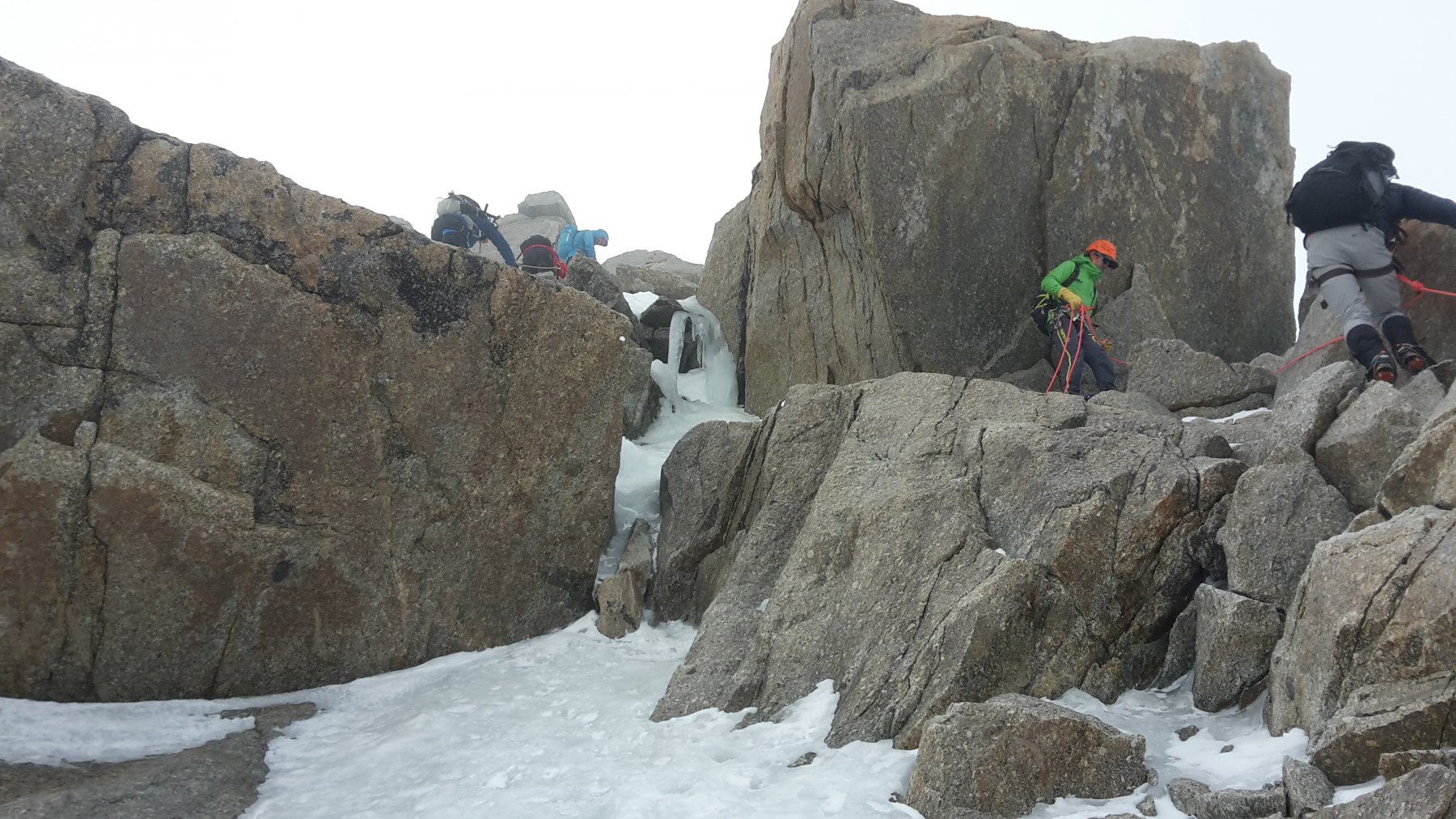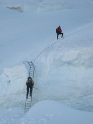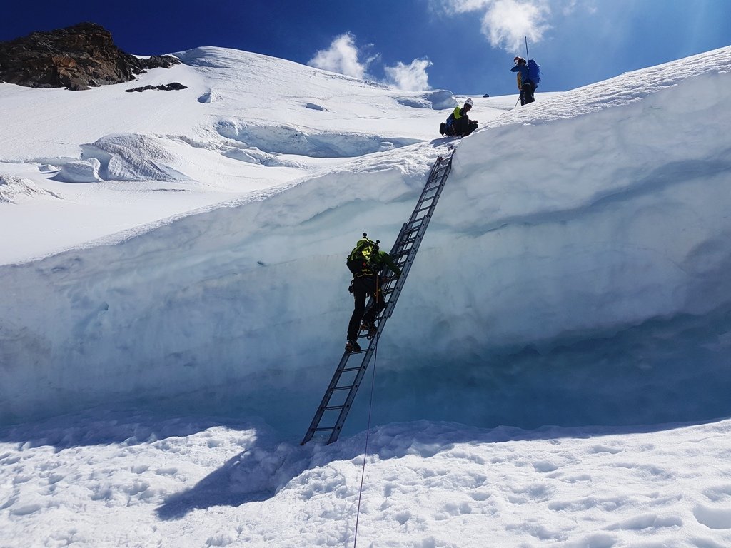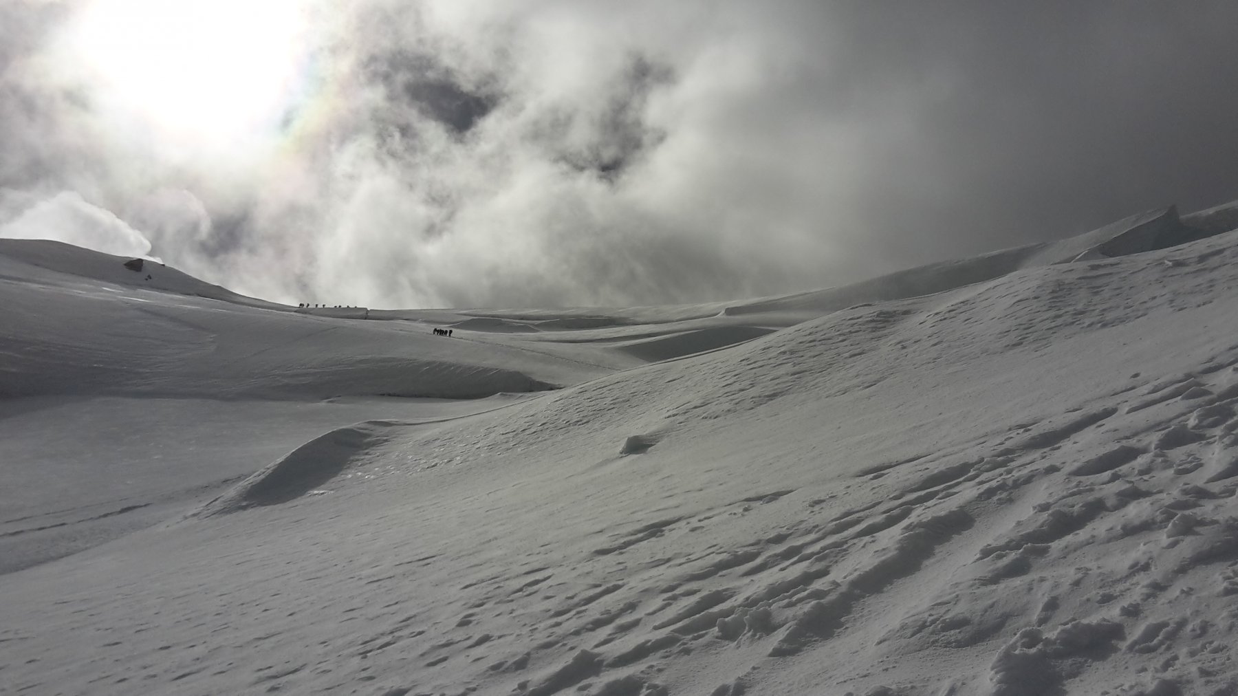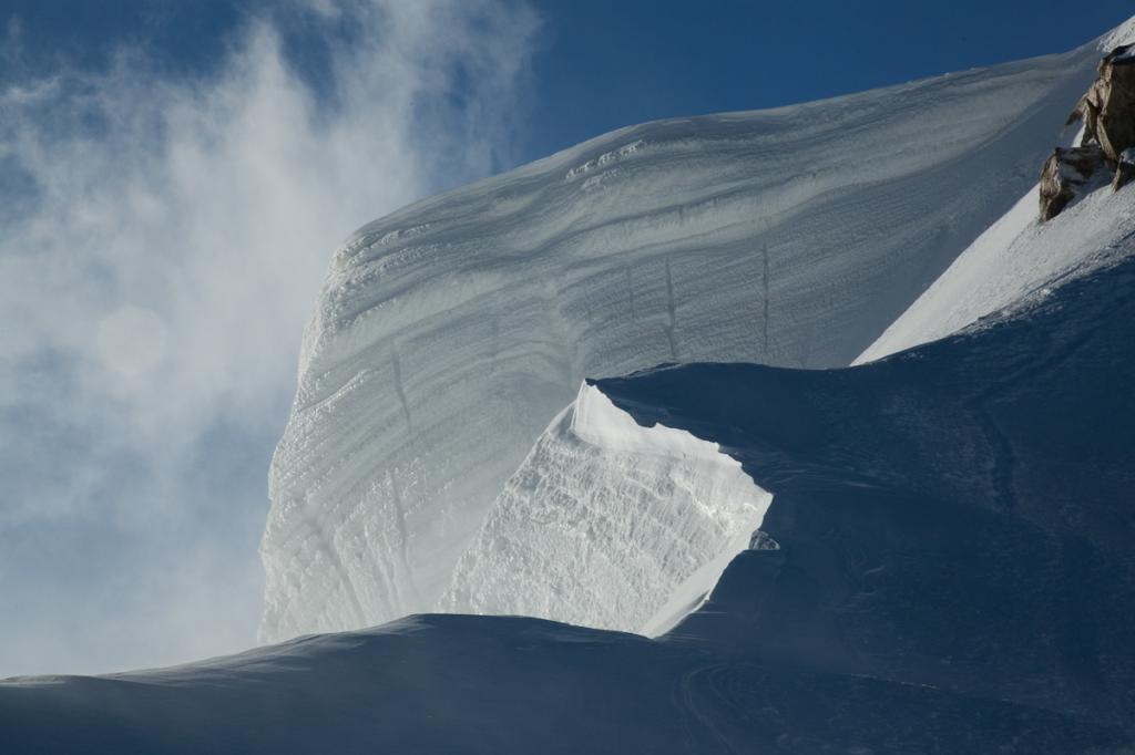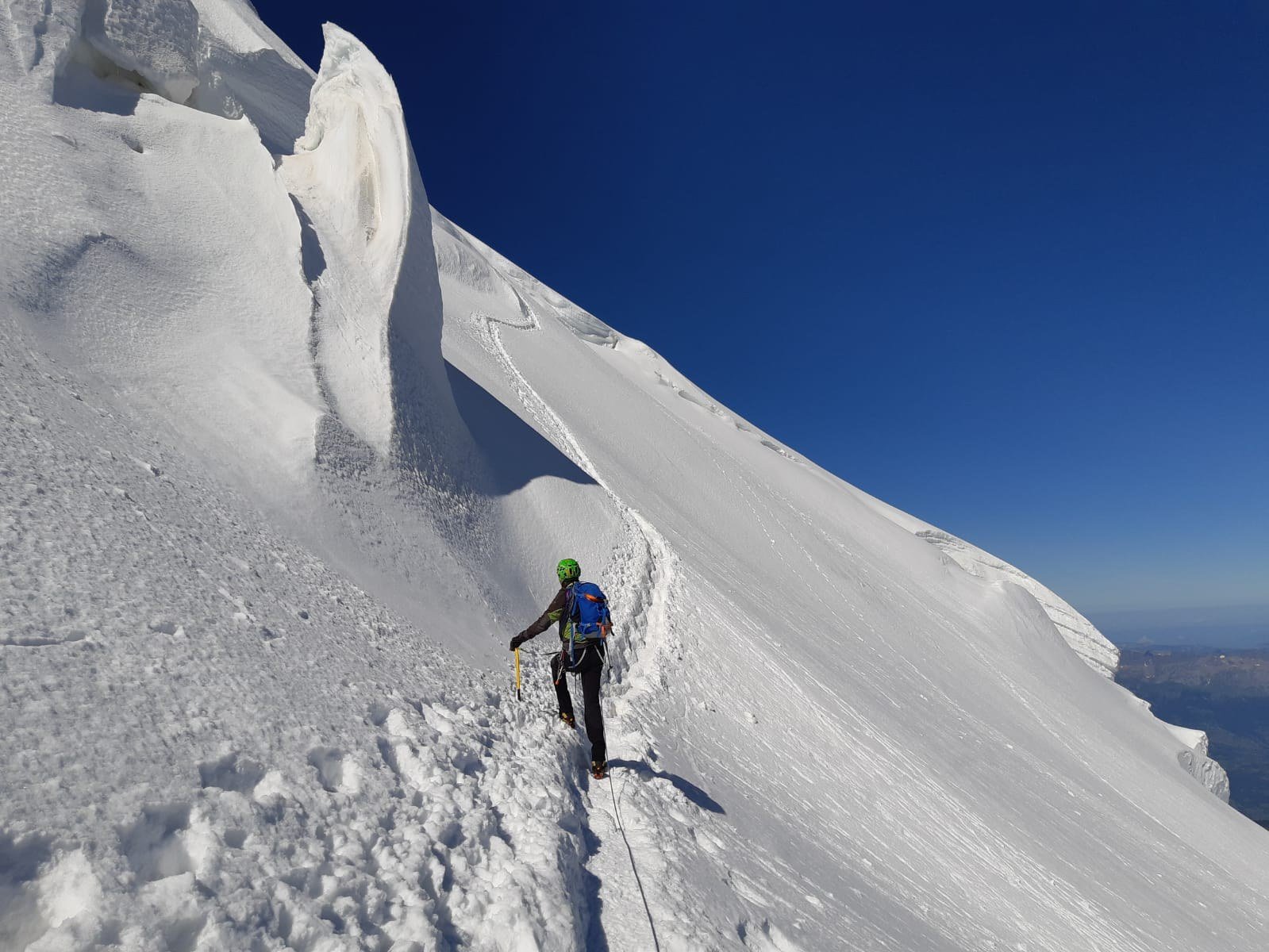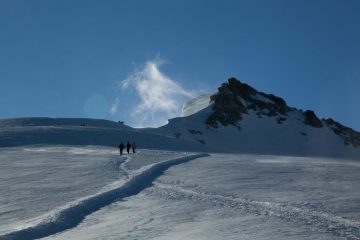 E’ sempre presente una traccia, essendo una via ripetuta spesso ed in tutte le stagioni. Valutate bene lo stato della neve e dei seracchi, il pendio è molto pericoloso anche con accumulo solo discreto.
