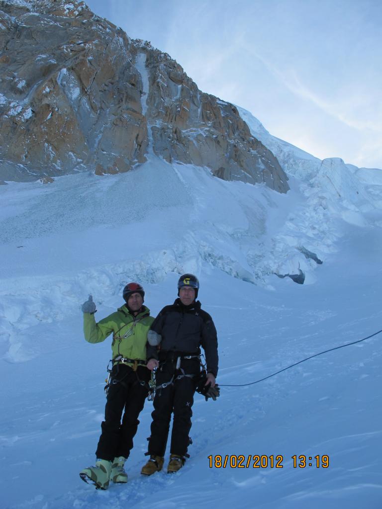 Dov’è tuta la neve……….quiaccio secco ,se non fosse per tutti i passaggi di altre cordate che facilitano la salita, sarebbe molto più dura, consigliabile. Altre cordate sul Tacul, secondo me è tutto fattibile poca neve, ventata ,crosta portante, crepacci chiusi. Sceso con gli sci per la Valle Blance, tracce di sci dappertutto molto frequentata , secondo me fattibile ancora per un mese, troppa poca neve. Con Dino