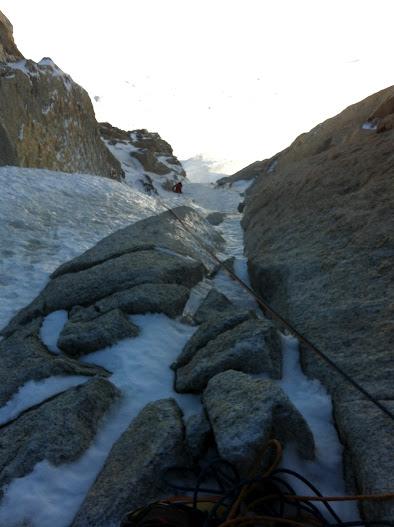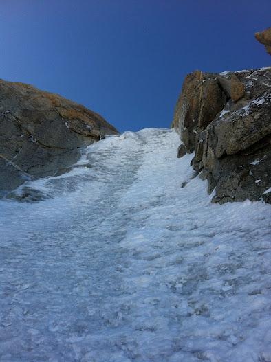anche se non è il periodo migliore per farla,approfittiamo dello zero termico basso per andare alla chere.condizioni più che discrete,ghiaccio non a prova di bomba ma la possibilità di integrare sulla roccia permette di salire in tranquillità.il muretto centrale è molto scalinato dai numerosi passsaggi.la terminale si supera senza problemi.calati in doppia lungo la goulotte.