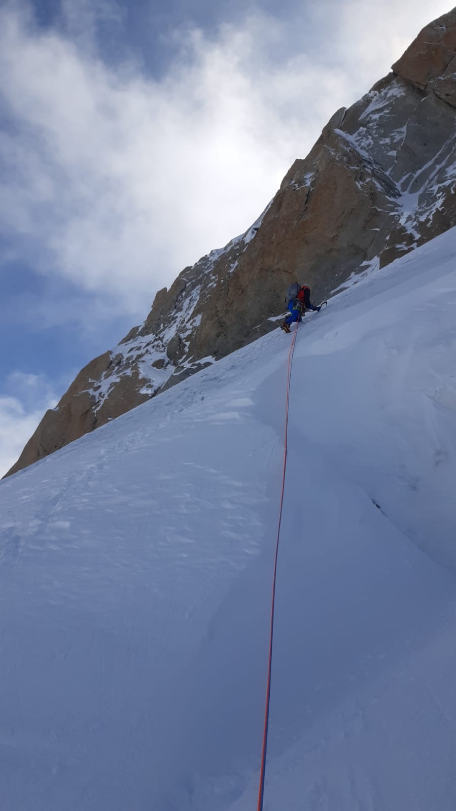 Scesi alla fine del 3 tiro, dove finiscono le difficoltà. (ci sono uno o due tiri di misto facile per arrivare alla cima del triangle du tacul).