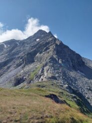 Dal passo salire verso Est sul dosso erboso (non conviene aggirarlo), dove poi perdendo pochissimo dislivello si arriva all’attacco della cresta vera e propria.