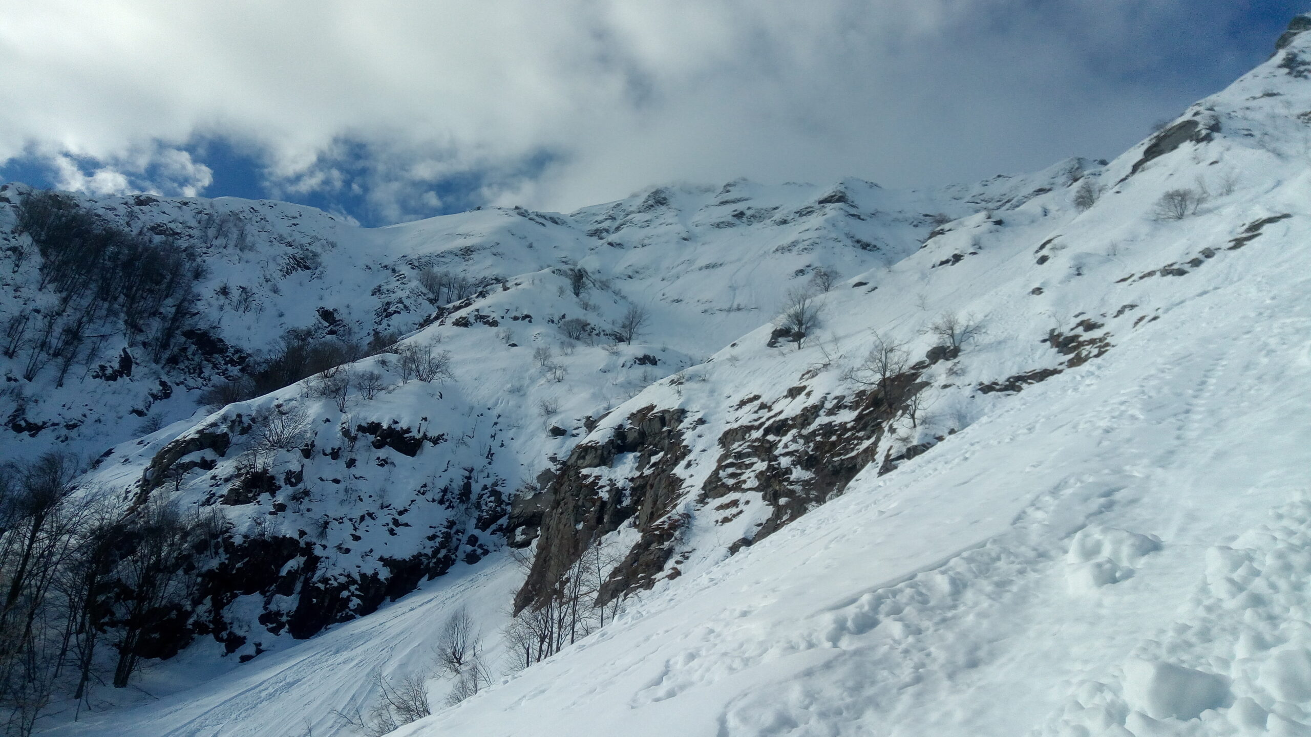 Da Campocatino (1000 m), si segue il sent. 147 fino a che non si oltrepassa il netto solco del Canale S. Viano. Si prosegue ancora per un breve tratto per poi salire direttamente sulla destra per boschi; non conviene portarsi subito nel canale di salita, che in basso presenta un salto di rocce ripide, ma piuttosto tenersi lungo lo sperone centrale (passaggi a 45°), preferibilmente un poco sulla sinistra, per poi traversare orizzontalmente a destra verso i 1350 m su ampi pendii che conducono alla parte bassa del suddetto canale, qui molto largo (1h 20 da Campocatino, in buone condizioni).