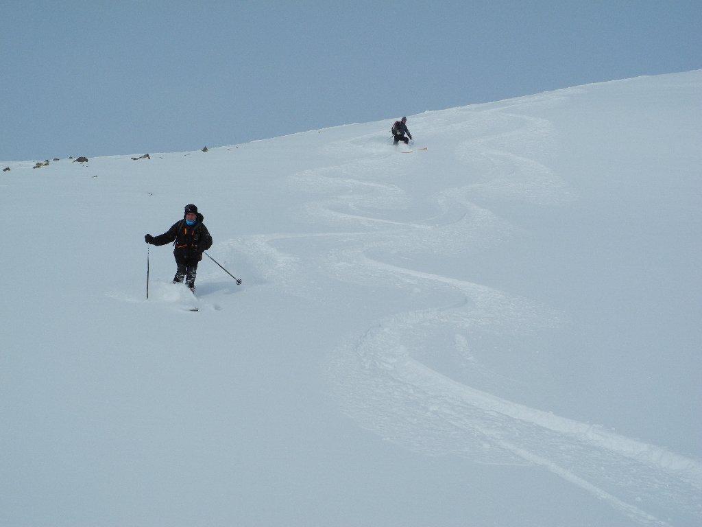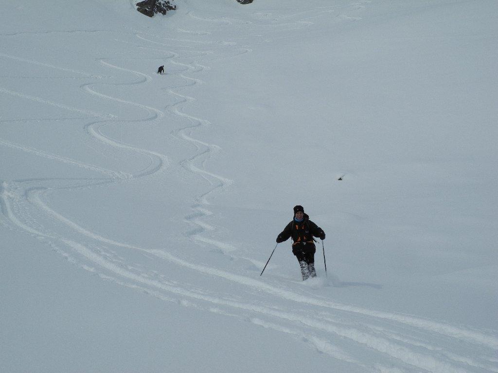bellissima gita al Col Tantané. da 20 a 40 cm di polvere su fondo duro, logicamente tutta da battere.