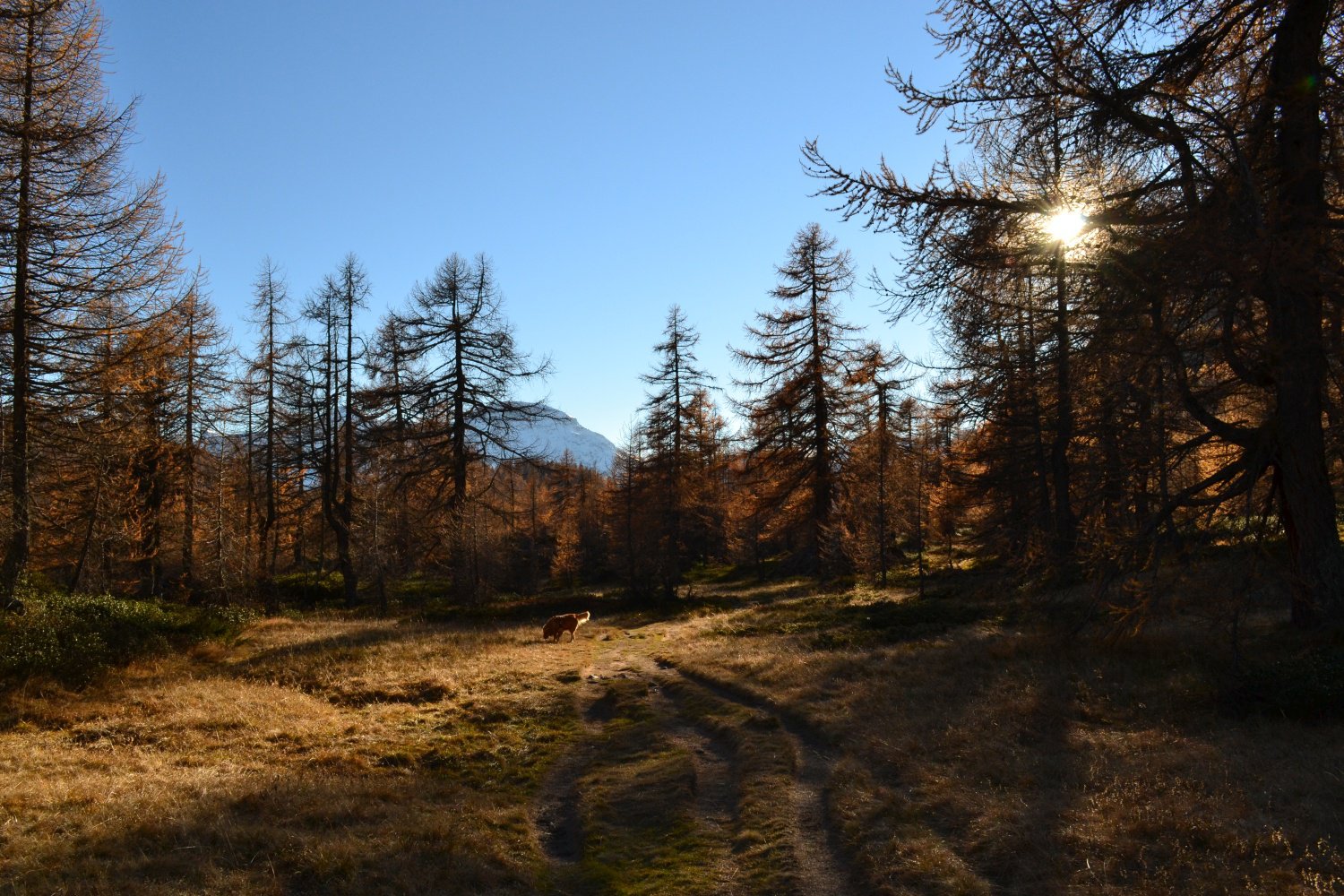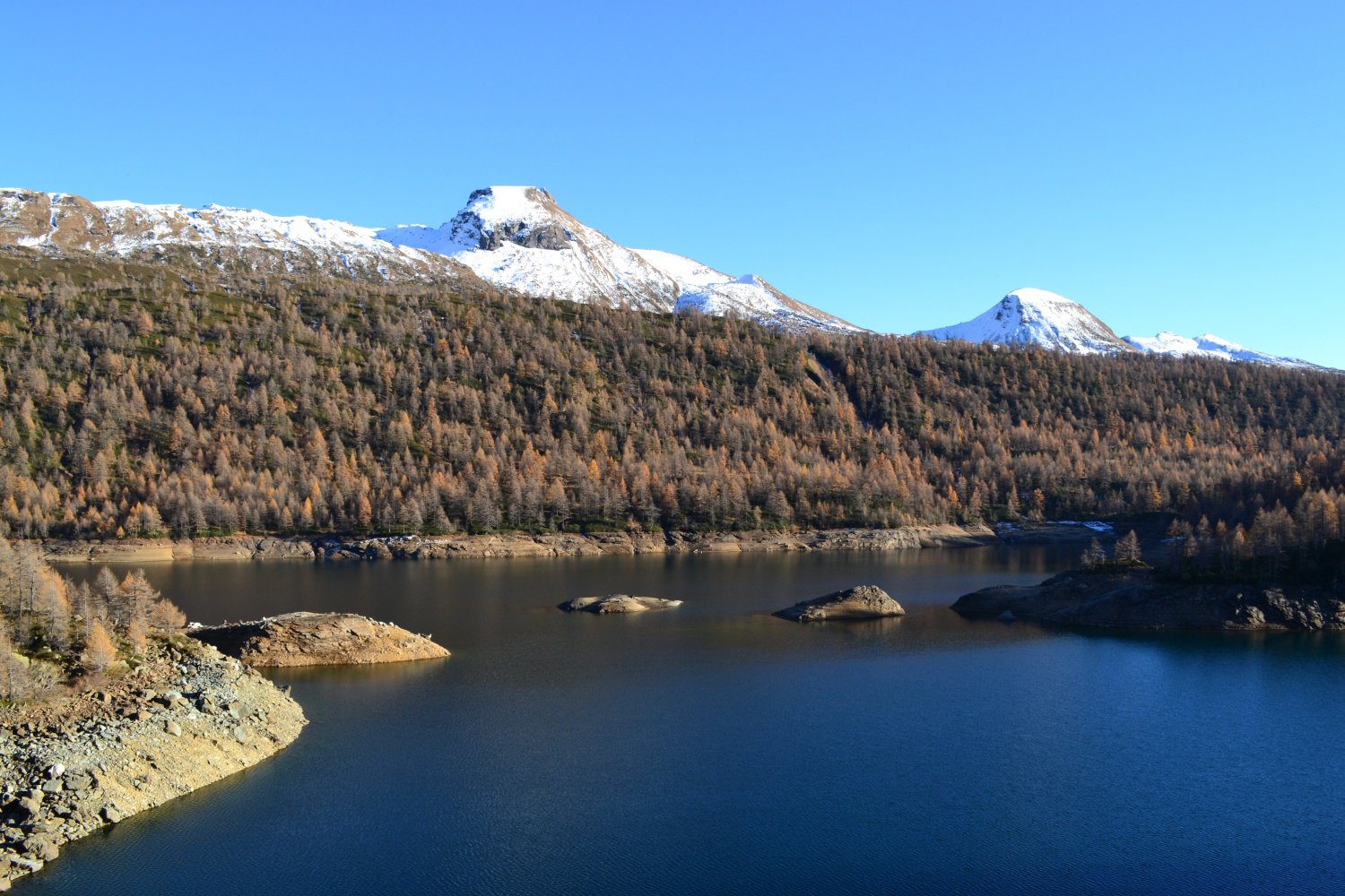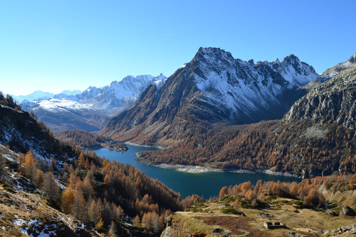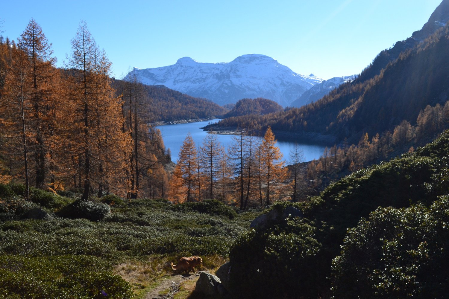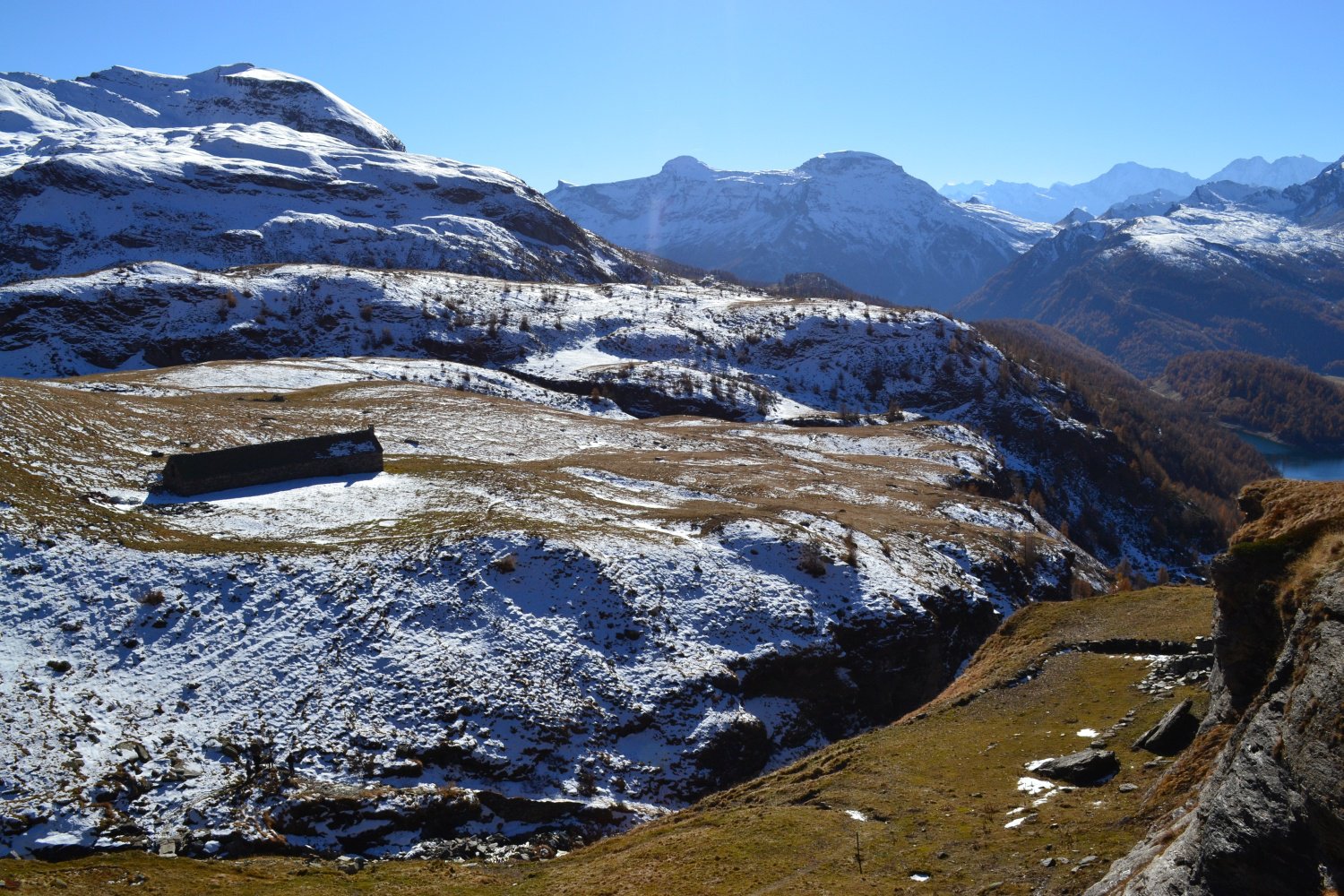Si torna al passo e, seguendo i paletti infissi nel terreno, si percorre un breve tratto, dopodiché si attraversa una vallettina e si inizia la discesa verso il Lago di Devero. Nell’ordine si superano la baita dell’Alpe Naga (2210 m) e successivamente l’Alpe della Valle (2083 m). Giunti al ponticello, anziché attraversarlo, si volge a destra e s’infila il bel sentiero che sale all’Alpe la Satta, porta d’accesso all’altopiano del Forno, costellato da numerosi laghetti e torbiere. Mantenendo la direzione nord (con riferimento la Punta d’Arbola), si attraversa il tavolato fino all’Alpe Forno inferiore (2200 m). A questo punto, sfruttando la sterrata di servizio dell’alpe, si scende al Lago di Pianboglio (1983 m), superato lo sbarramento del lago si prosegue la discesa fino al Lago di Devero, da cui percorrendo la sponda ovest oppure est si arriva a Crampiolo. A sinistra del ponticello di Crampiolo (rif. Agriturismo), parte una mulattiera che si snoda nel bosco di larici e scende a Devero passando per Corte d’Ardui. In prossimità della piana di Devero, anziché valicare il ponte, si scende a sinistra affrontando una bella mulattiera che scende verso delle baite, poi con attenzione svoltare a destra (traccia meno marcata), si oltrepassa un ponticello in legno e ci si sposta sul versante orografico sinistro del torrente, attraverso un bel sentiero da poco ripristinato, e si giunge alle baite di Cologno (1589 m), posizionate sul poggio sopra la galleria. Lasciando le baite a destra (attenzione a non seguire l’invitante traccia marcata che scende all’imbocco della galleria), si prosegue in piano (rif. palo di legno) e si scende con un breve tratto di sentiero, piuttosto esposto, al punto di partenza.
