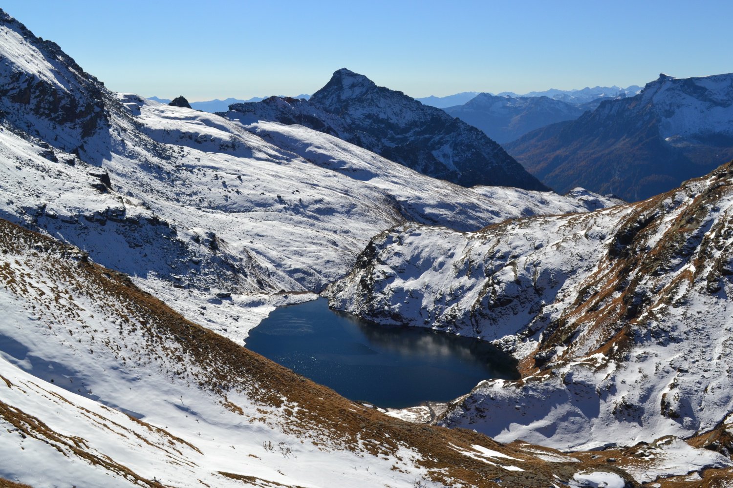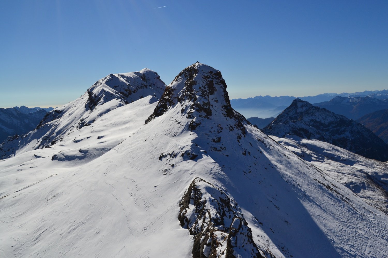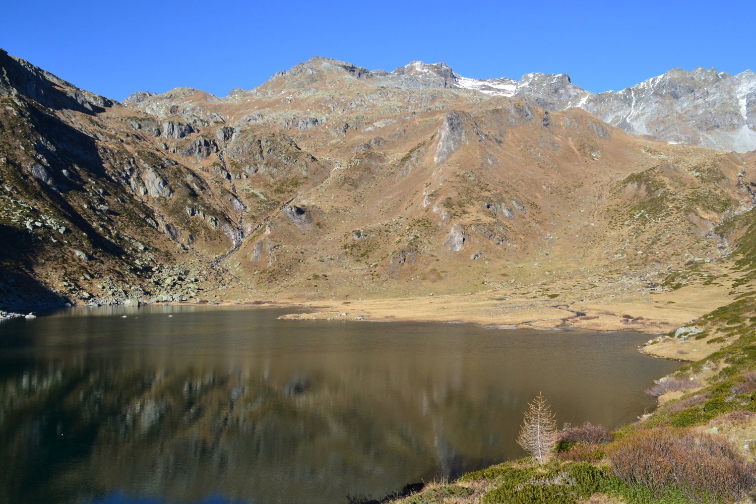Tornati alla bocchetta, si perde quota lungo il versante opposto, scendendo su buon sentiero fino all’Alpe Pojala (2148 m), ora in direzione nord-est si attraversa il prato acquitrinoso su labile traccia, puntando all’evidente spalla che sale al Lago di Pojala, dove il sentiero ritorna evidente. Lasciato il lago, si sale al Passo di Pojala (2411 m), piegando poi a destra in direzione delle due evidenti cime (quasi identiche) della Punta di Tanzonia, raggiungendo indifferentemente quella Nord o quella Sud (2684 m).