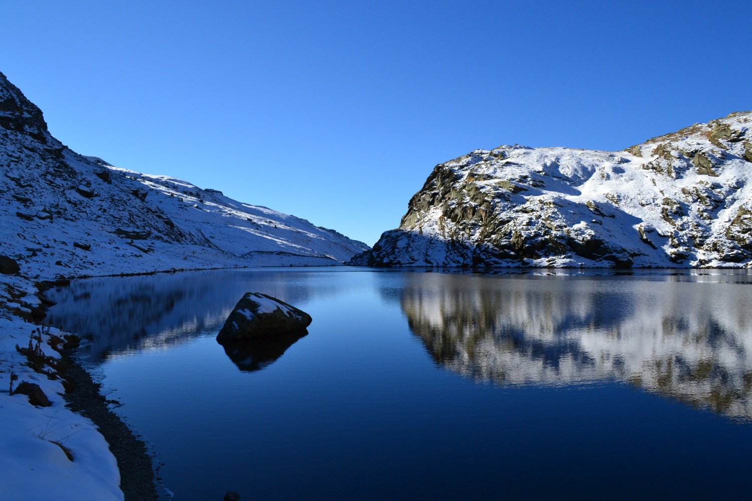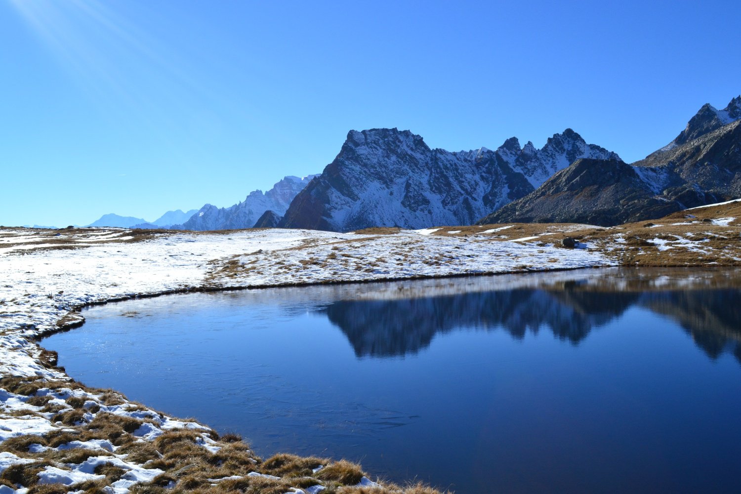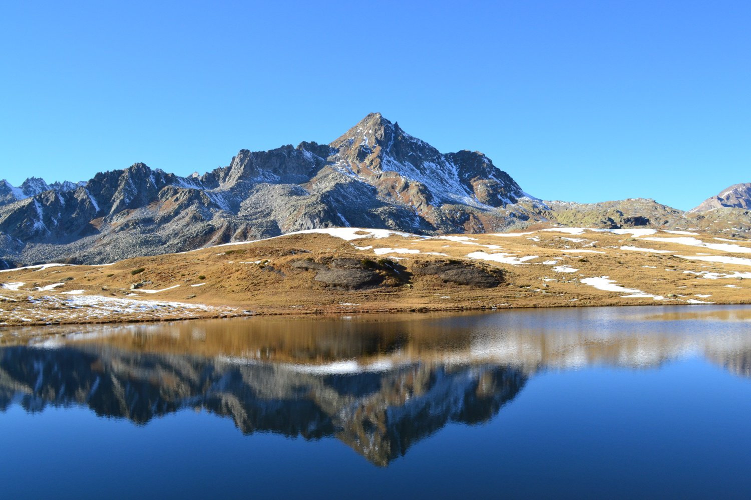 Tornati alla bocchetta, si perde quota lungo il versante opposto, scendendo su buon sentiero fino all’Alpe Pojala (2148 m), ora in direzione nord-est si attraversa il prato acquitrinoso su labile traccia, puntando all’evidente spalla che sale al Lago di Pojala, dove il sentiero ritorna evidente. Lasciato il lago, si sale al Passo di Pojala (2411 m), piegando poi a destra in direzione delle due evidenti cime (quasi identiche) della Punta di Tanzonia, raggiungendo indifferentemente quella Nord o quella Sud (2684 m).