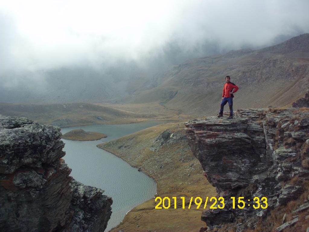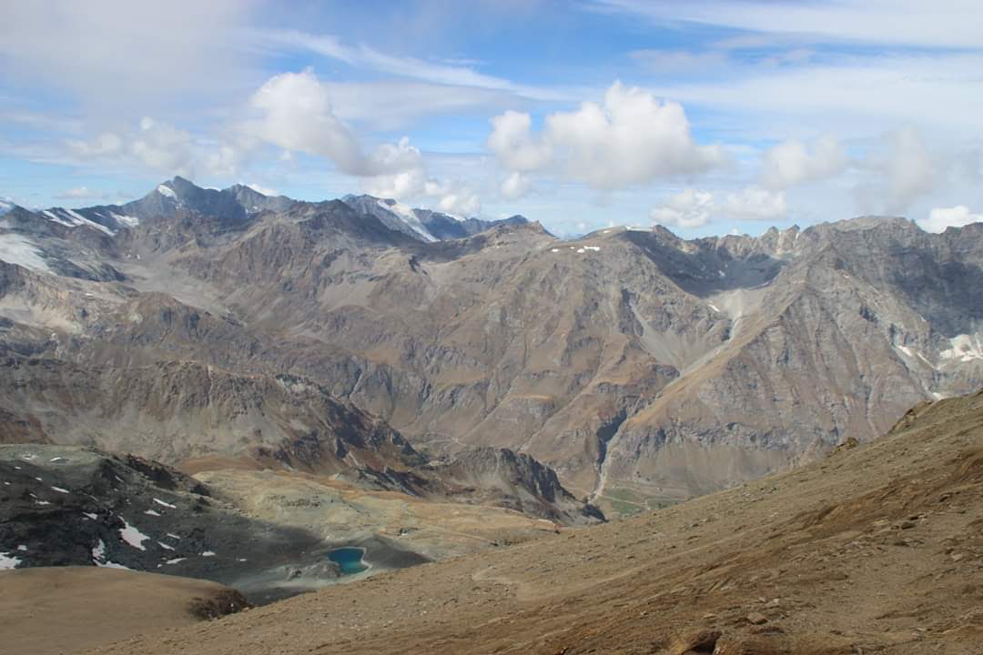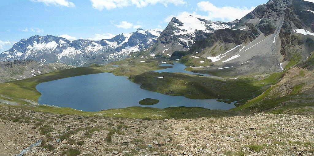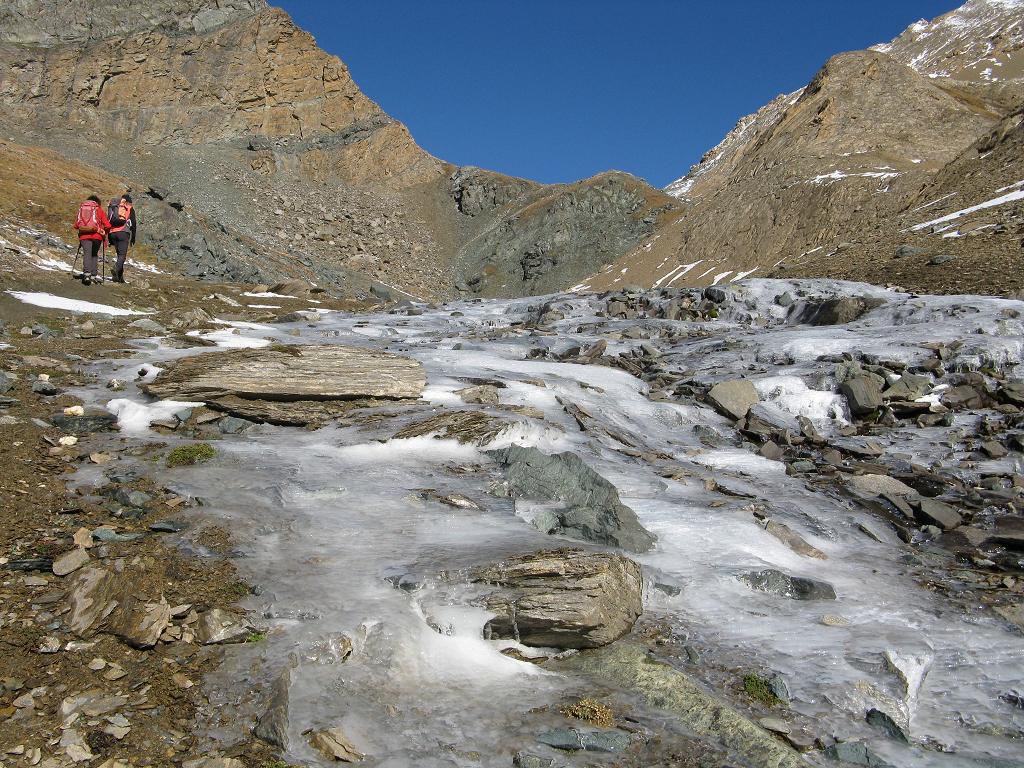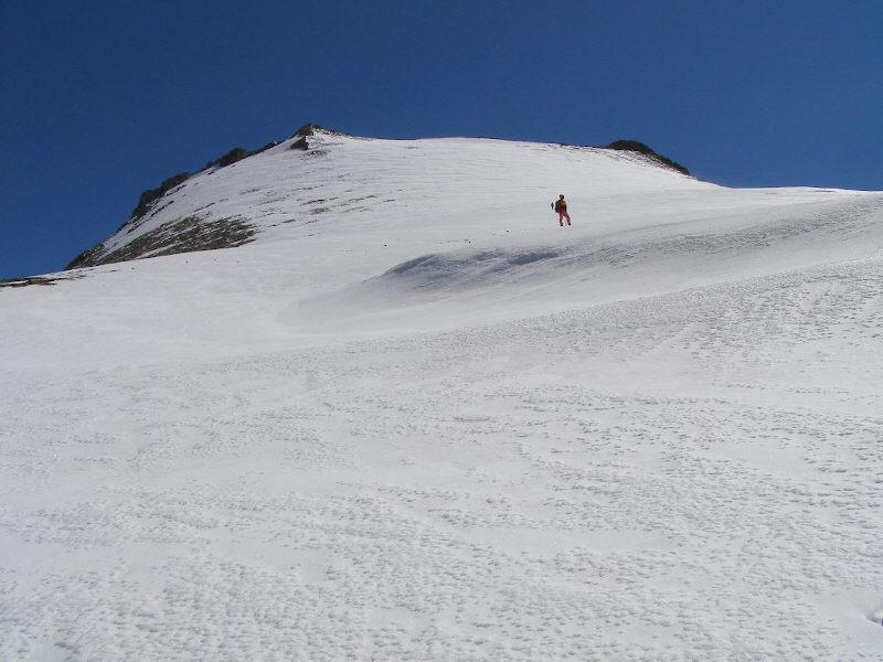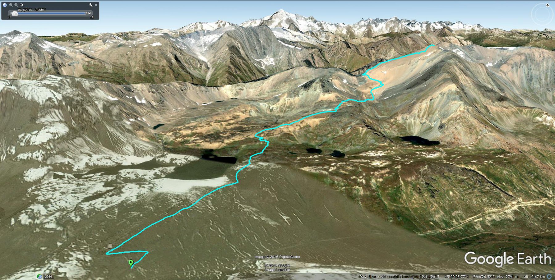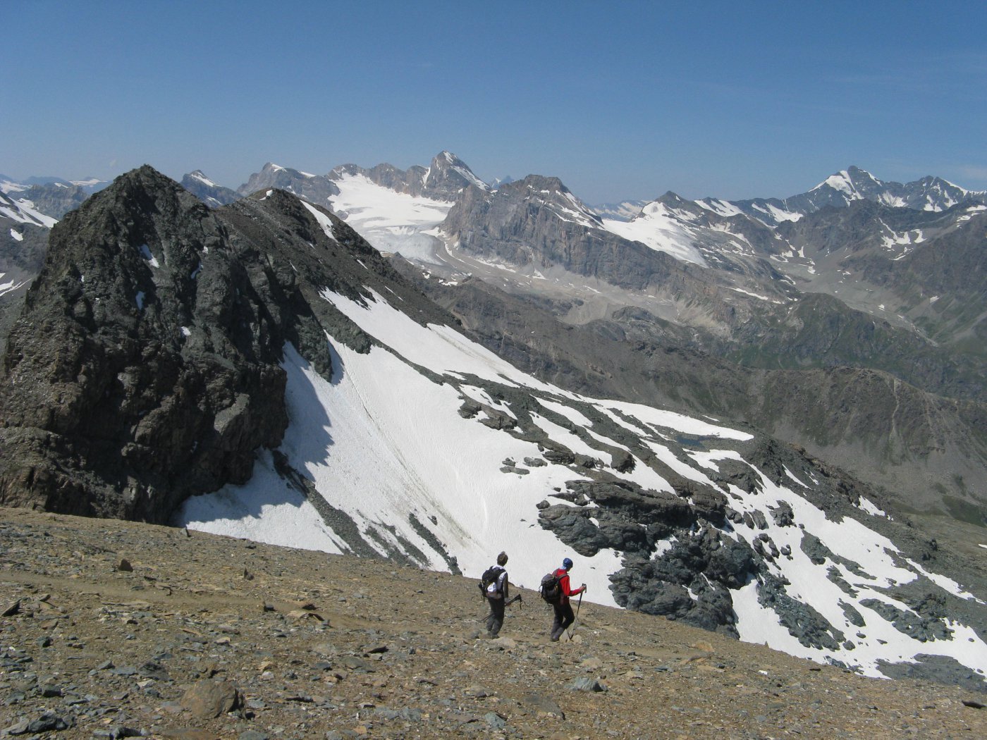 Dal colle ci si tiene sul versante ovest (valle di Rhemes) fino a un colletto panoramico. Evitare le varie tracce che piegano a destra prima, perchè tutte più difficoltose di quella segnata.