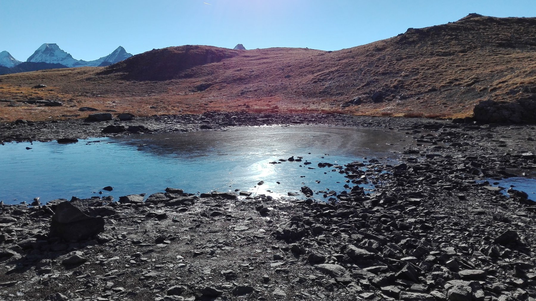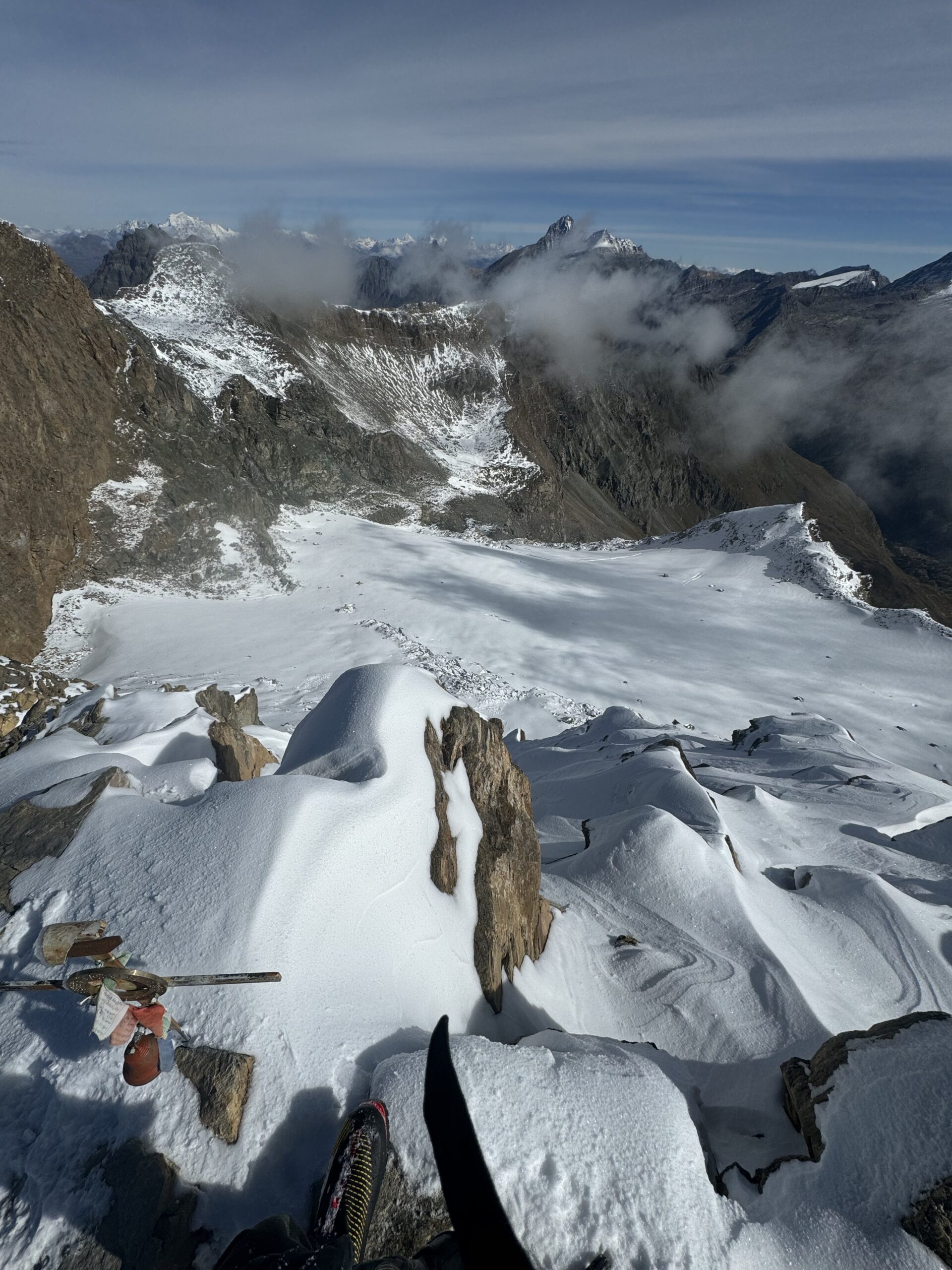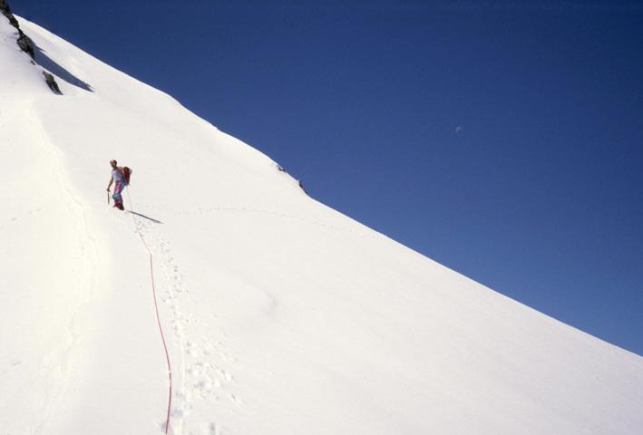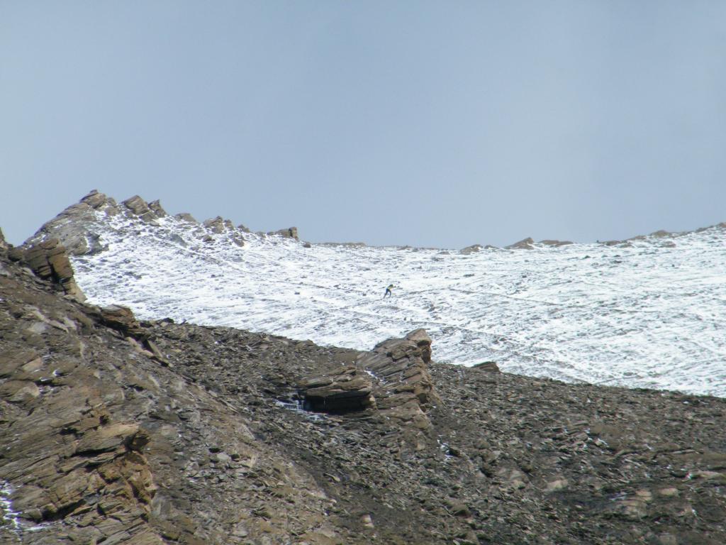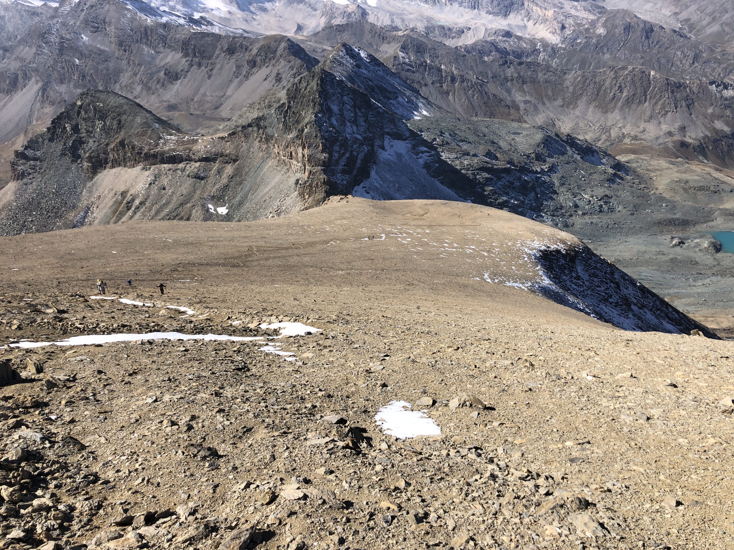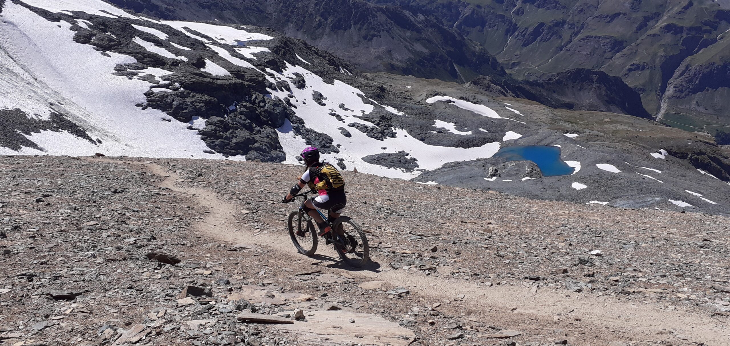 Dal colle ci si tiene sul versante ovest (valle di Rhemes) fino a un colletto panoramico. Evitare le varie tracce che piegano a destra prima, perchè tutte più difficoltose di quella segnata.