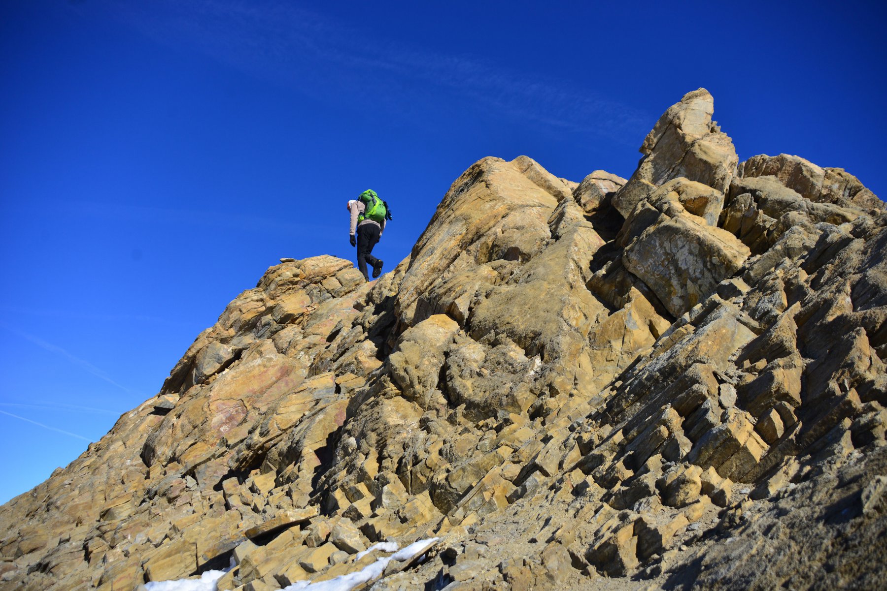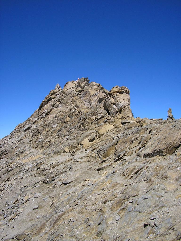 La piccolissima cima si raggiunge con breve e facile arrampicata di alcuni metri.