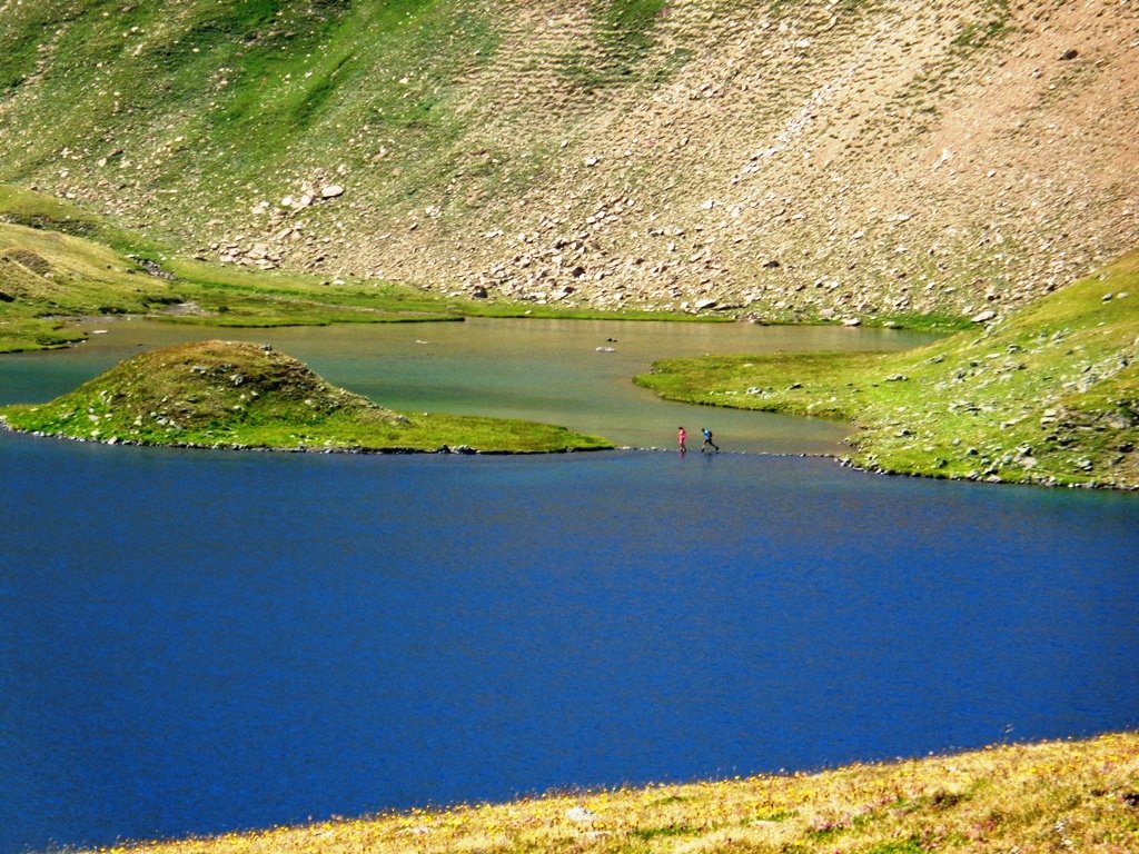Percorrere il sentiero fino a vedere l’Alpe Riva. Lasciare il sentiero principale che si dirige verso il col Basei e dirigersi a nord verso l’alpeggio. Superarlo e proseguire su largo sentiero che sale costeggiando in alto lo splendido Lago Rosset.