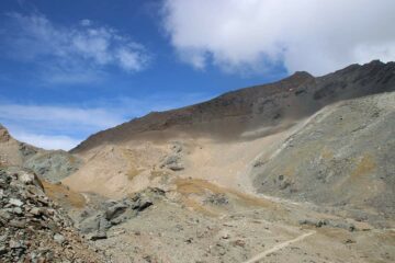 In una giornata dal meteo incerto decido di salire al col Leynir. In realtà il cielo si apre concedendo panorami splendidi e sole e così, raggiunto il colle, proseguo con gran soddisfazione fino alla cima. Due annotazioni: dal col Leynir il sentiero che scende verso la val di Rhemes è interrotto, come segnalato da un cartello sia alla partenza che al colle (si sentono molte cadute di pietre dalla punta Leynir su quel versante). Dal colle alla cima nelle attuali condizioni, senza neve né ghiaccio, la salita è praticamente E, non EE: c’è una placca di 3-4 metri su cui appoggiare le mani, ma sopra riprende il sentiero, ben tracciato e con gli ometti.