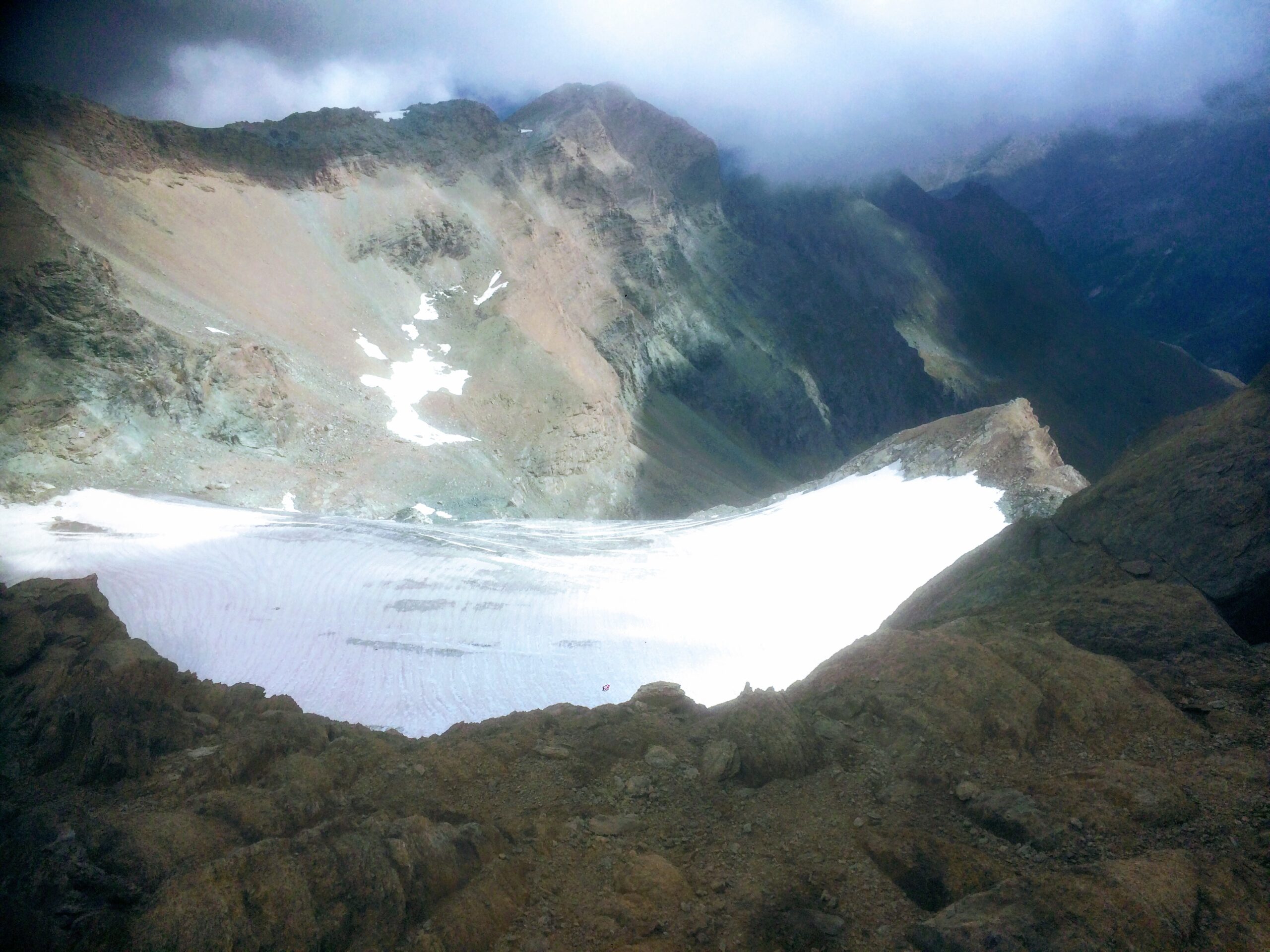 Che dire? Ci vuole una bella sfortuna a farsi due ore e mezza di auto, dando retta a previsioni di bel tempo, per poi avere quasi tutto il giorno i panorami superbi coperti dalle nuvole. Nonostante ciò, una bellissima gita in ambiente straordinario. Non abbiamo trovato particolarmente impegnativo il “famoso” passaggio su roccia dopo il colle del Leynir: a salire siamo passati a sinistra, a scendere a destra, tutto abbastanza sicuro per chi ha un minimo di esperienza di alta montagna. Valutazione EE giusta. A causa del meteo, 4 stelle. Una decina di escursionisti sul percorso fino al colle, tre in vetta oltre a noi. Con Lorenzo