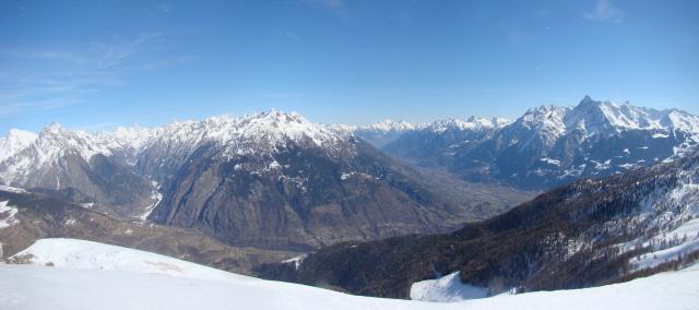 Partiti per fare il mont Labiez (sarà per una prossima volta!) dopo aver ravanato per un po’, perso tempo e sfidato il forte vento, abbiamo puntato a raggiungere la meta che ci sembrava oramai la più fattibile, appunto la Costa Tardiva. Come si suol dire …. non tutti i mali… ecc. abbiamo ancora fato in tempo a recuperare un bella escursione anche se il forte e gelido vento a ridotto notevolmente la nostra permanenza sulla dorsale. Sufficiente comunque per apprezzare l’ampio panorama e le imponenti montagne che ci circondavano che con l’ottima visibilità di oggi parevano toccabili.